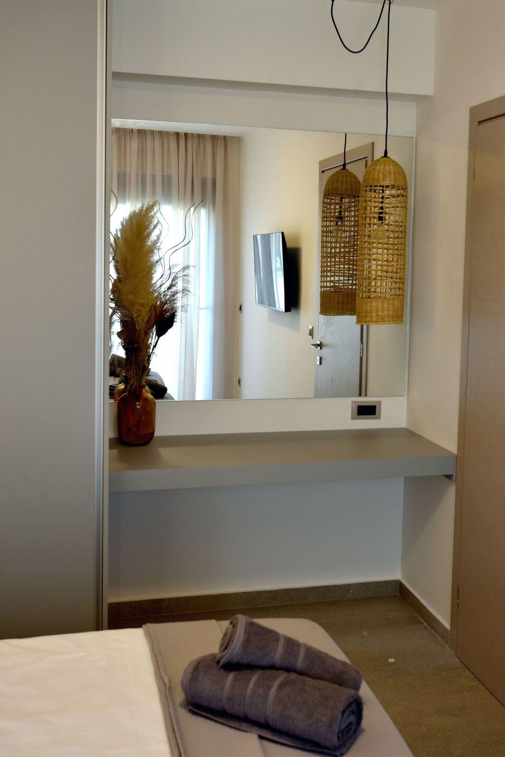 Outside, each maisonette has its own private pool with sun loungers, inviting you to relax under the Greek sun in complete tranquility. Located in a quiet area, the villa combines privacy with convenience.