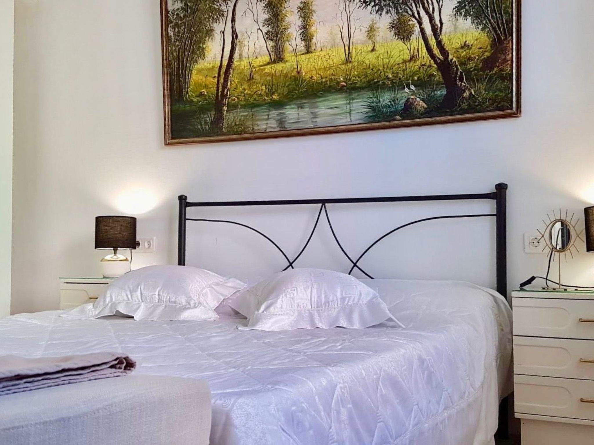 Inside, the house is thoughtfully equipped with all the essentials to ensure a comfortable stay. The open plan living room-kitchen area is spacious, benefiting from high ceilings that amplify the sense of space and freedom. The large bedroom is versatile, accommodating a single bed upon request, ensuring a restful night's sleep for all guests. The inclusion of air conditioning throughout the house provides a cool respite from the Mediterranean warmth, while practical amenities such as a washing machine, coffee machine, and electric kettle add to the convenience of your stay.