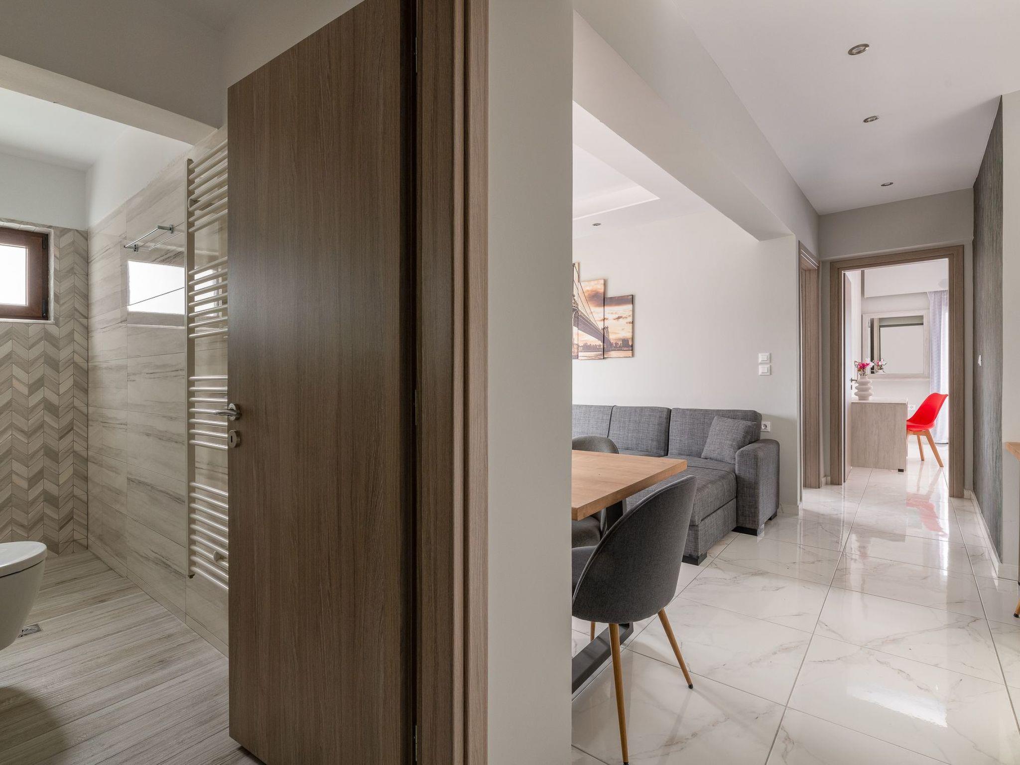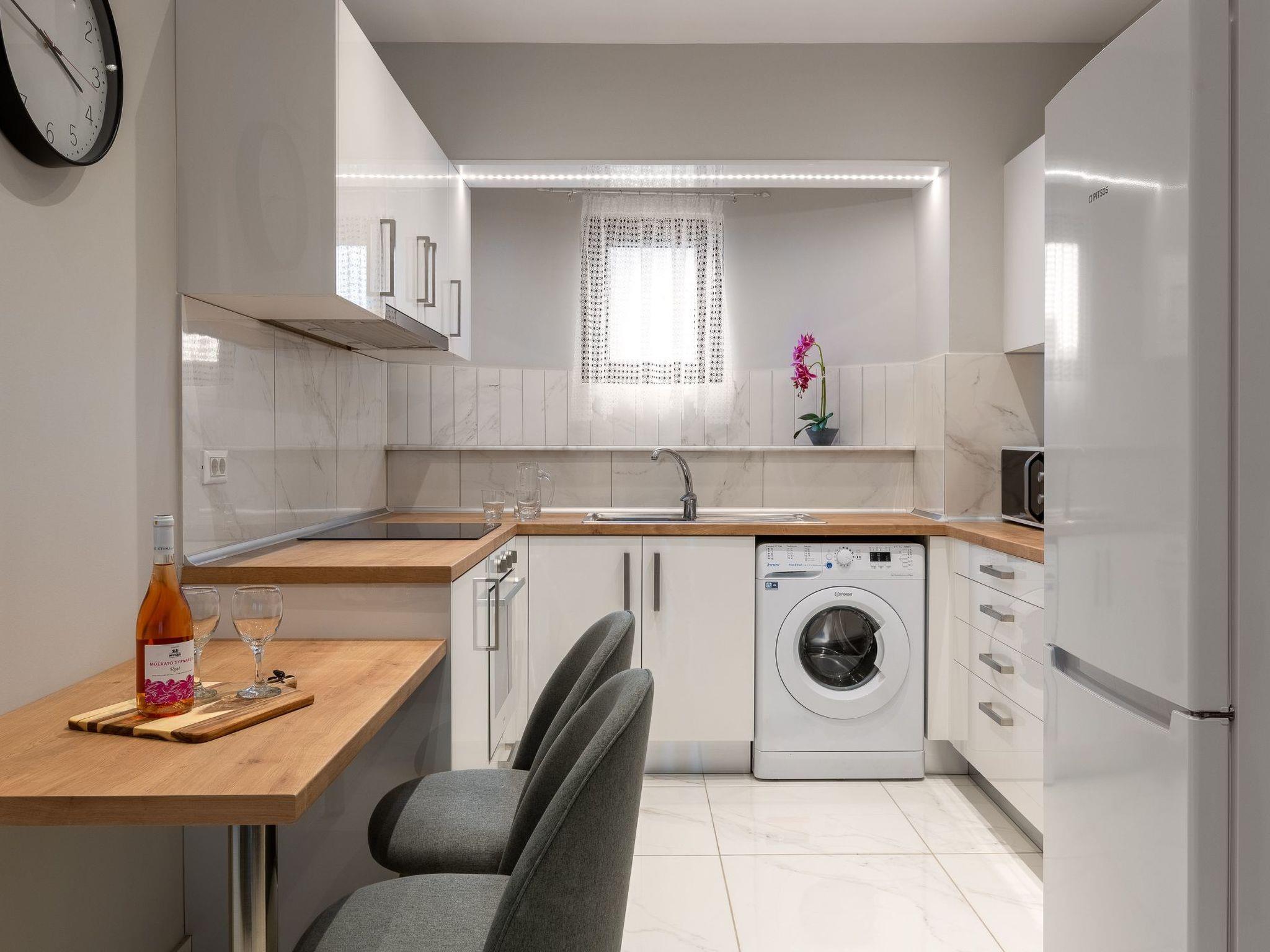 Inside the "Ariadne" MountainView apartment, comfort and functionality combine to create a welcoming living environment. The house boasts two well-appointed bedrooms and a sofa bed, easily accommodating up to 6 guests. Two bathrooms featuring showers ensure convenience for all staying guests. The presence of air conditioning throughout the apartment promises a comfortable escape from the heat of the Greek summer. Practical amenities, including a washing machine for exclusive use, a filter coffee machine, and an electric kettle, will make your stay both comfortable and convenient.
