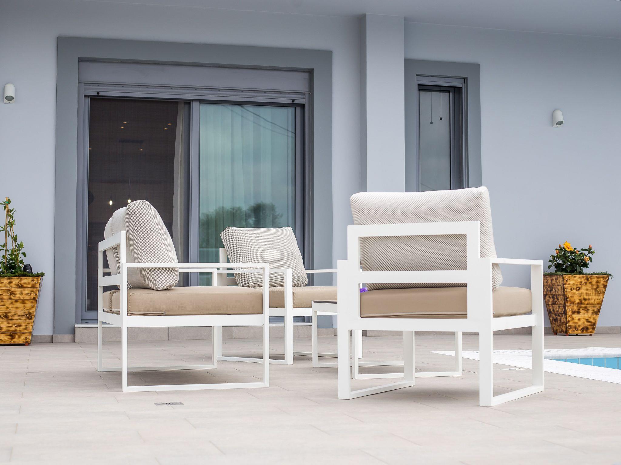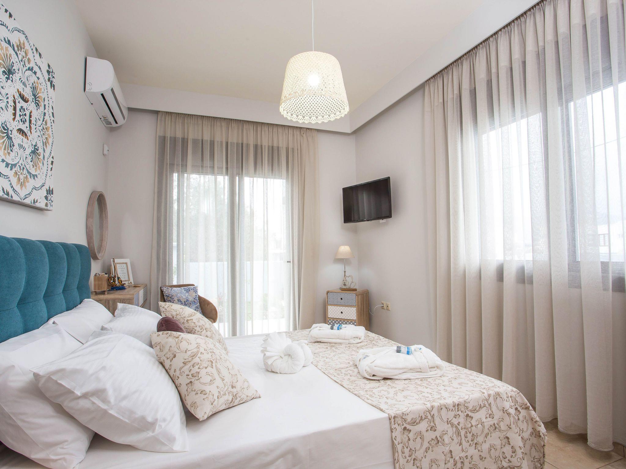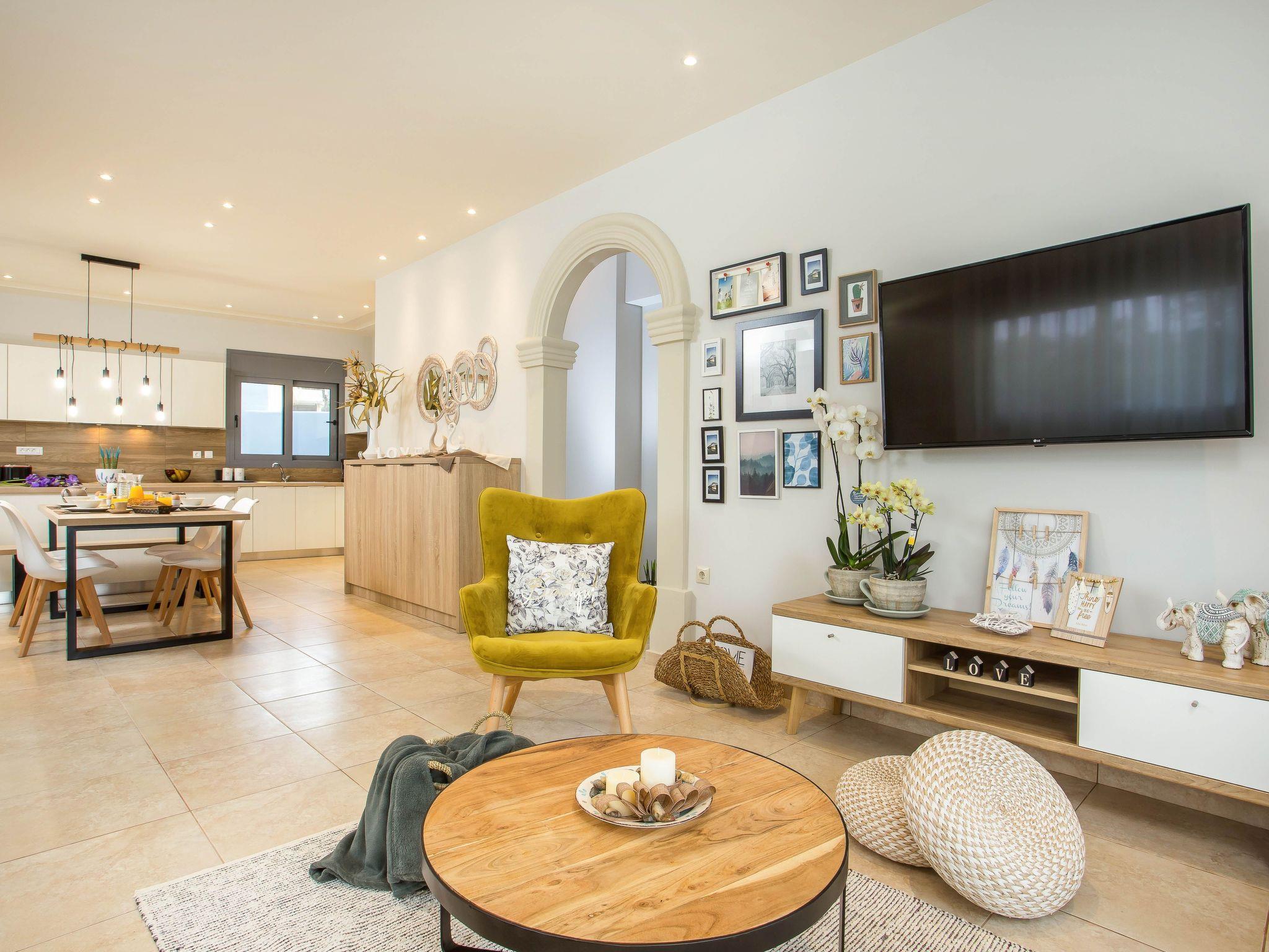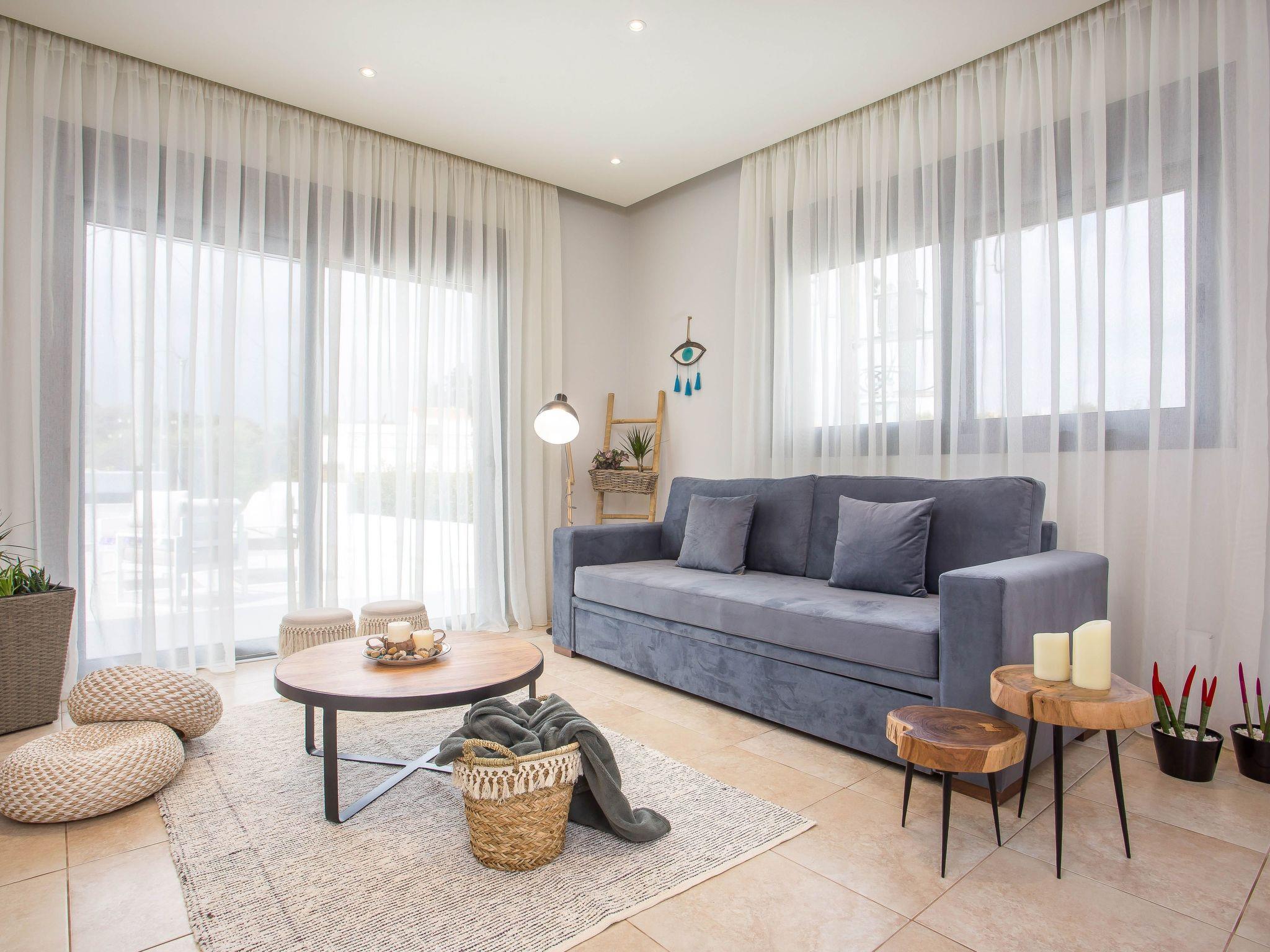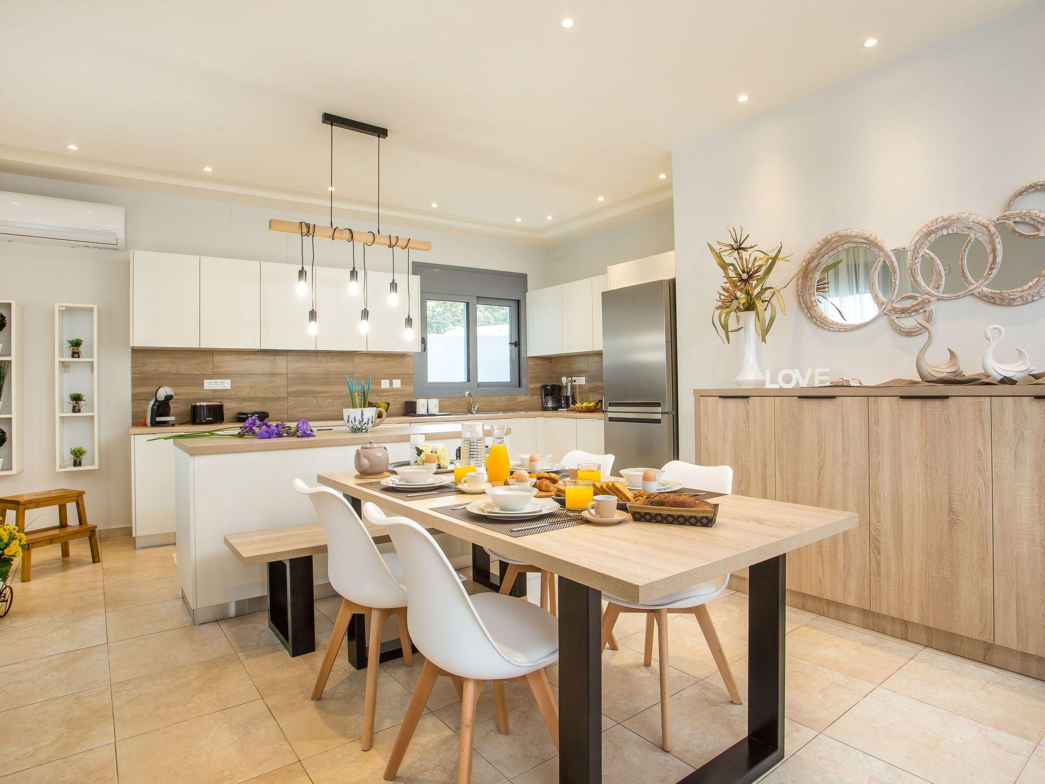 Welcome to our luxury villa in the picturesque town of Kalithies on the stunning island of Rhodes, Greece. This exquisite villa is designed to provide a truly luxurious and comfortable stay for up to 5 guests.As you enter the villa, you will immediately be captivated by the elegant and contemporary decor. The villa features two beautifully designed bedrooms, providing the utmost privacy and comfort.The spacious living room is tastefully furnished with comfortable sofas, a flat-screen TV, . Large glass doors lead out to the outdoor terrace and pool area, creating a seamless connection between indoor and outdoor living.The modern kitchen is fully equipped with high-end appliances, allowing guests to prepare their own meals and dine in the comfort of the villa. Alternatively, our team can arrange for a private chef to prepare delicious meals for you and your guests.Step outside onto the expansive terrace and take in the stunning views of the surrounding private outdoor area. The private pool is the centerpiece of the outdoor area, providing the perfect place to cool off on a hot day or soak up the Mediterranean sun on a comfortable lounger.The villa is conveniently located just a short drive from the beaches, restaurants, as well as the historic town of Rhodes and walking distance shops of Kalithies . Our team is always on hand to assist with any requests, ensuring that your stay is as relaxing and enjoyable as possible.Come and experience the ultimate in luxury and relaxation at our beautiful villa in Kalithies, Rhodes.