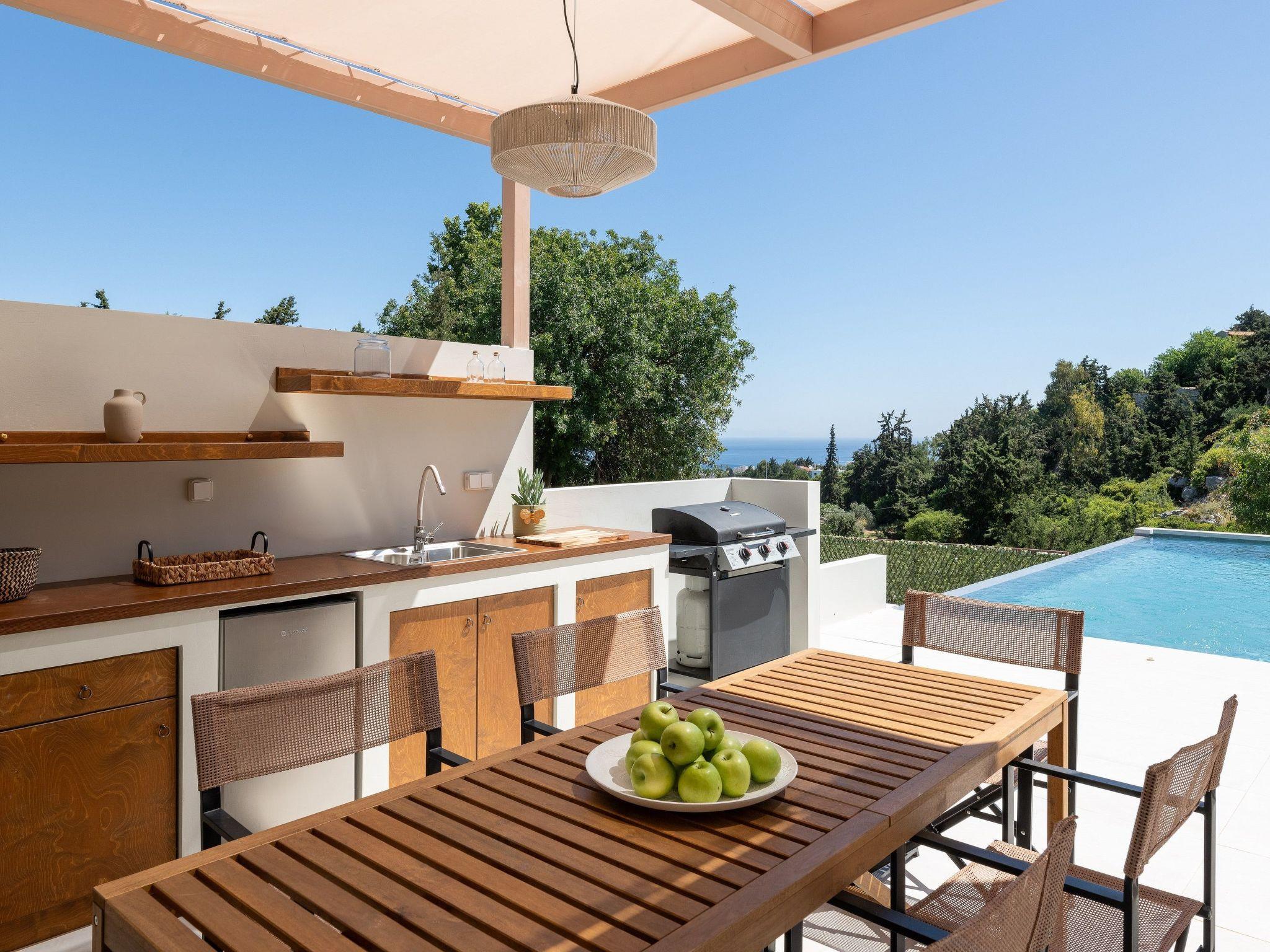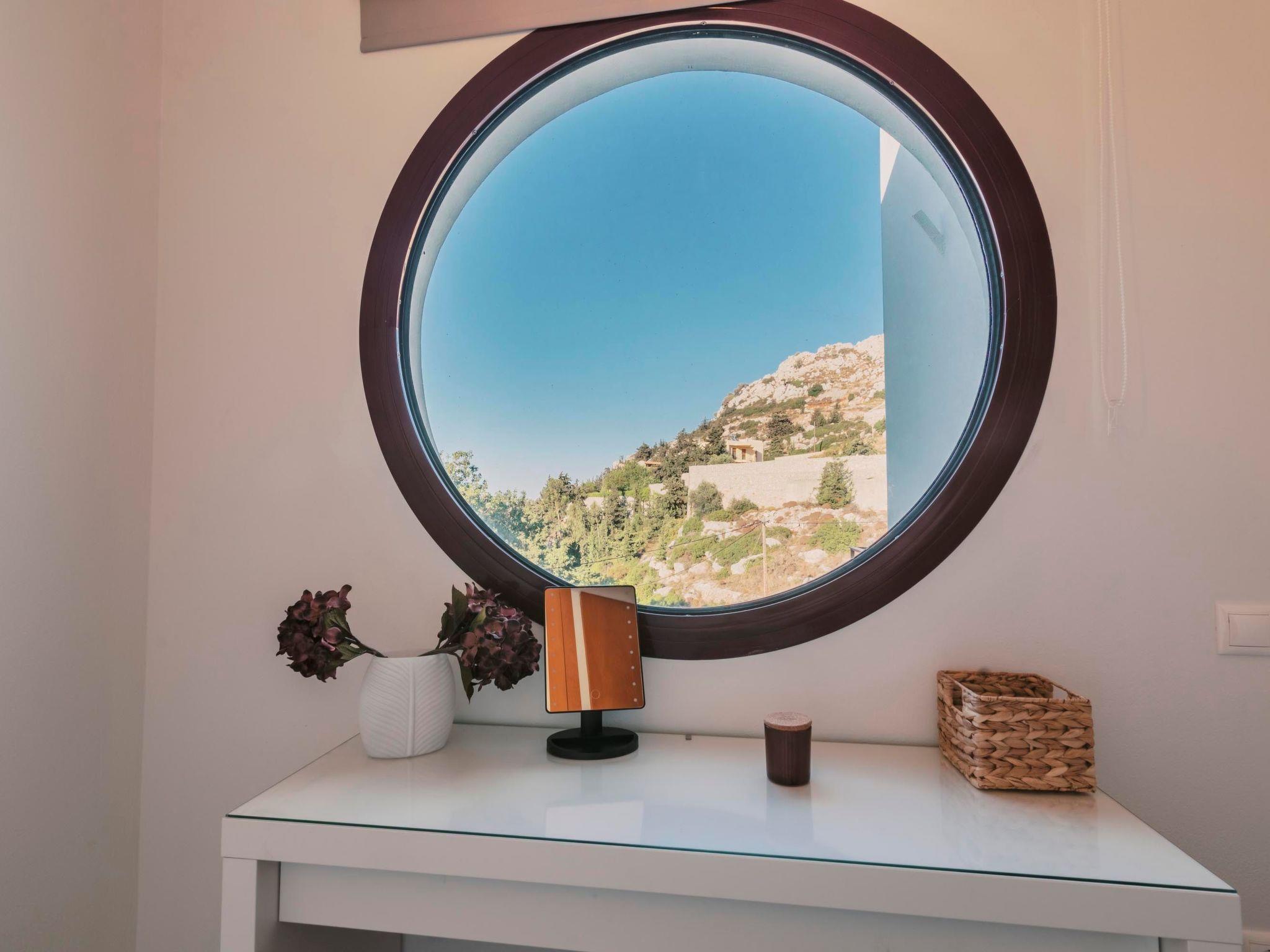 he villa is situated in Koskinou village, which is an ideal location for summer holidays in Rhodes as it is close to most of the islands major attractions and just a short drive from the centre of Rhodes town. Koskinou is a beautiful village built on the top of a hill overlooking the east coast of Rhodes. At the lively main square of the village, you can find many shops, traditional restaurants, pharmacies etc. You shouldn’t miss visiting Kallithea Springs, only 5 minutes far from the villa. Old Town of Rhodes, an important UNESCO monument of cultural heritage is located less than a 20 minute drive. The magnificent ancient acropolis of Lindos overlooking the picturesque village with the narrow streets and traditional white houses is approximately half hour drive too.
