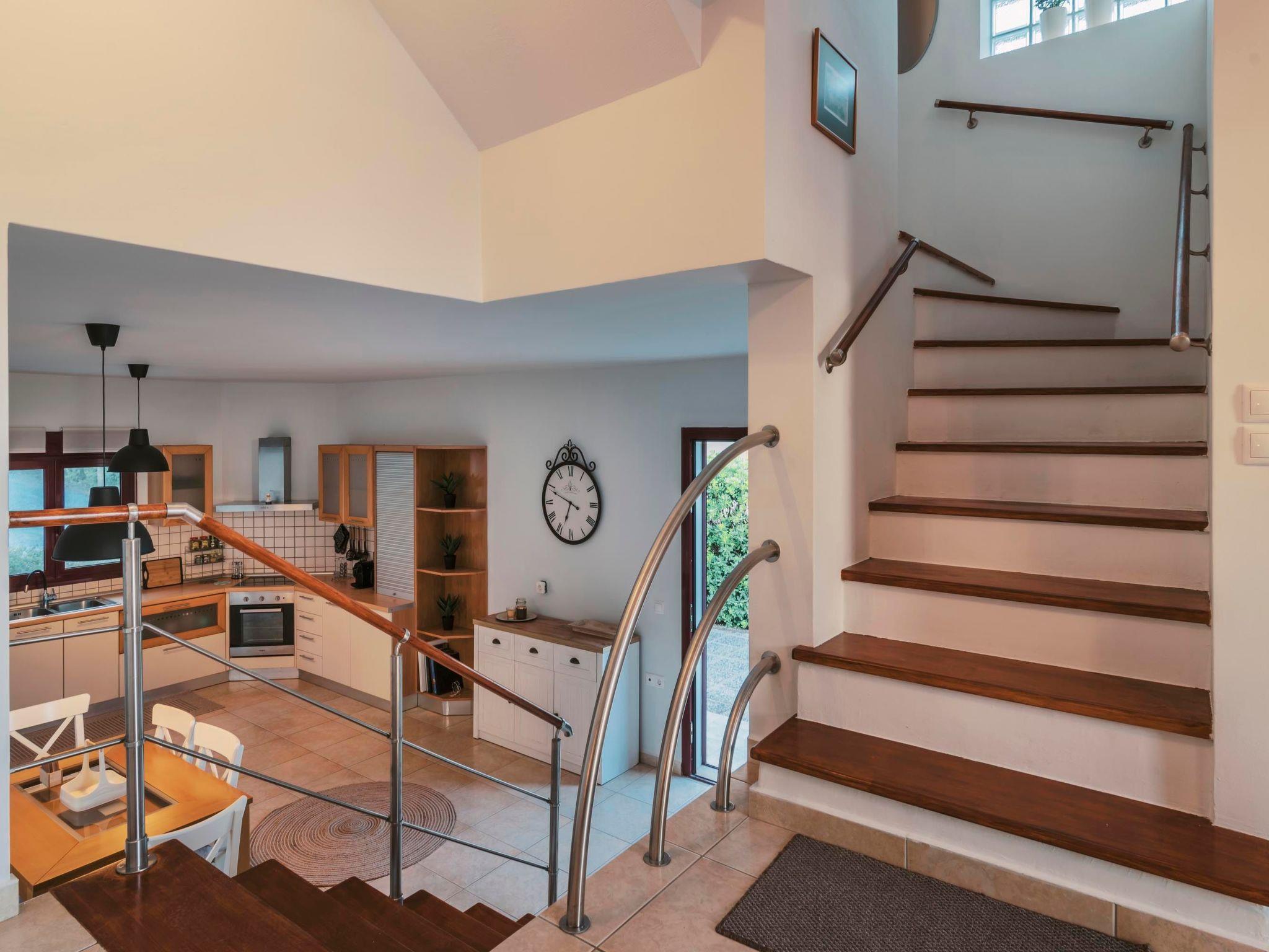 On the first floor, charming balconies offer views of the picturesque surroundings, while the outdoor pergola area features a fully equipped kitchen and an impressive BBQ setup. With a comfortable dining space, it’s the perfect place for guests to gather, share a delicious meal, and create lasting memories in a truly enchanting setting.