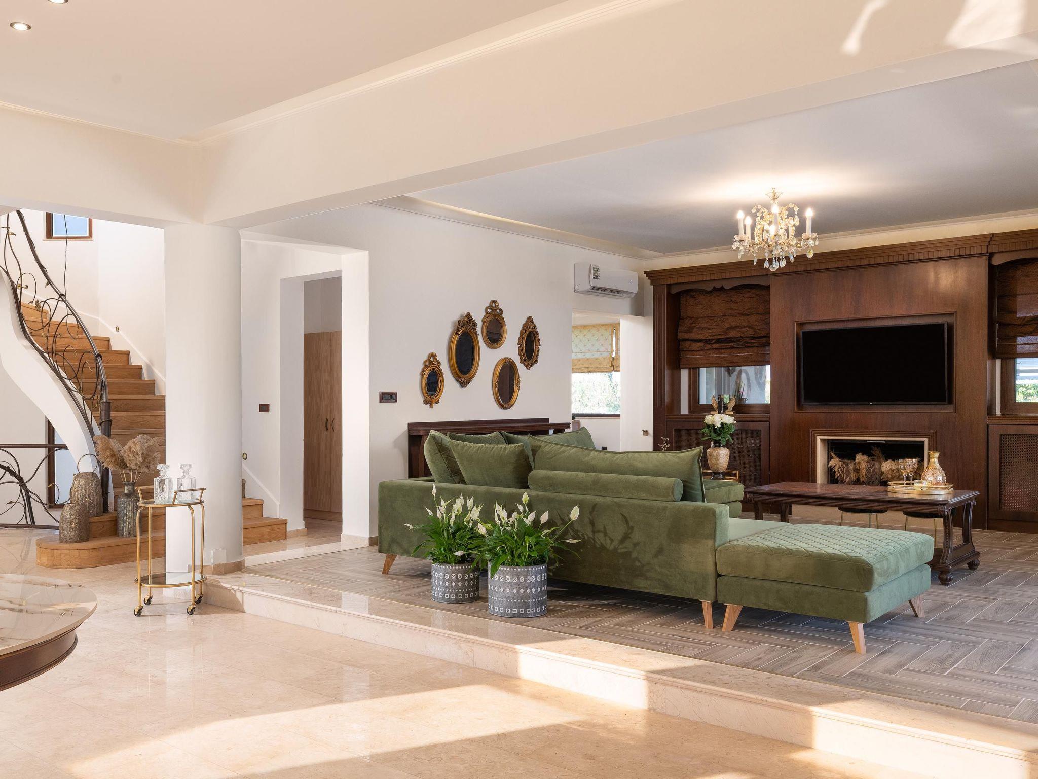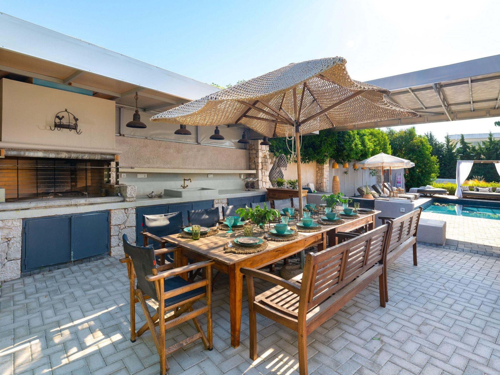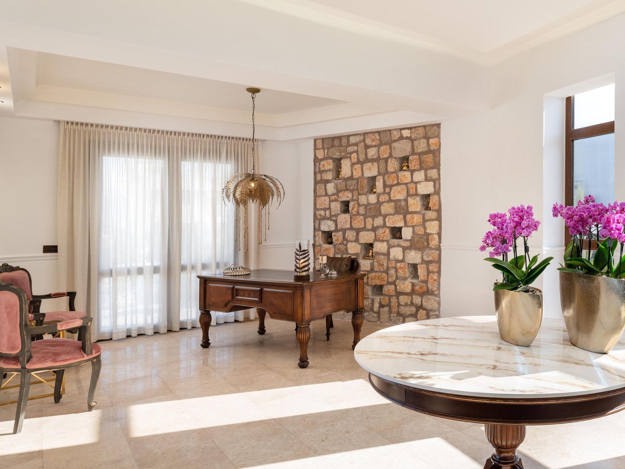 Vento Imperiale Estate is a 5-bedroom villa styled and decorated by a brilliant interior designer. All spacious bedrooms are carefully decorated in a sophisticated contemporary style mixed with classic details. Also, there are 2 double sofa beds in the living areas. Guests will find two fully equipped kitchens, suitable for any meal preparation along with comfortable seating areas. There are five dreamy bathrooms, two of them are ensuite. One of the bathrooms has a bathtub for your ultimate relaxation and the rest have stylish showers. Also, there is a wc. In addition, there are plenty of living areas in unique colors. There’s free Wi-Fi access throughout the property as well as flat screen TVs. Vento Imperiale Estate continues to surprise you as you walk to the outdoor facilities. Outdoors, you will find the enchanting private swimming pool and its unique sunbeds and dining area. Also, there is a billiard and a table football for fun moments. Guests will find the BBQ facility and the seating area to relax and enjoy a family or friends gathering. There’s free everyday cleaning service available.