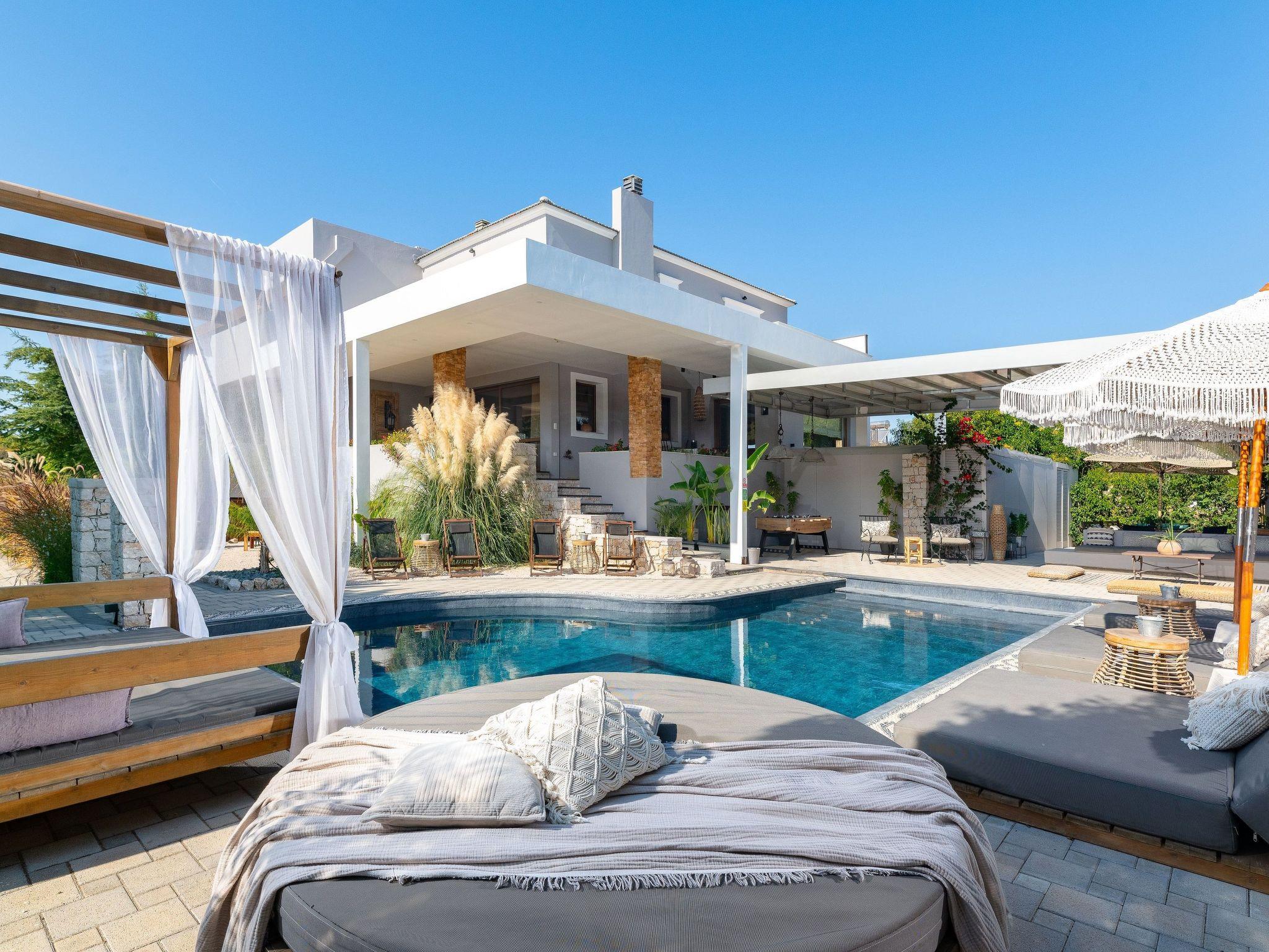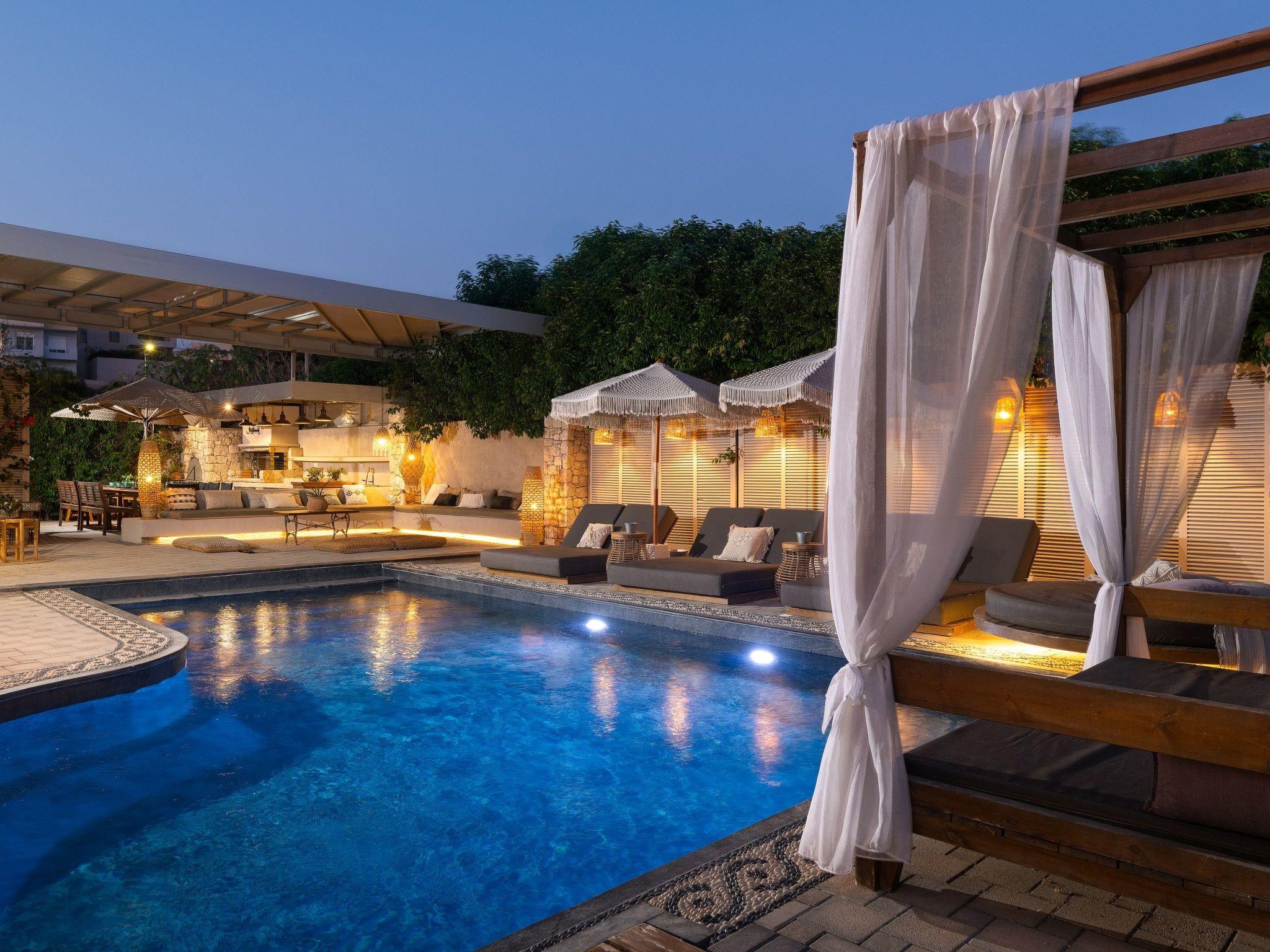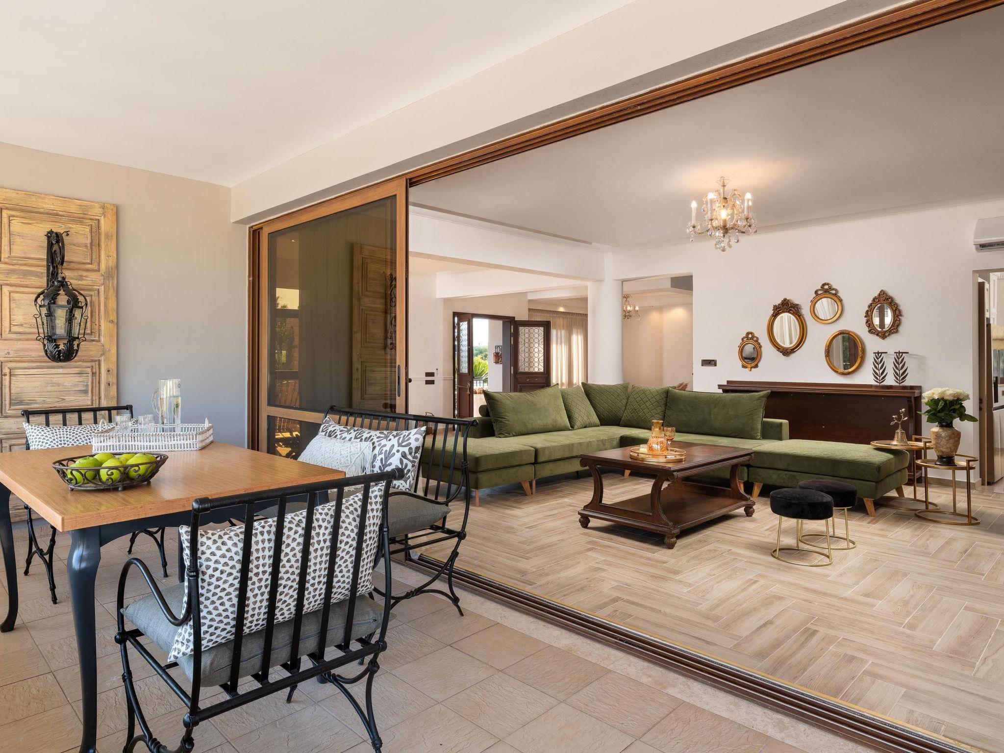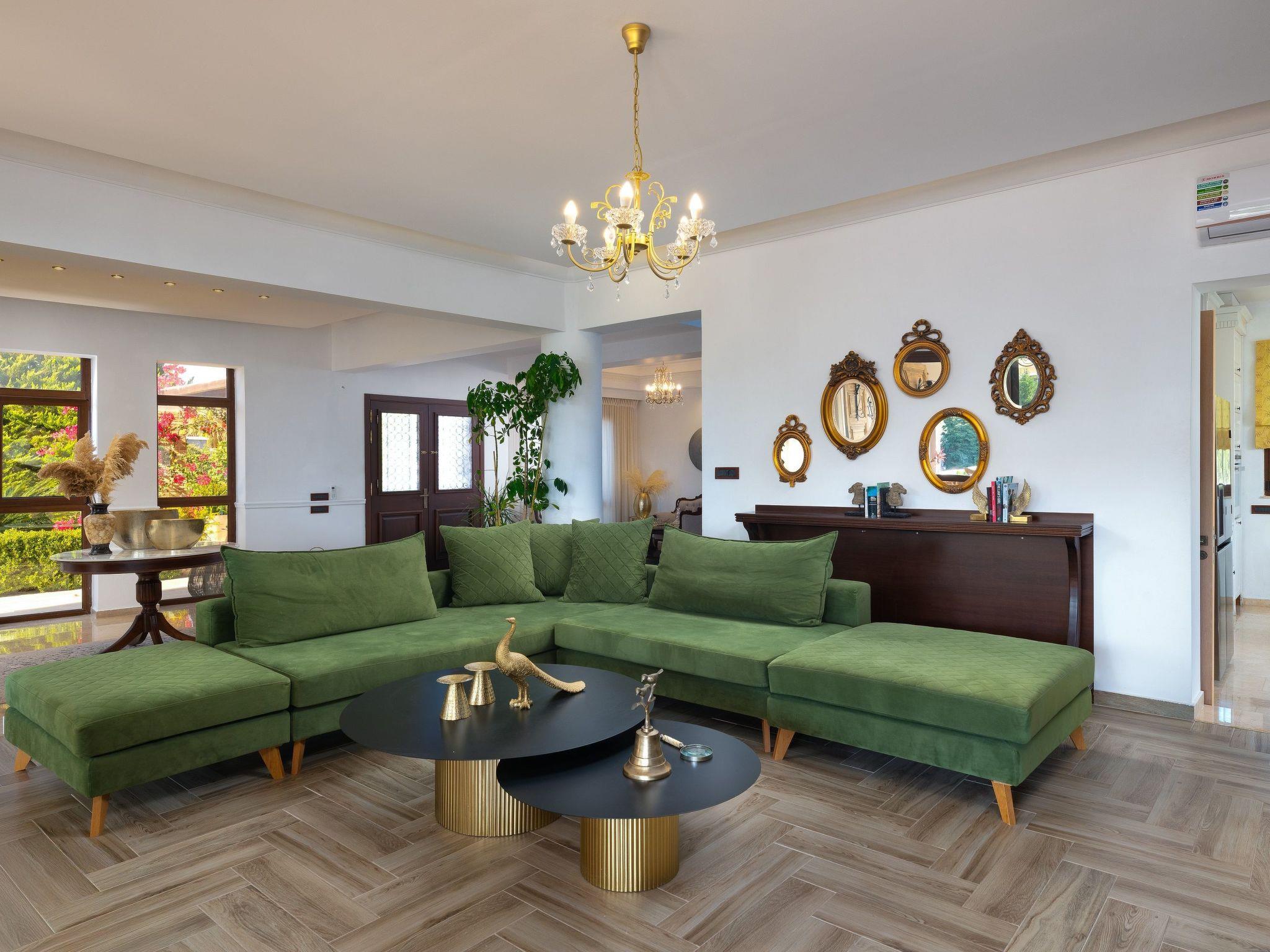 Vento Imperiale Estate is a 5-bedroom villa styled and decorated by a brilliant interior designer. All spacious bedrooms are carefully decorated in a sophisticated contemporary style mixed with classic details. Also, there are 2 double sofa beds in the living areas. Guests will find two fully equipped kitchens, suitable for any meal preparation along with comfortable seating areas. There are five dreamy bathrooms, two of them are ensuite. One of the bathrooms has a bathtub for your ultimate relaxation and the rest have stylish showers. Also, there is a wc. In addition, there are plenty of living areas in unique colors. There’s free Wi-Fi access throughout the property as well as flat screen TVs. Vento Imperiale Estate continues to surprise you as you walk to the outdoor facilities. Outdoors, you will find the enchanting private swimming pool and its unique sunbeds and dining area. Also, there is a billiard and a table football for fun moments. Guests will find the BBQ facility and the seating area to relax and enjoy a family or friends gathering. There’s free everyday cleaning service available.
