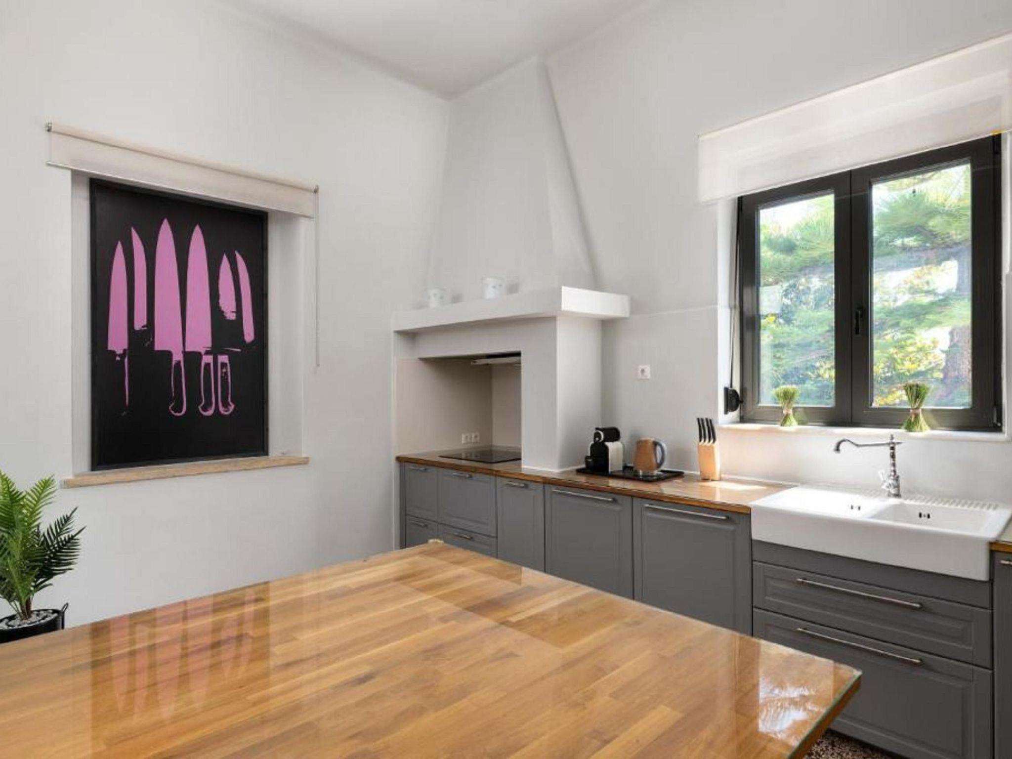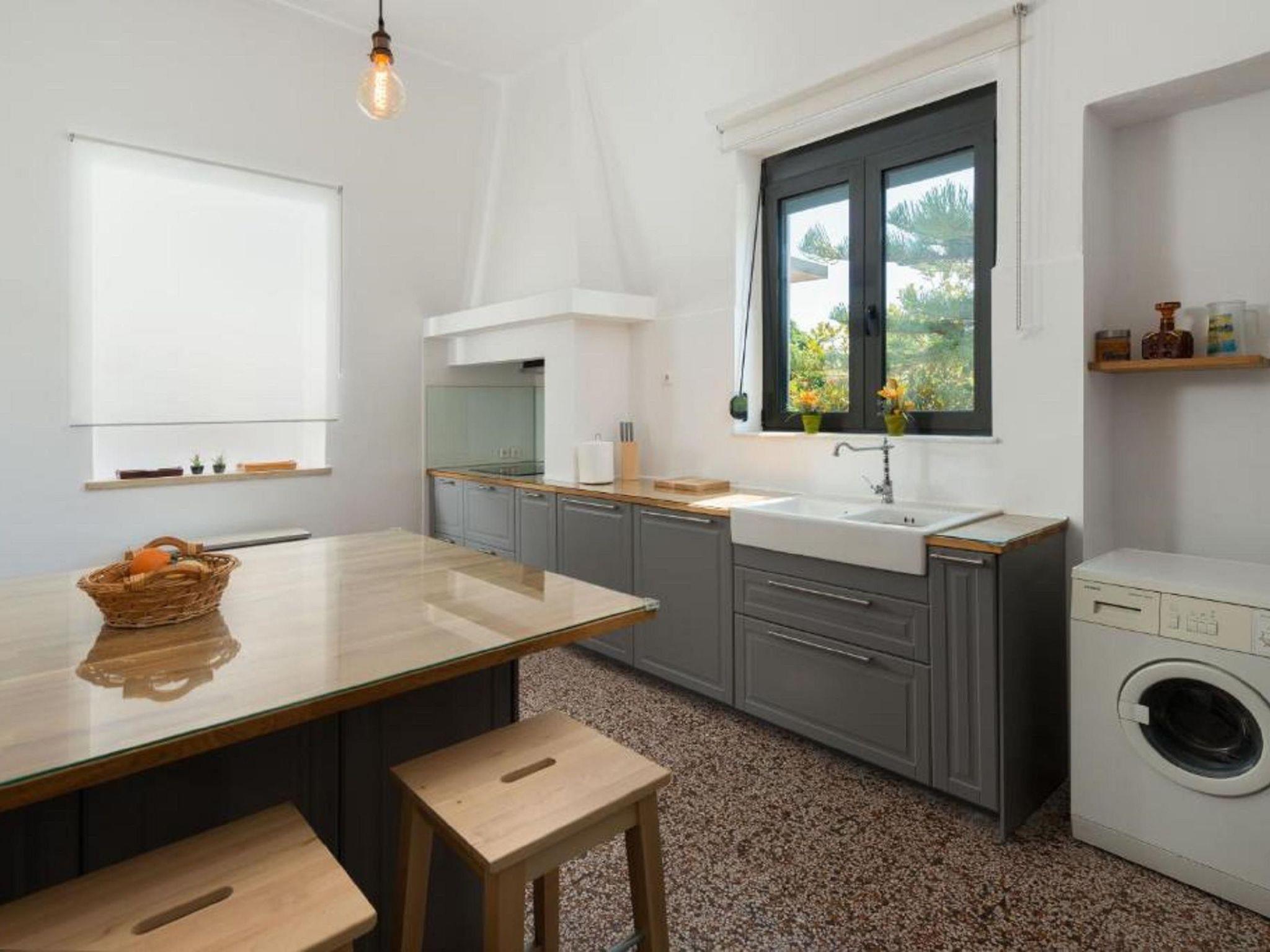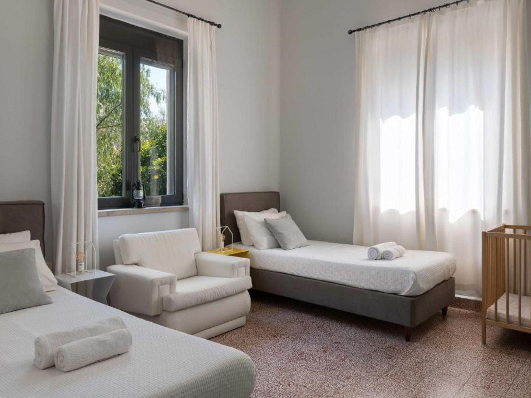 Eleonora Villa offers a spacious and comfortable layout, all conveniently located on the ground floor. The villa features four bedrooms—two with double beds and two with twin beds, making it ideal for families or groups of up to 8 guests. There is one modern bathroom with two showers separated by a glass partition, and an additional WC. The fully equipped kitchen provides everything needed for home-cooked meals. Outside, guests can enjoy a private pool with sunbeds, perfect for relaxing under the sun. A BBQ area with outdoor furniture and a charcoal grill adds to the villa’s charm, creating the perfect setting for alfresco dining.