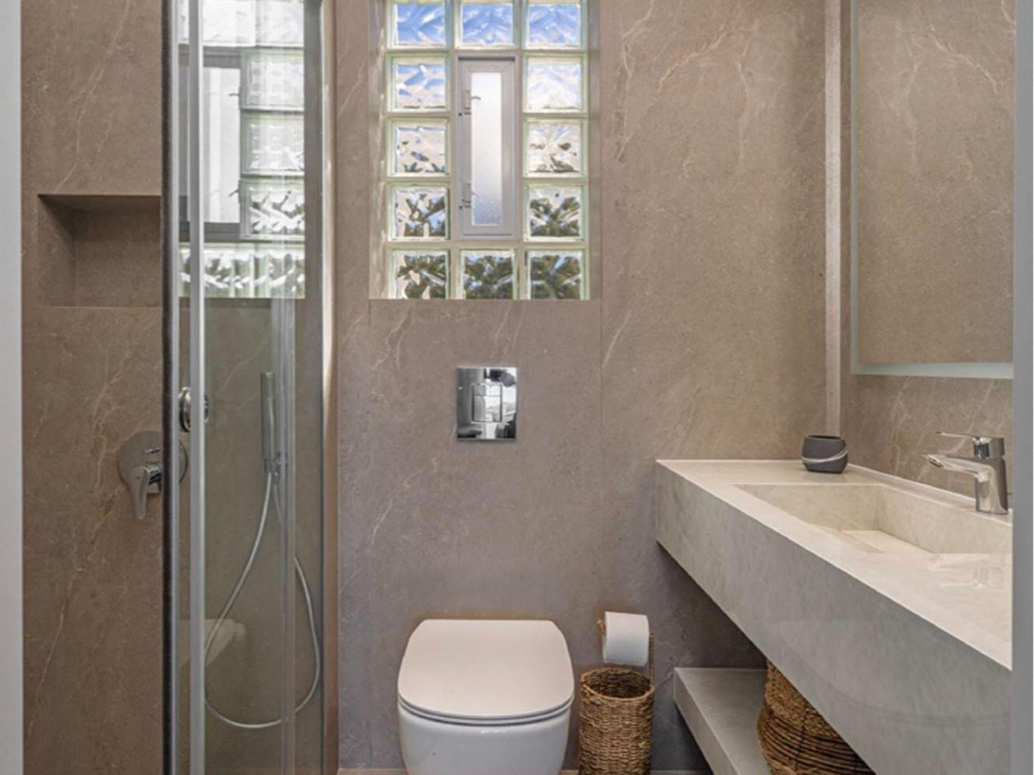 The second floor hosts three beautifully decorated double bedrooms, a bright office area that opens to a private terrace, two bathrooms with showers, and one bathroom with a relaxing bathtub, perfect for unwinding.