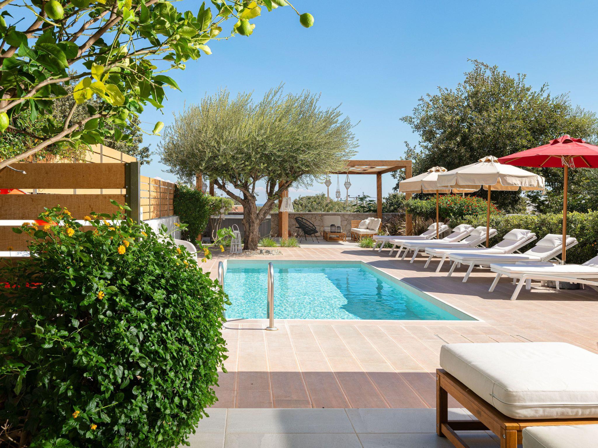 Terpsis is the ancient Greek word for delight, satisfaction, pleasure and these are the feelings someone has when they face this beautifully crafted villa. Terpsis pool villa is situated in the outskirts of Rhodes city and offers a magnificent private swimming pool along with a beautiful view to the emerald waters of the island. Also it has an easy access to the nearest beach, only in a 5 minute drive. The Villa has the best setting for relaxed and delightful holidays in the most convenient location and is perfect for up to 8 people.