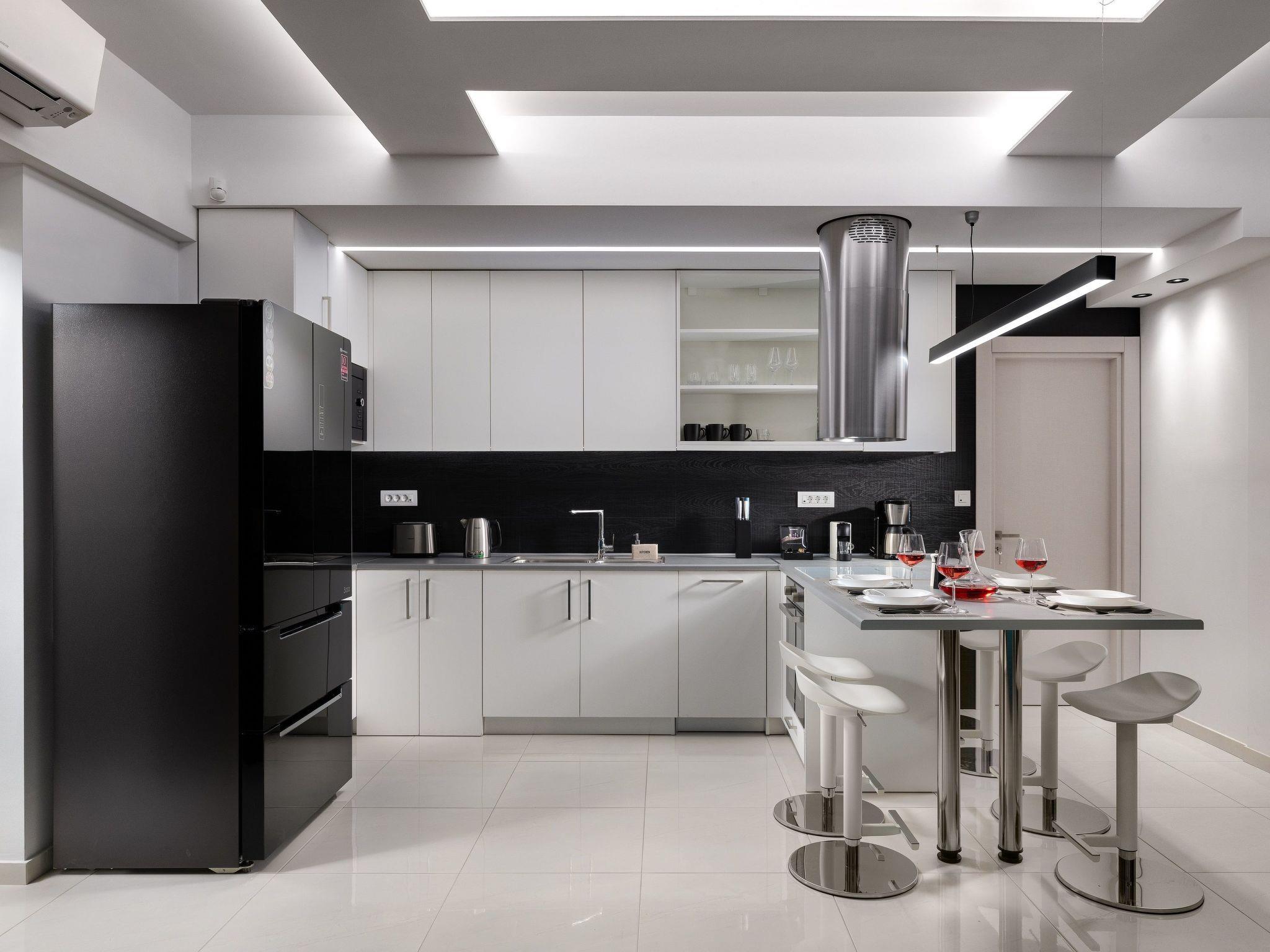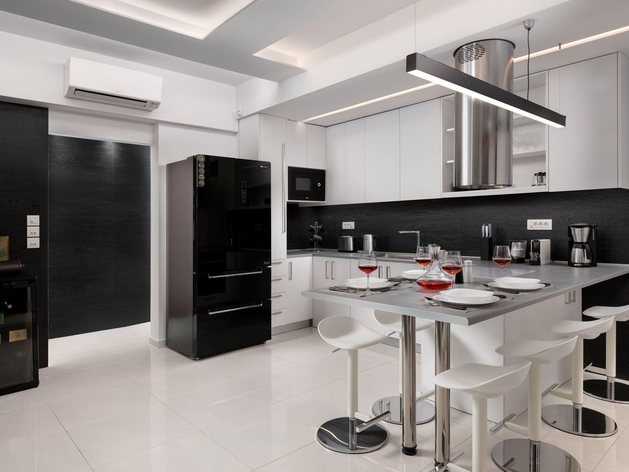 Each one of our suites is fully equipped, including a seating area, a well-fitted kitchen with a dining area and bedrooms with private bathrooms. Moreover, you shall find all the necessities, such as a microwave, air condition, a 65’’ flat-screen TV with satellite channels as well as a kettle. a coffee machine, and many more.