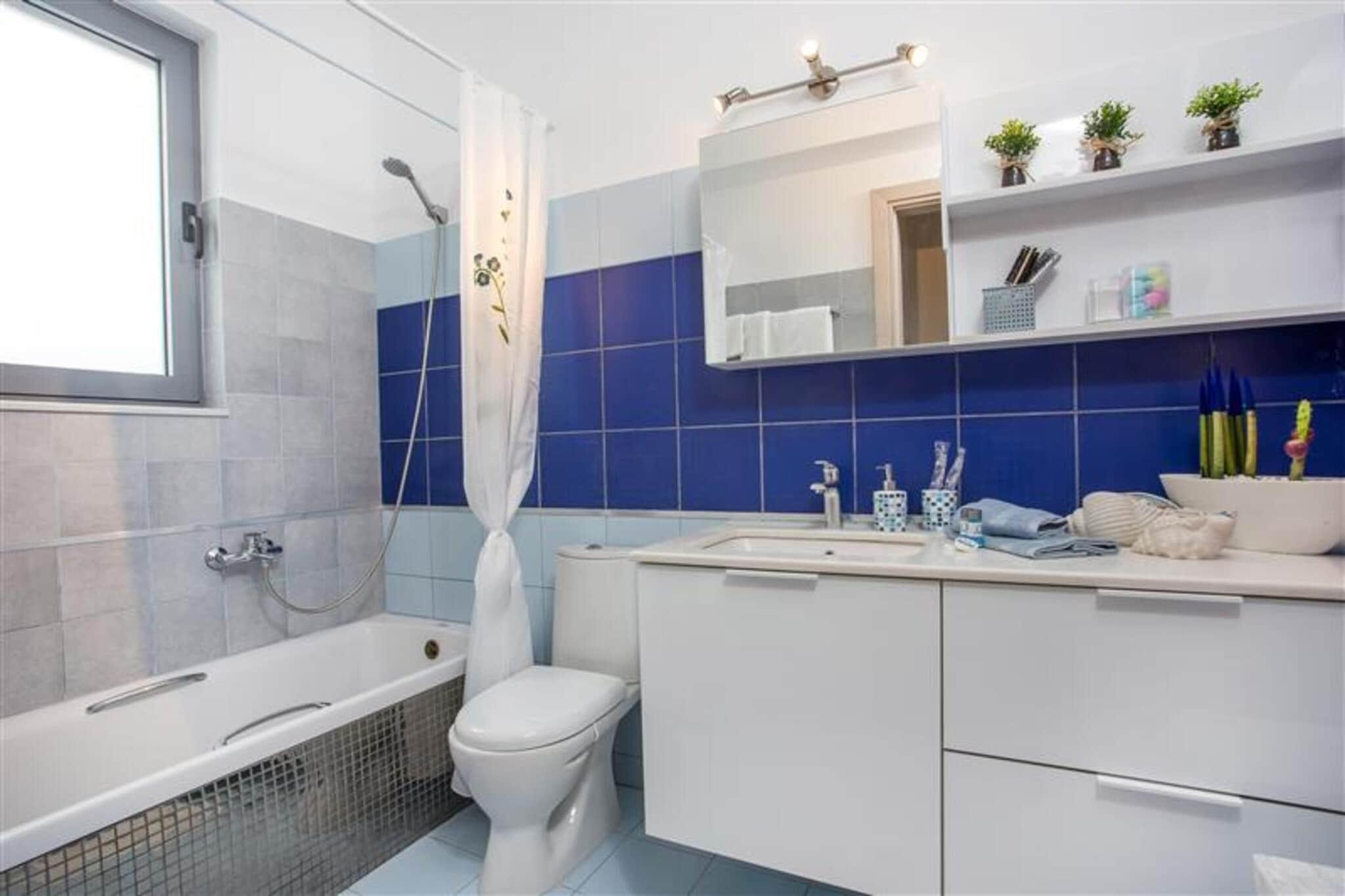 Åbent køkken(kogeplade(glaskeramisk), elkedel, brødrister, kaffemaskine(kaffetragt), ovn, opvaskemaskine , køle-fryseskab, , ), stue / spisestue(enkeltsovesofa, Fjernsyn(fladskærm), spisebord, sofahjørne), soveværelse(dobbeltseng, Fjernsyn(fladskærm)), soveværelse(dobbeltseng, Fjernsyn(fladskærm)), badeværelse(badekar, håndvask, toilet), badeværelse(badekar, håndvask, toilet), Internetadgang, bruser(udendørs), vaskemaskine, balkon, patio, klimaanlæg, solstole, grill(gas), swimmingpool(privat)