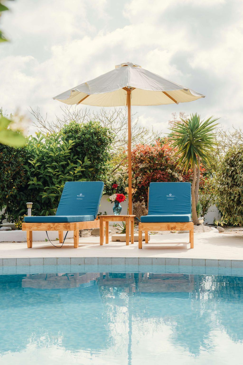 Our beautifully designed Villa is fully furnished and equipped. The sleeping quarters are on the upper floor, with two bedrooms and private large balconies. There is a fully equipped kitchen, a living room with a fireplace and a flat-screen TV, a dining area and a sun room.