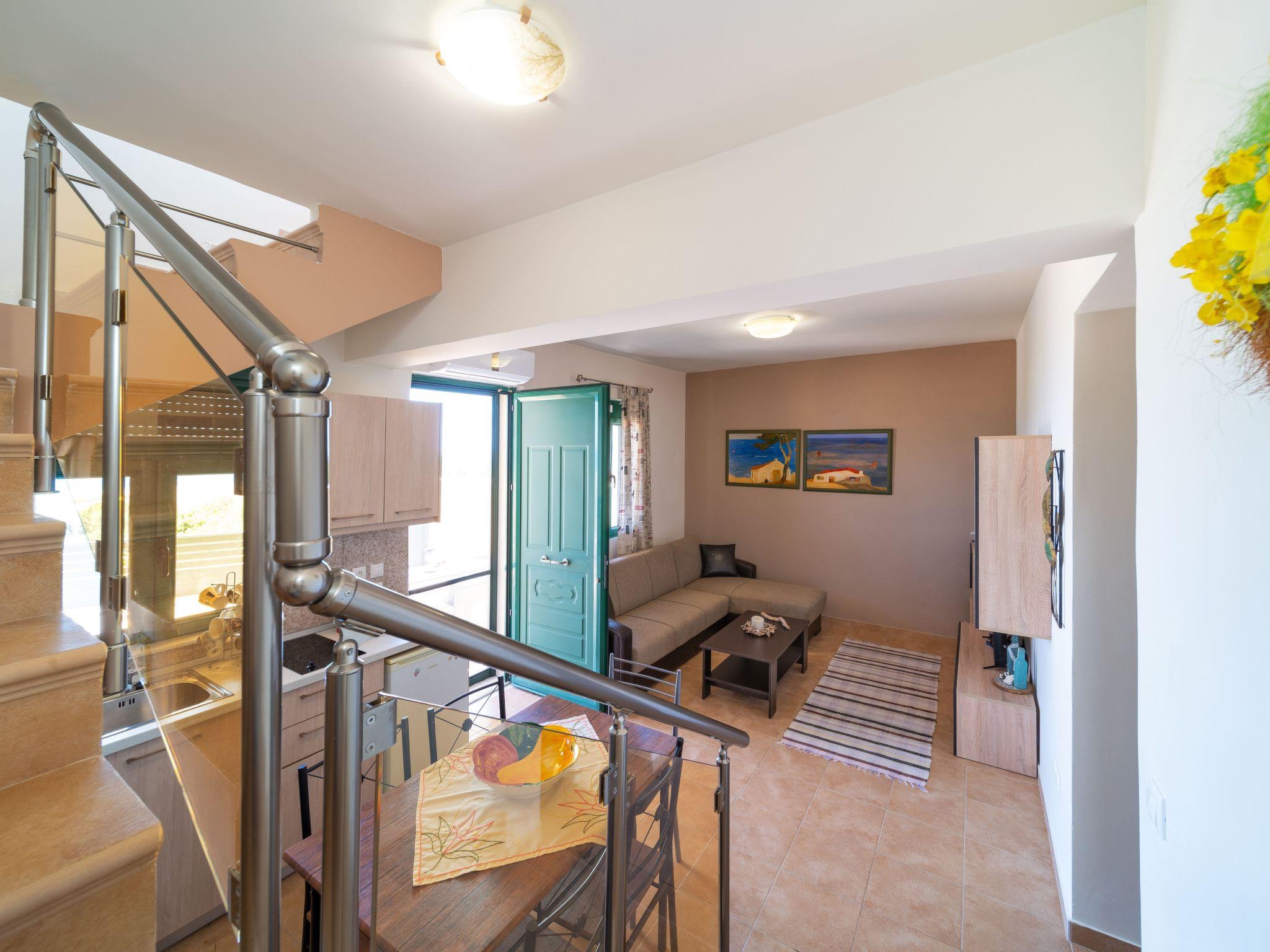 The interiors of Mare Blu 1 and Mare Blu 2 have been thoughtfully equipped to ensure a hassle-free vacation. Each maisonette features two cozy bedrooms, with air conditioning available throughout to keep you cool during those warm Mediterranean nights. For your convenience, there are also two modern bathrooms in each property, equipped with showers. The ground floor houses a compact kitchen, ideal for preparing light meals, and a quaint living room area, perfect for unwinding after a day of adventure. The addition of a washing machine exclusively for guest use, along with a capsule coffee machine (including capsules/pods) and an electric kettle, further adds to the comfort of your stay.