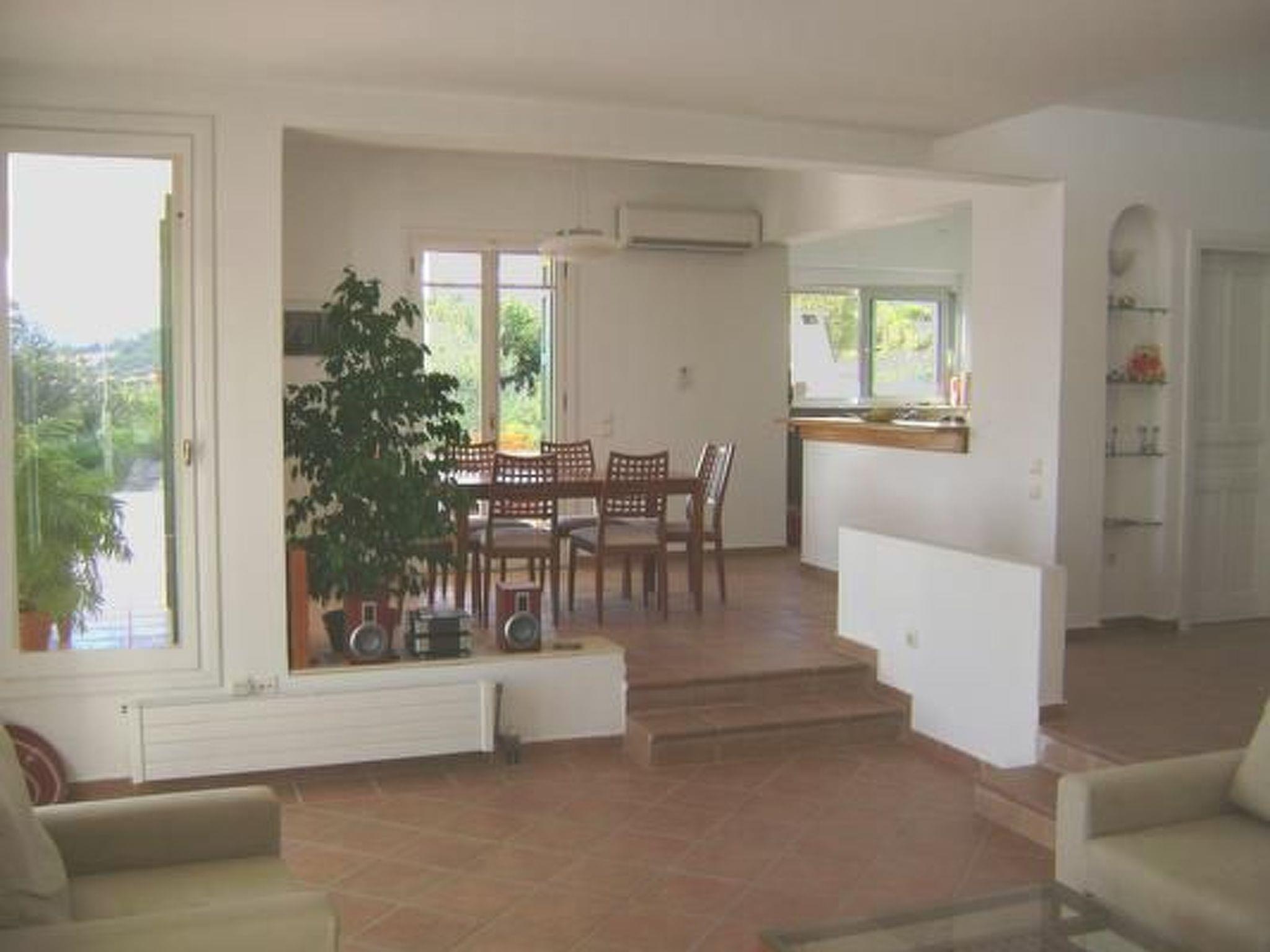 Following the natural terrain, the house is built on 2 levels, each with 2 bedrooms and 1 bathroom/shower. Bright, comfortable interiors, an open, fully equipped kitchen with a separate dining room, large covered verandas around the house, a flowing transition from inside and outside. The interior rooms have direct access to the garden or veranda and all have sea views.