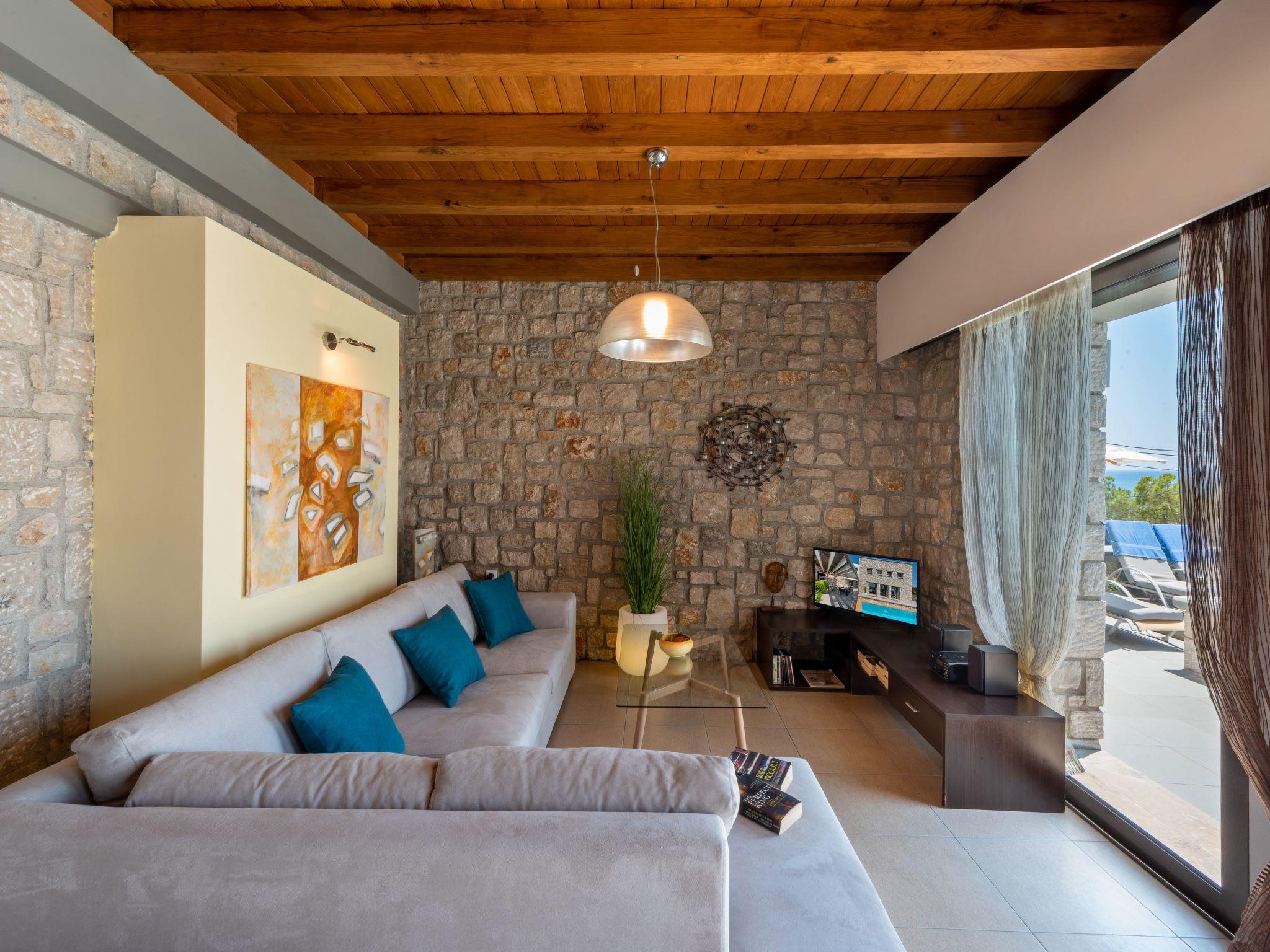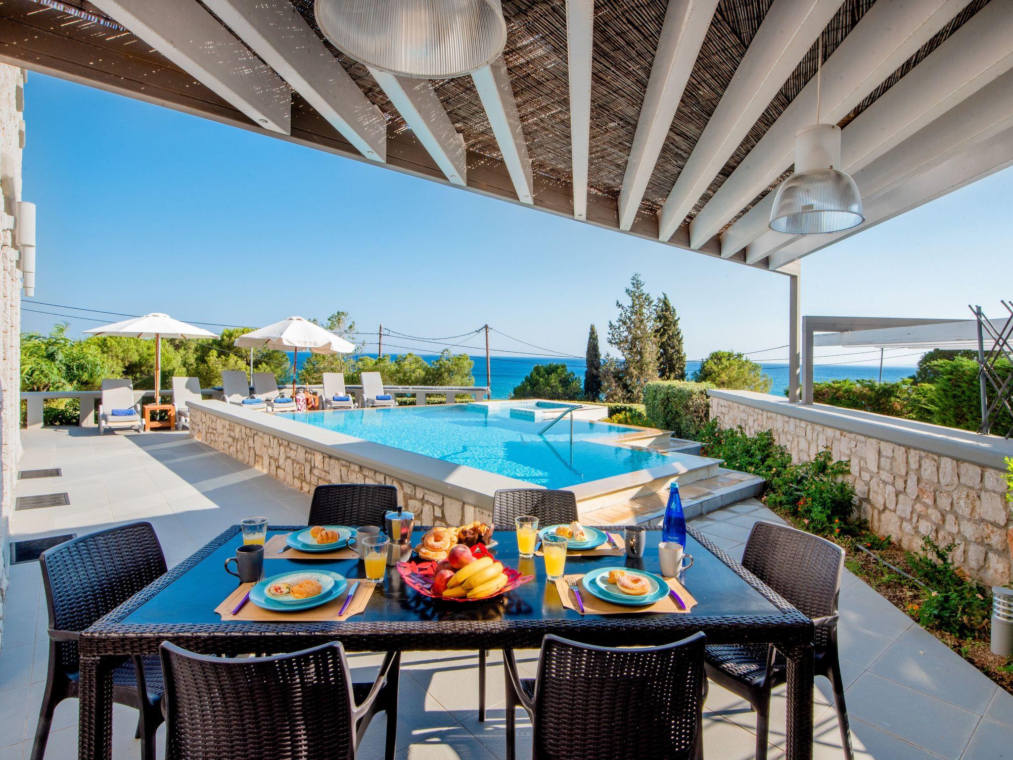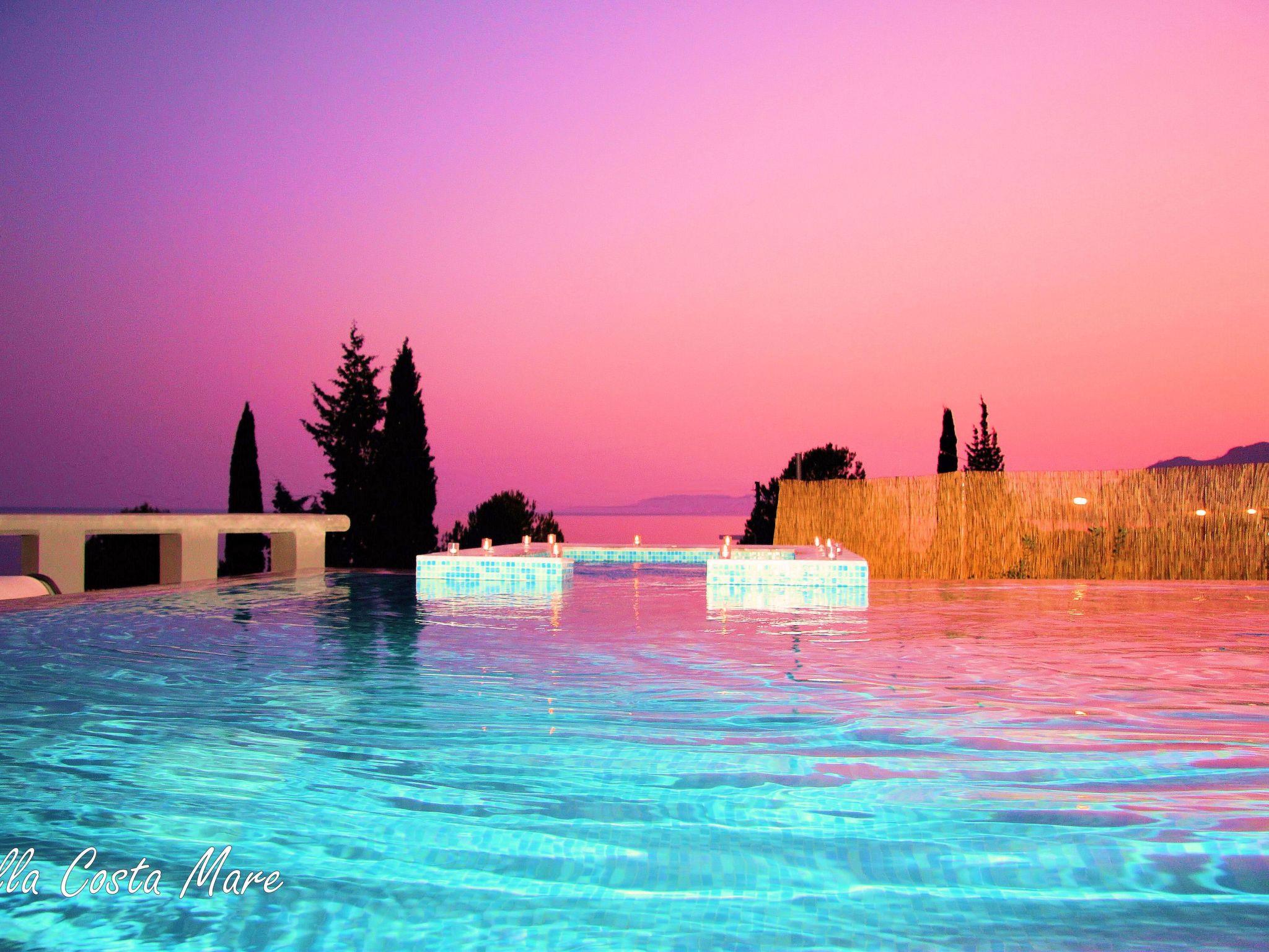 The large private pool /Jacuzzi pool is expertly maintained and there are enough sun loungers for all the guests. The pool can be accessed by steps. The pool is private and solely for the use of Villa Costa Mare guests. The barbecue area is big enough for lovely meals away from the sun. Its front side overlooks the sea while in the back side there is a beautiful mountain view. In the garden there are spots where you can hide from moments of relaxation.