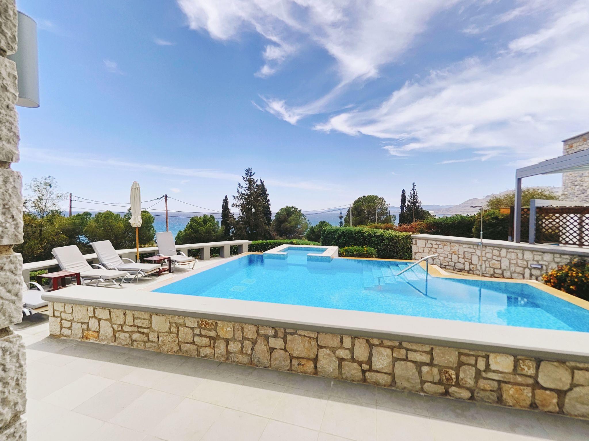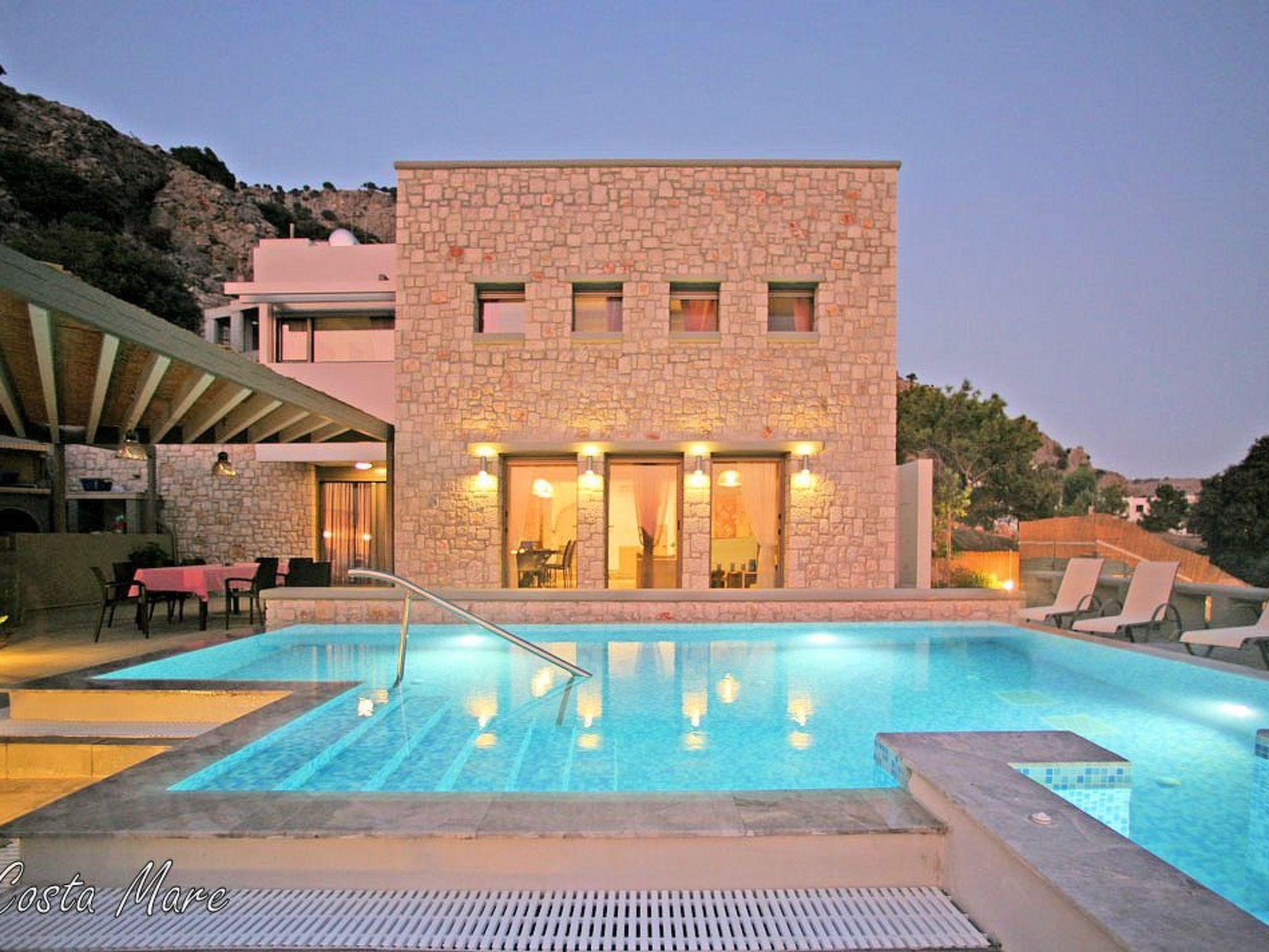 Villa CostaMare in Pefkos, near Lindos, Rhodes, its a Luxury Newly Built Stone Villa With Private Pool-Jacuzzi, Ideal For Relaxation, This Beautiful Villa Offers a Amazing Sea And Mountain View, Peaceful Location, 3 Minutes Walk to the Beach.