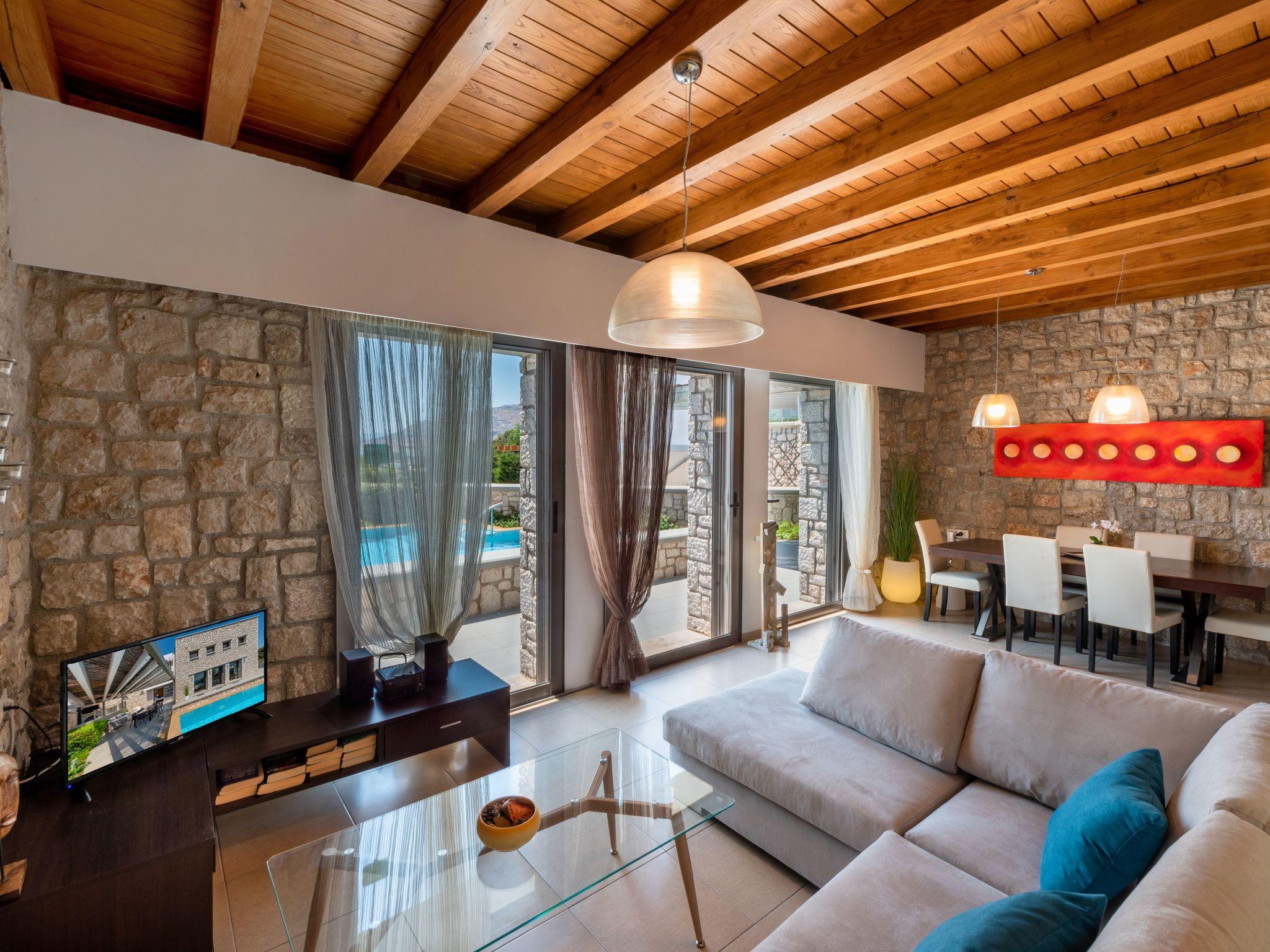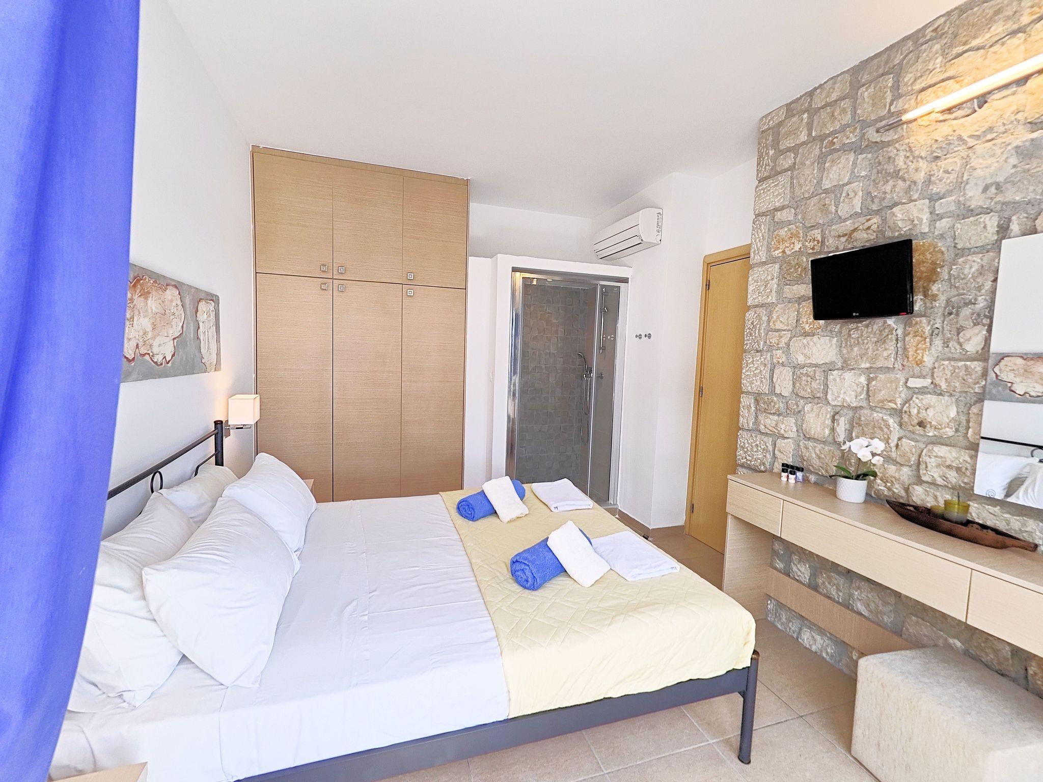 Enjoy lazy days by the pool-Jacuzzi ( 35sq2) with breathtaking views across the local bays and take in mesmerizing sunsets over the offshore islands. There are four bedrooms, one with en-suite WC-Shower, one bathroom and one WC. There are two double bedrooms and two twin bedrooms. The covered veranda offers shade during the hot summer months and the large patio area is ideal for outdoor cooking on the barbecue area. The pool-Jacuzzi overlooks the bay and on towards the mountains opposite.