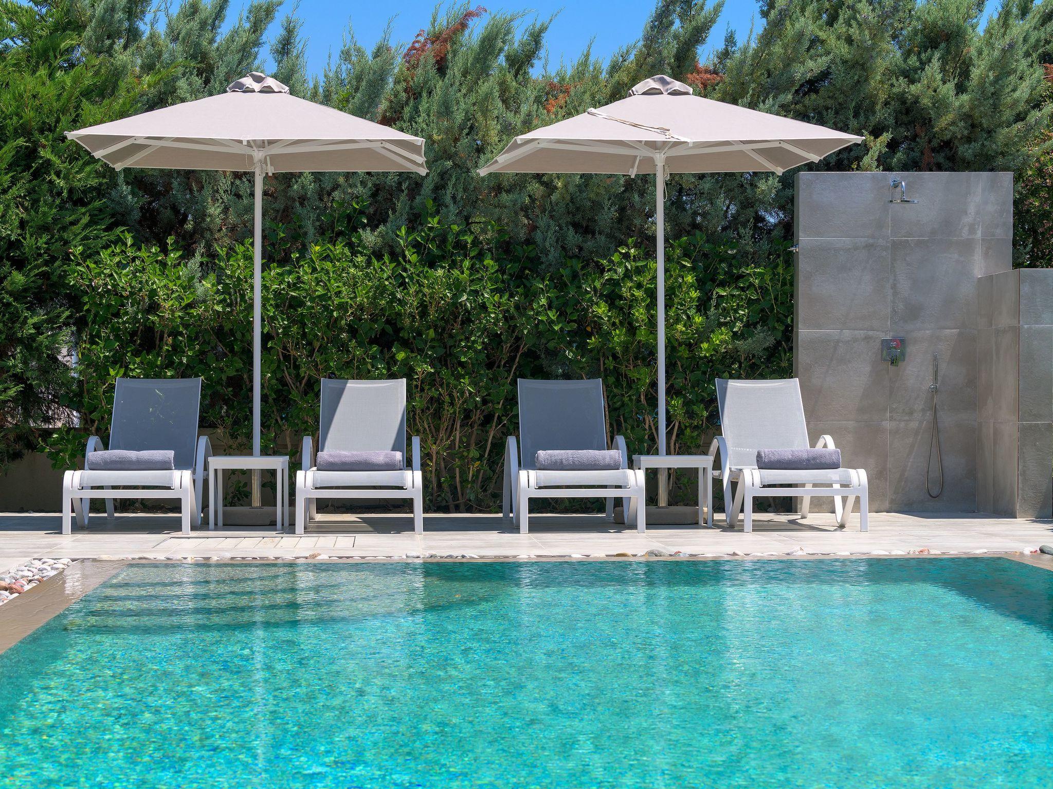 On the terrace by the pool, all guests can relax on great pool loungers - sufficient sun protection is provided.