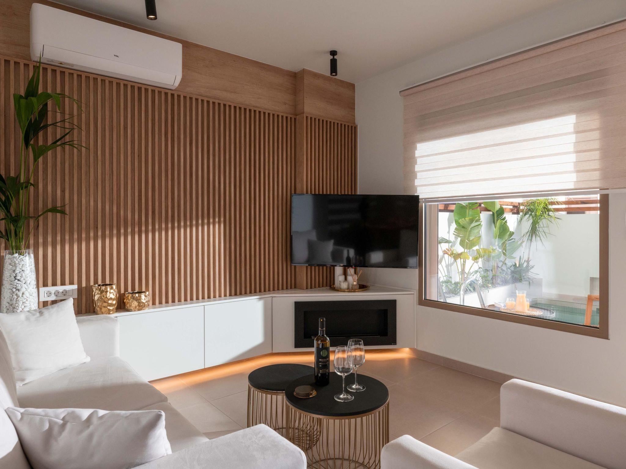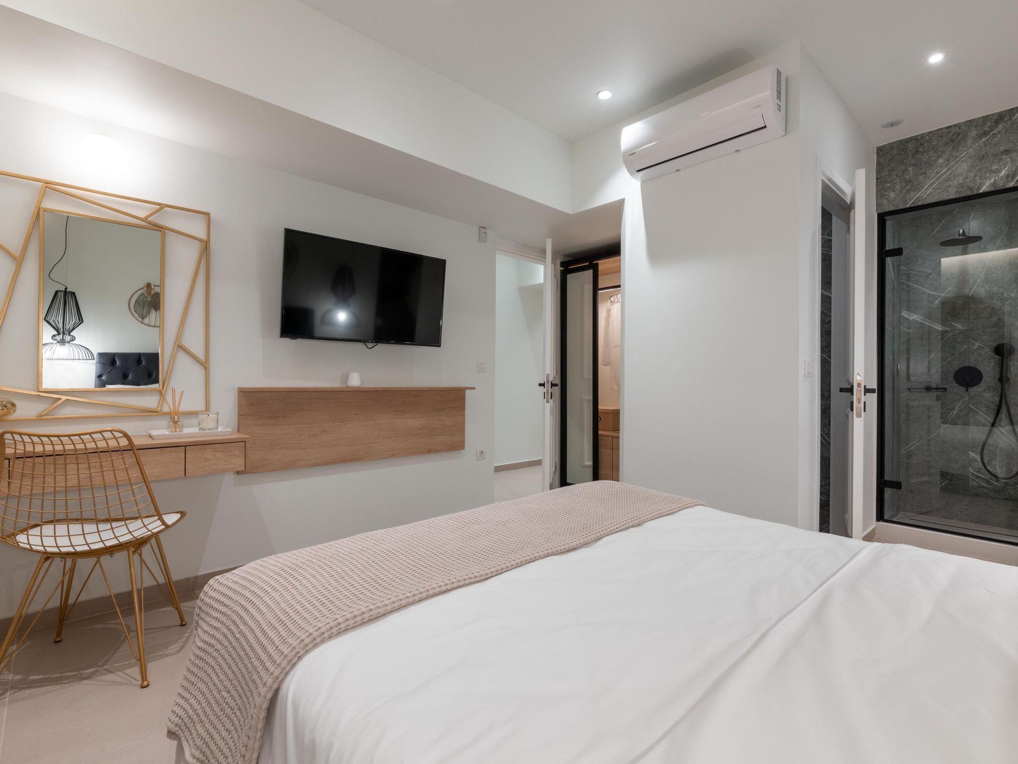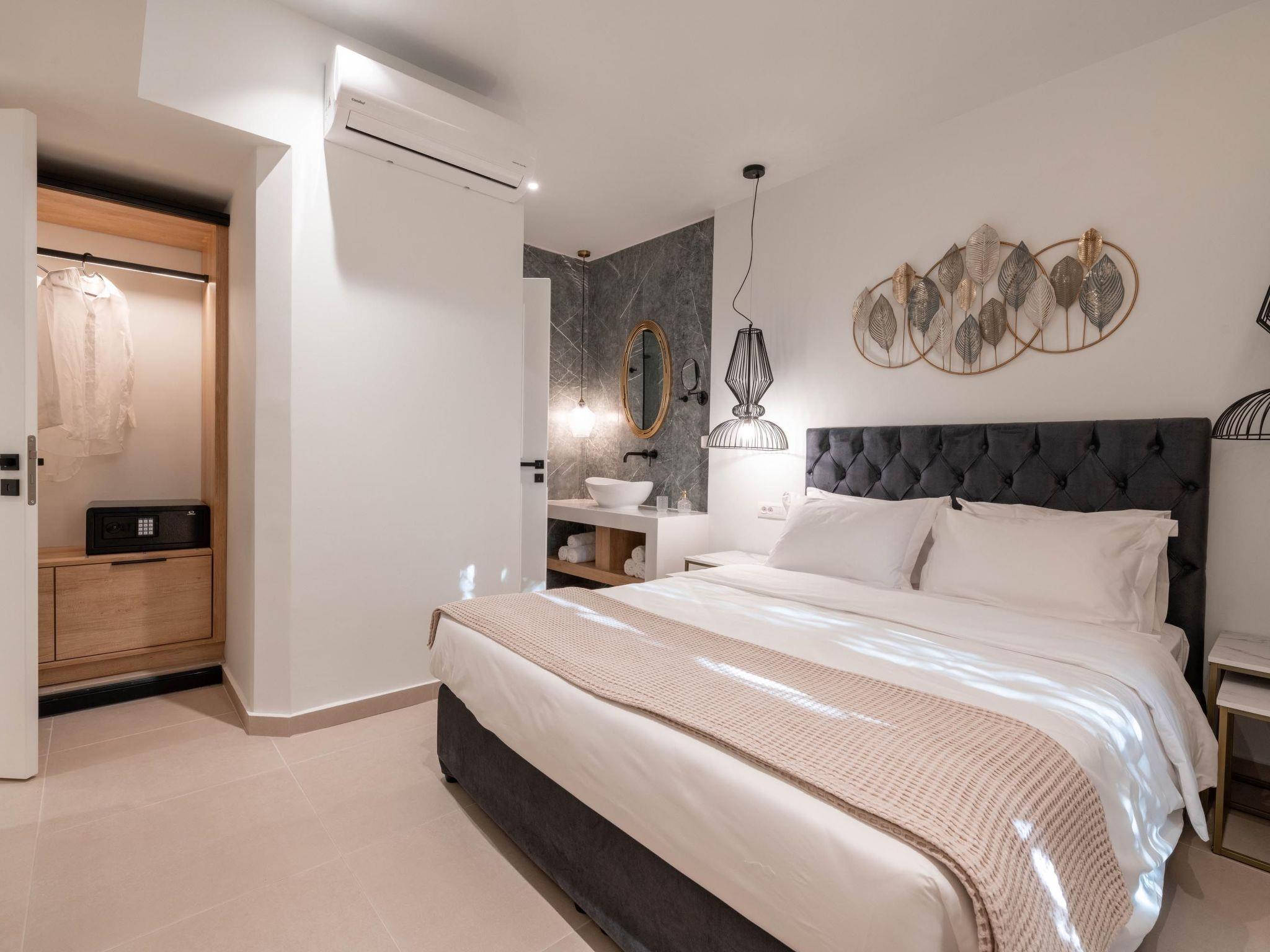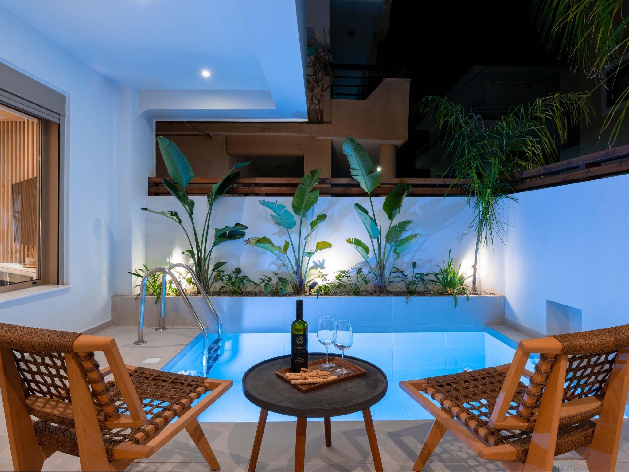 Ann Premium Suite has a unique combination of stylish design and comfort. The suite contains 2 exquisite bedrooms with double beds as well as a comfy double sofa bed in the living room. Also, it has 2 fashionable bathrooms with a shower in a minimal structure. One of the bathrooms is ensuite to a bedroom. The amazing kitchen is fully equipped for any meal preparation of your choice. There are smart TVs and free wifi access throughout the property. Outdoors is truly a piece of art. There’s an incredible private heated swimming pool and a heated jacuzzi surrounded by a peaceful private patio and high-quality furniture. Also, there are barbecue facilities and a dining table where guests can enjoy a gathering with their loved ones.