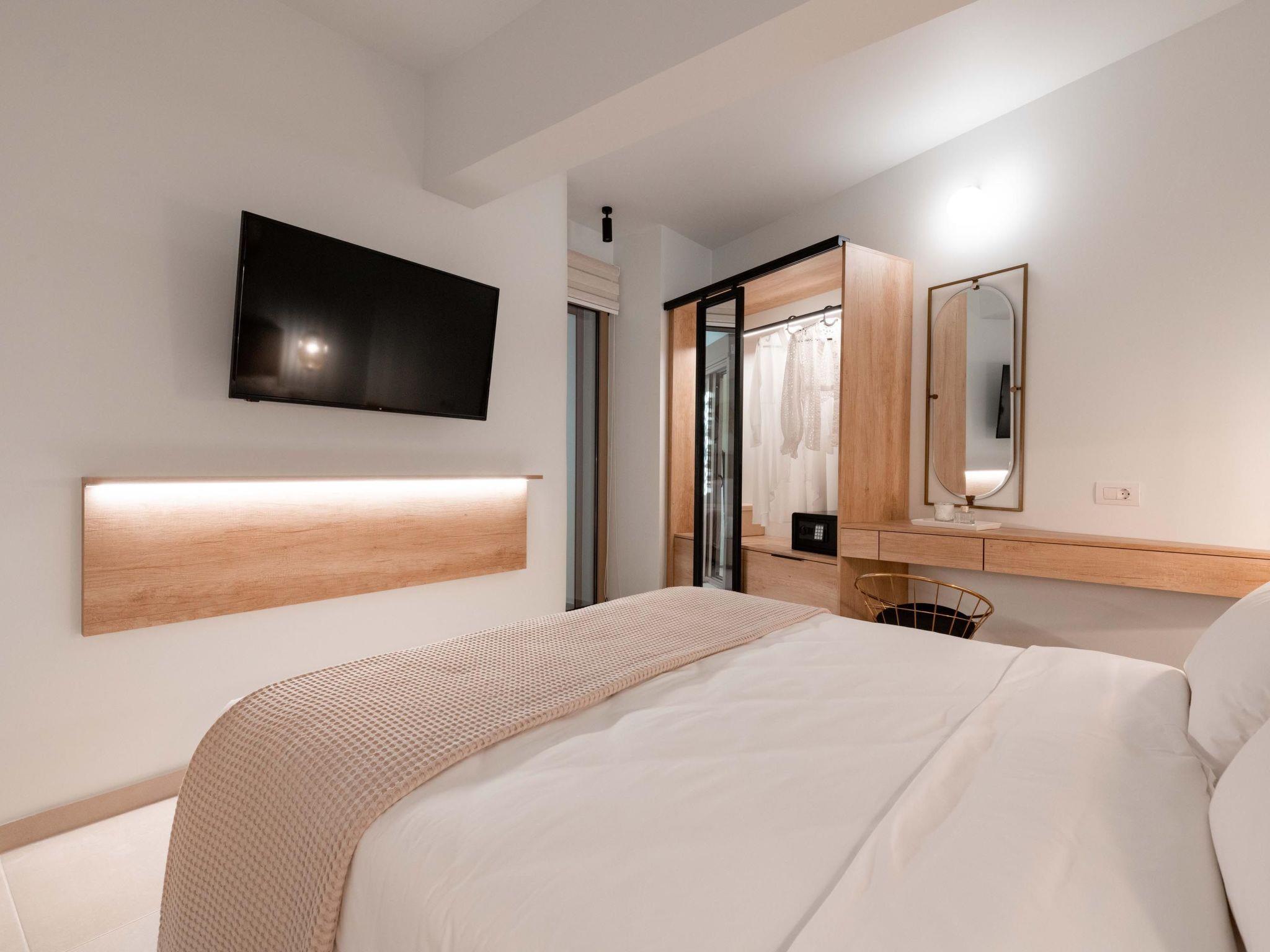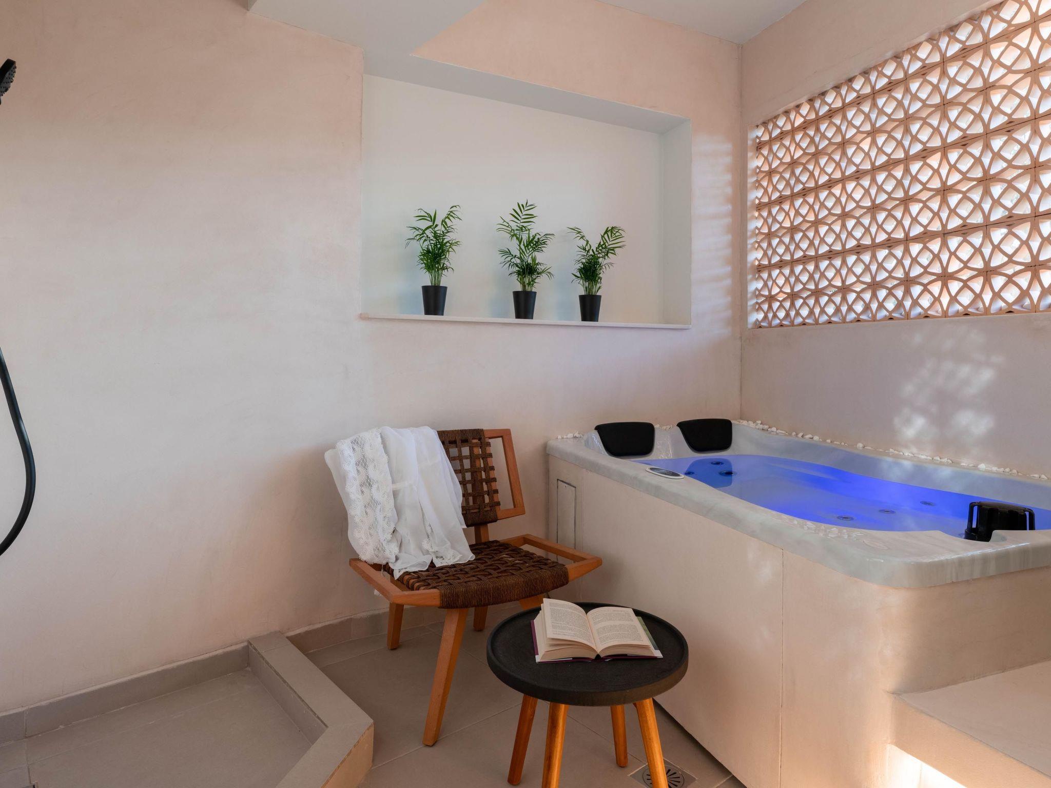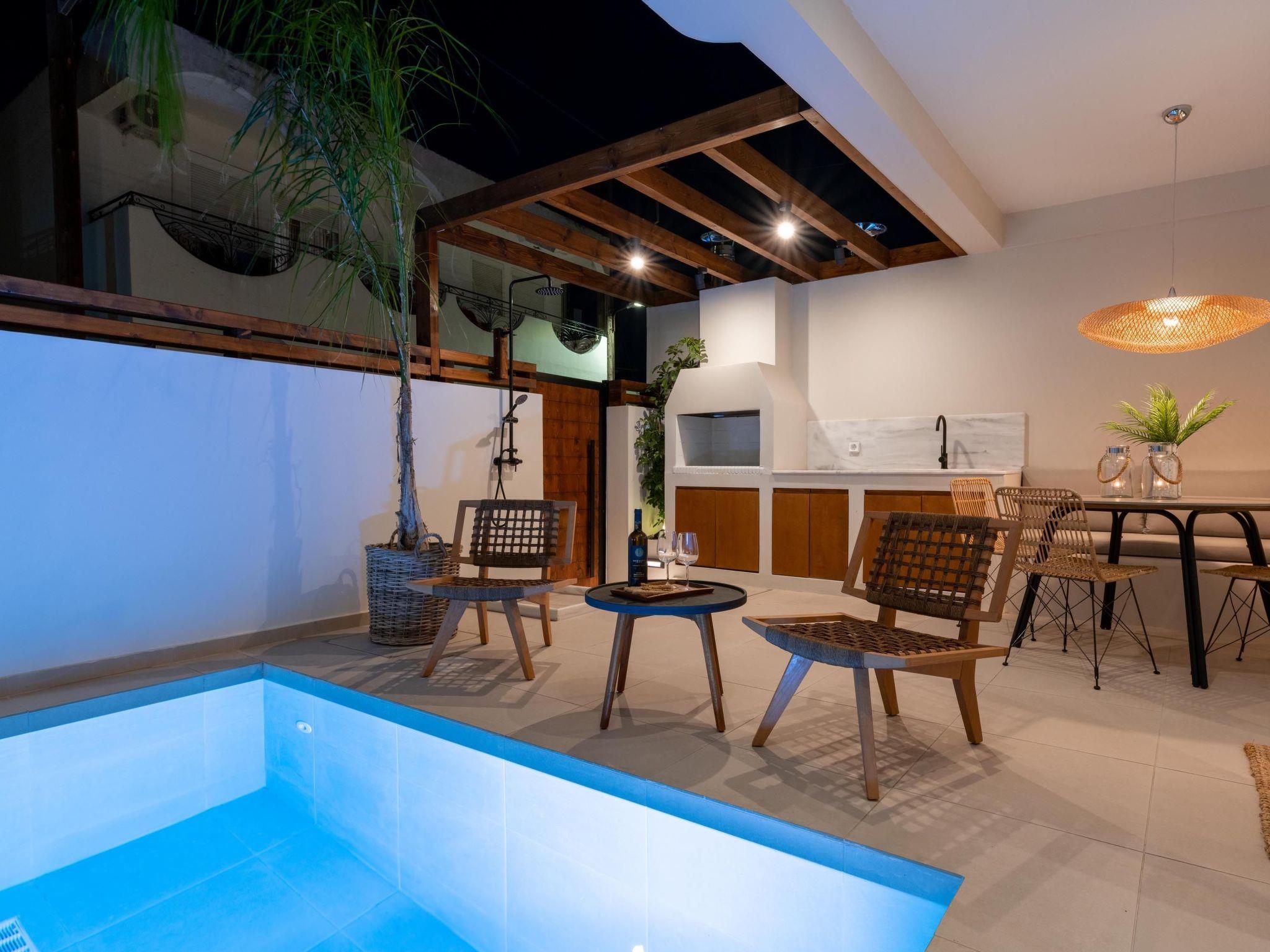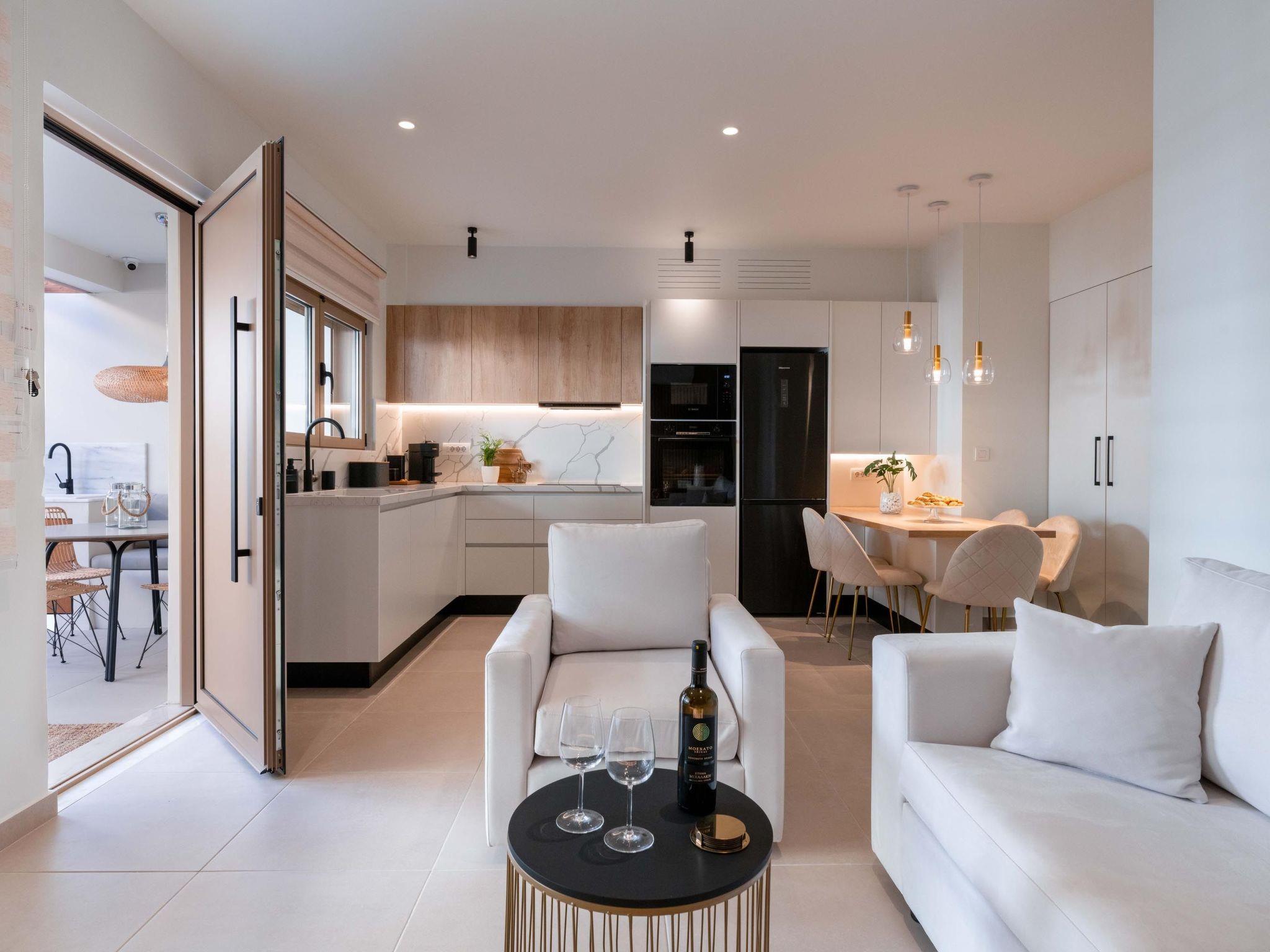 Ann Premium Suite has a unique combination of stylish design and comfort. The suite contains 2 exquisite bedrooms with double beds as well as a comfy double sofa bed in the living room. Also, it has 2 fashionable bathrooms with a shower in a minimal structure. One of the bathrooms is ensuite to a bedroom. The amazing kitchen is fully equipped for any meal preparation of your choice. There are smart TVs and free wifi access throughout the property. Outdoors is truly a piece of art. There’s an incredible private heated swimming pool and a heated jacuzzi surrounded by a peaceful private patio and high-quality furniture. Also, there are barbecue facilities and a dining table where guests can enjoy a gathering with their loved ones.