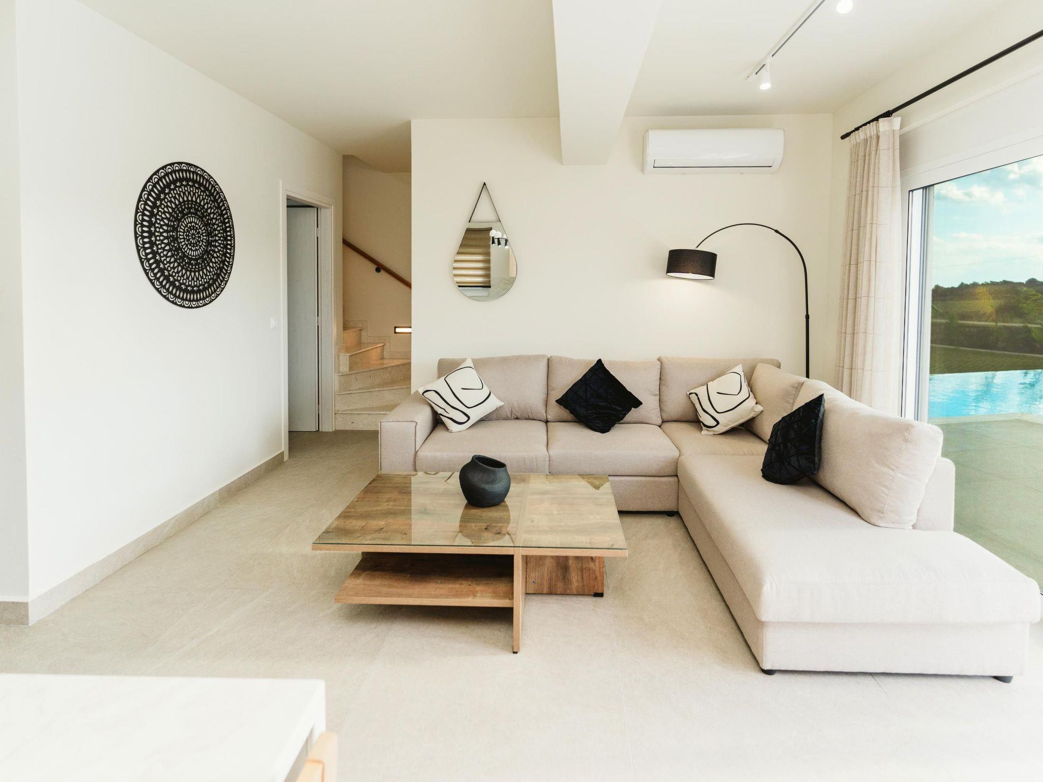 Welcome to Aiolia Villa, your serene oasis in Lachania, Rhodes. This stunning villa boasts three fully air-conditioned bedrooms, ensuring comfort in every corner. On the first floor, a cozy bedroom awaits with double bed and foul bathroom. In the second floor discover two more bedrooms, each furnished with a double bed and bathrooms, also with invigorating showers.There is also a bedroom for people with special needs.Prepare delicious meals in the fully equipped kitchen and gather in the spacious living room.Step outside to the peacful outdoor dining area, furnished with comfortable seating and a BBQ grill, enjoyable for meals with loved ones and spending your free time in table tennis. Dive into the private swimming pool for a refreshing dip or soak up the sun on the outdoor furniture, surrounded by the lush landscape of Rhodes. Experience luxury and relaxation at Aiolia Villa, your ultimate getaway destination.