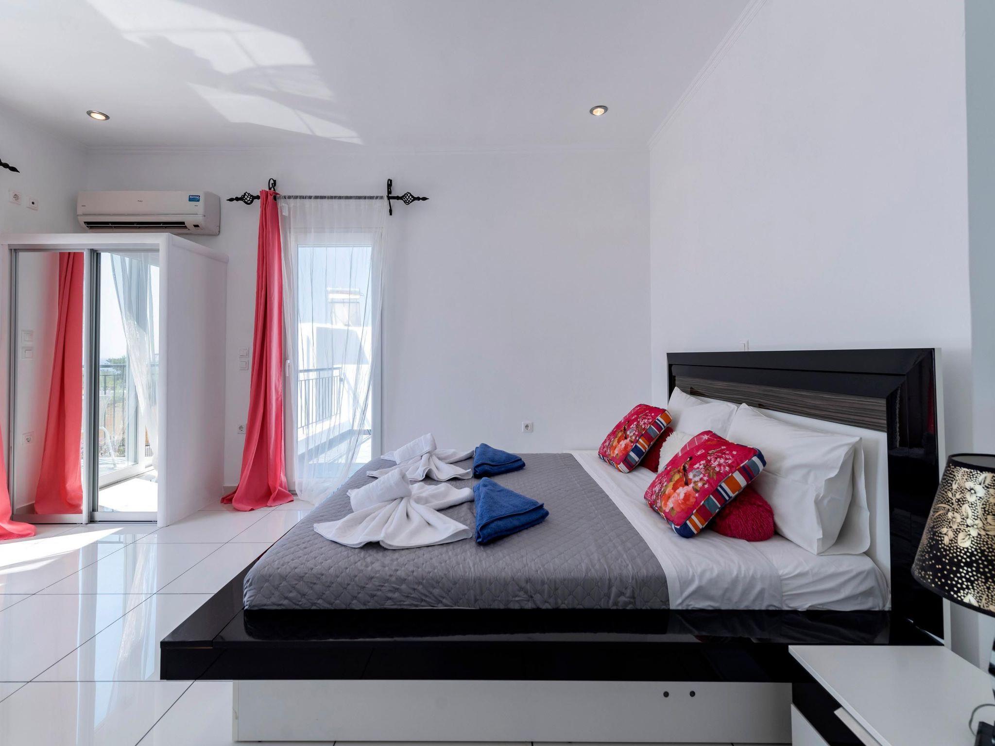 This incredible villa offers 4 fantastic bedrooms, each of which is fully airconditioned and offers an ensuite bathroom. Also, all bedrooms have a flat-screen TV with cable channels and a balcony. From the balconies, you can admire the beautiful emerald waters of Rhodes. Two of the bedrooms have double beds. One of the bedrooms offers a double bed and bunk beds and the other bedroom has twin beds. Also, there is a single sofa bed in the living room. Two of the bathrooms have a bathtub and the rest two have showers. There’s an open plan fully equipped kitchen, designed in sophisticated tones, suitable for any meal preparation. Guests will find a cozy living room and a seating area where you can enjoy your meal. There’s free Wi-Fi access throughout the property. Outdoors, there’s a fantastic private swimming pool with its sunbeds where you can refresh and enjoy the summer sun privately. This amazing villa also offers an outdoor bar, surrounded by gardening, where you can prepare drinks, put music and have fun with your friends or family. Also, there’s a furnished area and BBQ facilities to enjoy a delicious meal.