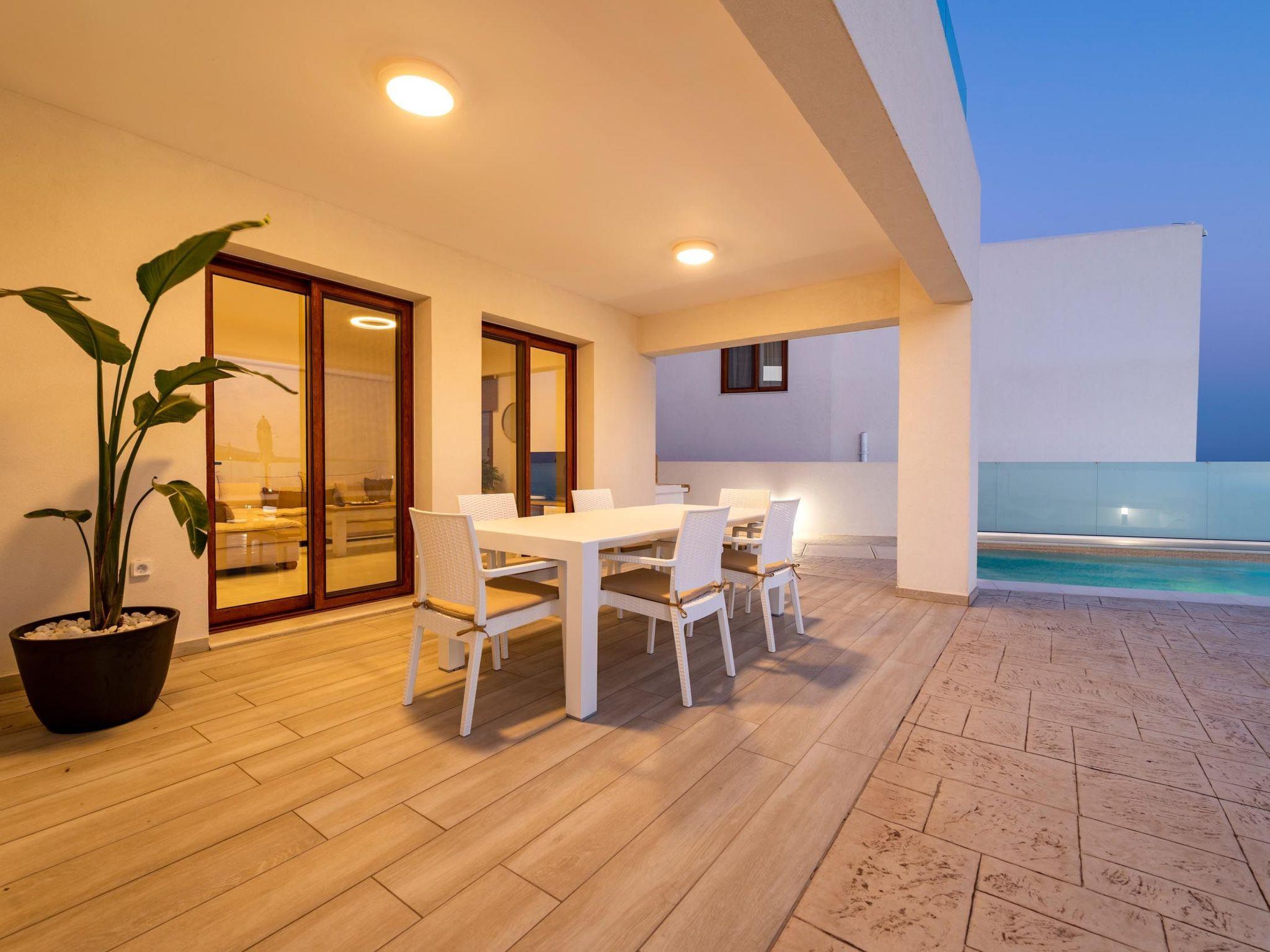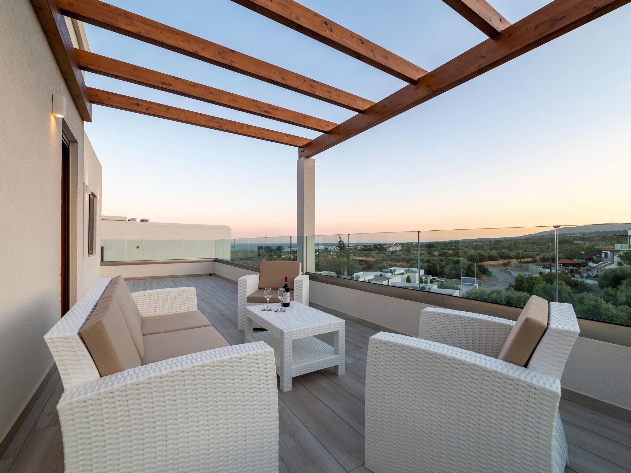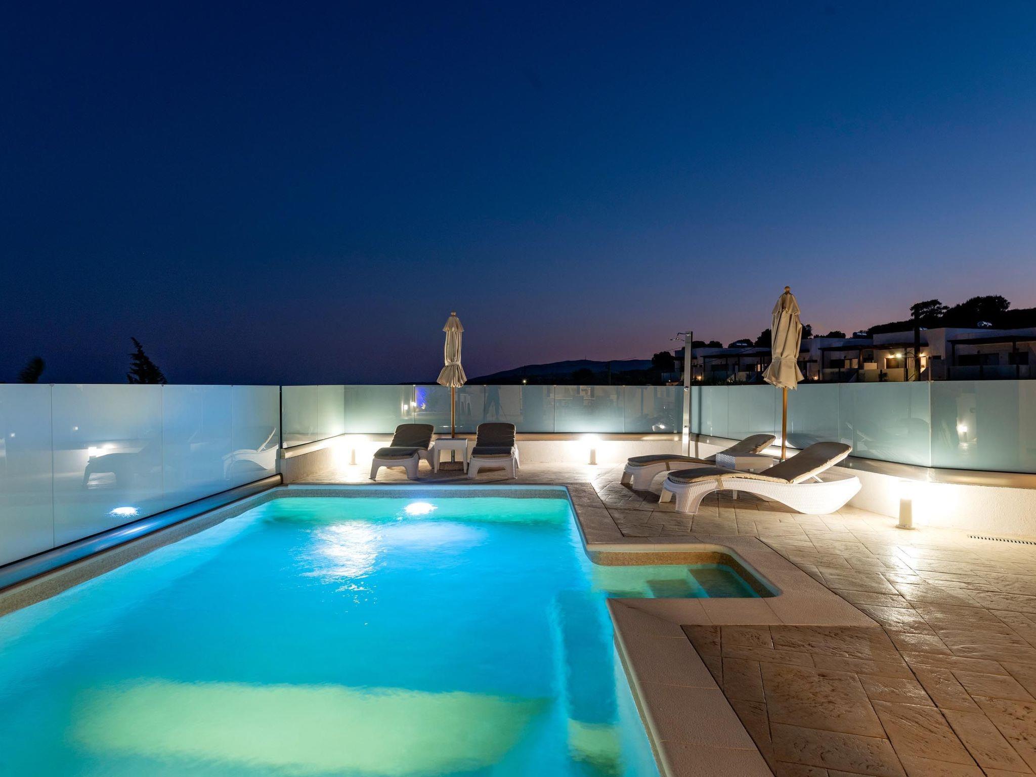 Eventide villa has 3 bedrooms, each of the modern bedrooms have a double bed. There are two bathrooms with shower; one of them is included to a bedroom. There’s an open plan kitchen, fully equipped with everything is needed for a meal preparation along with a sitting area. The living area is quite inviting with its warm colors and convenient furniture, along with its screen TV. Guests can enjoy free Wi-Fi access throughout the property. Outdoors, there’s the wonderful private swimming pool with its stylish sunbeds. There are BBQ facilities with a sitting area allowing you to enjoy a gathering with your loved ones.