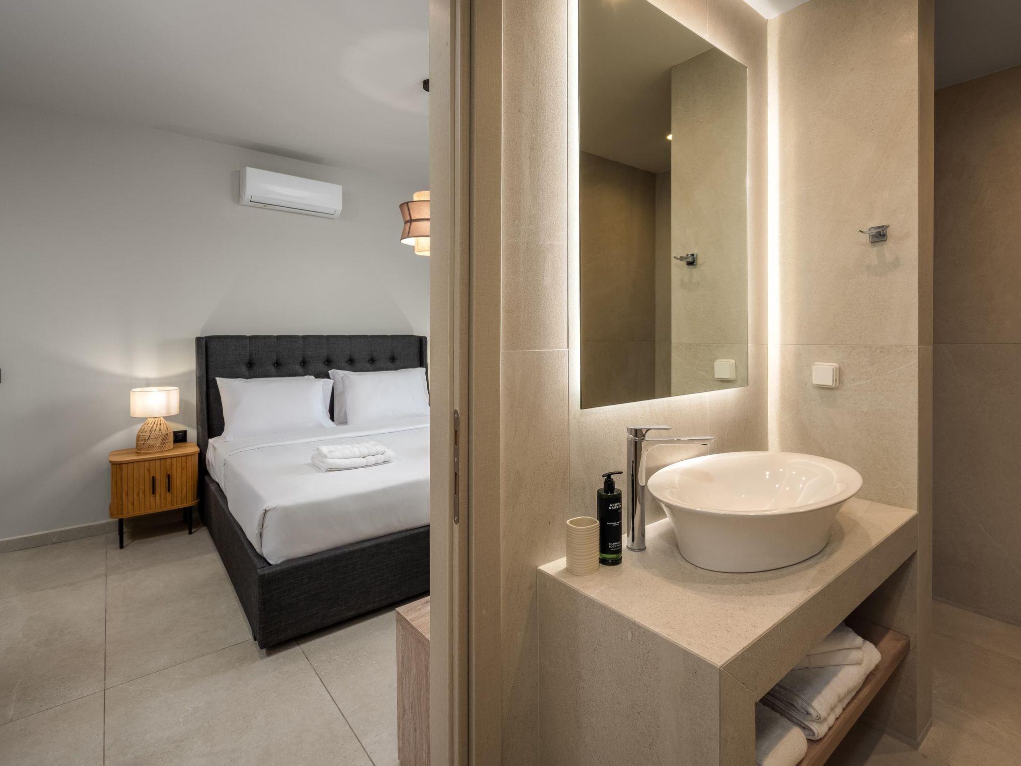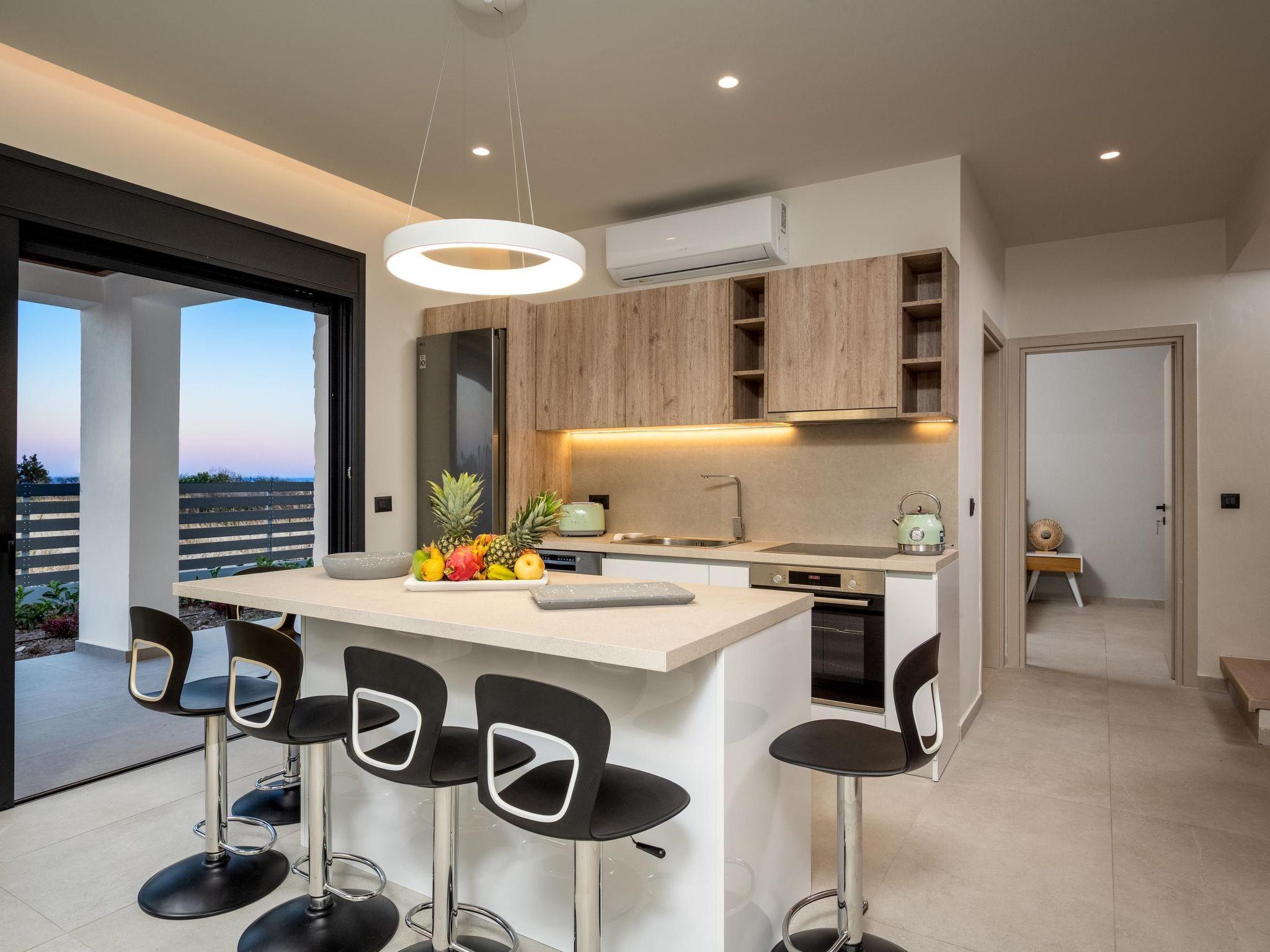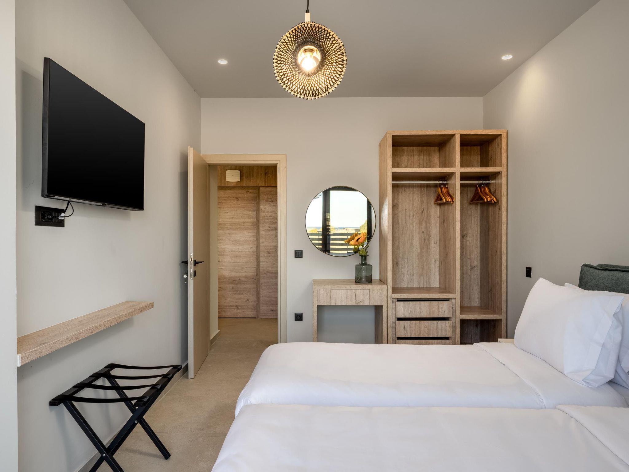 Terra Magna Alba Villa, located on the left side, comfortably accommodates up to six guests. The villa features three bedrooms—two on the first floor with double beds and ensuite bathrooms with showers, and one on the ground floor with two single beds that can be combined into a double. There is also a bathroom with a shower on the ground floor. The fully equipped kitchen makes meal preparation easy and convenient. Outside, guests can enjoy a private swimming pool, a gas BBQ, and a spacious outdoor dining area with comfortable furniture—perfect for relaxing or entertaining. Just a short walk from the sea, Terra Magna Alba Villa offers a peaceful and stylish retreat, ideal for families or groups seeking comfort, privacy, and convenience in beautiful Kiotari.