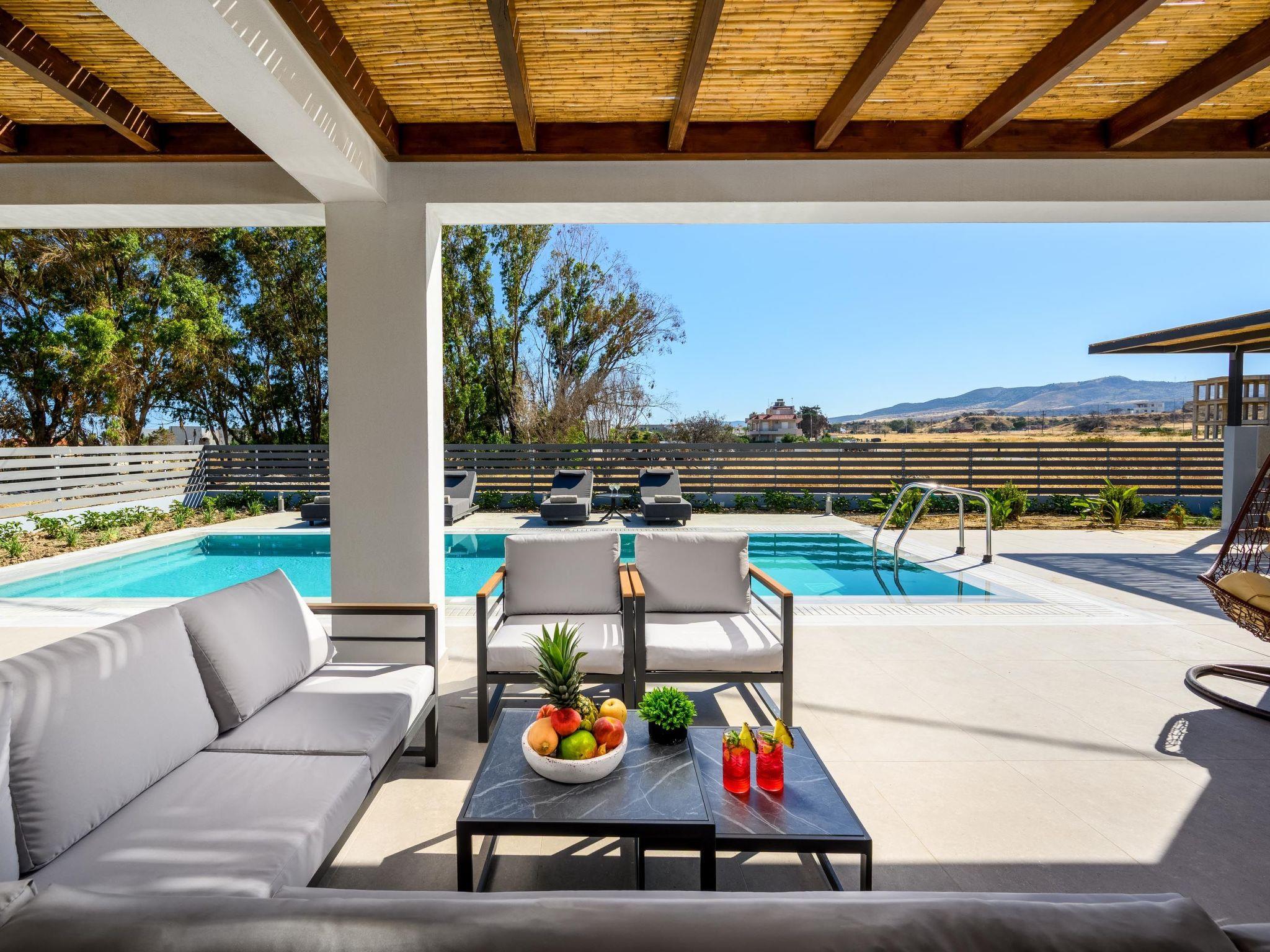 Terra Magna Villas are perfectly situated in Kiotari, just steps away (about 150 meters) from the beach, offering easy access to the sea. The nearest restaurants are within a 5-minute walk, while the closest supermarket is approximately 1.7 km away. A pharmacy is also nearby, around 2 km from the villas. Lindos Village, known for its ancient Acropolis and charming streets, is about 12 km away. Rhodes International Airport (RHO) is roughly 50 km from Kiotari, and the vibrant center of Rhodes town, including the UNESCO-listed Old Town, is around 55 km away, ideal for day trips.