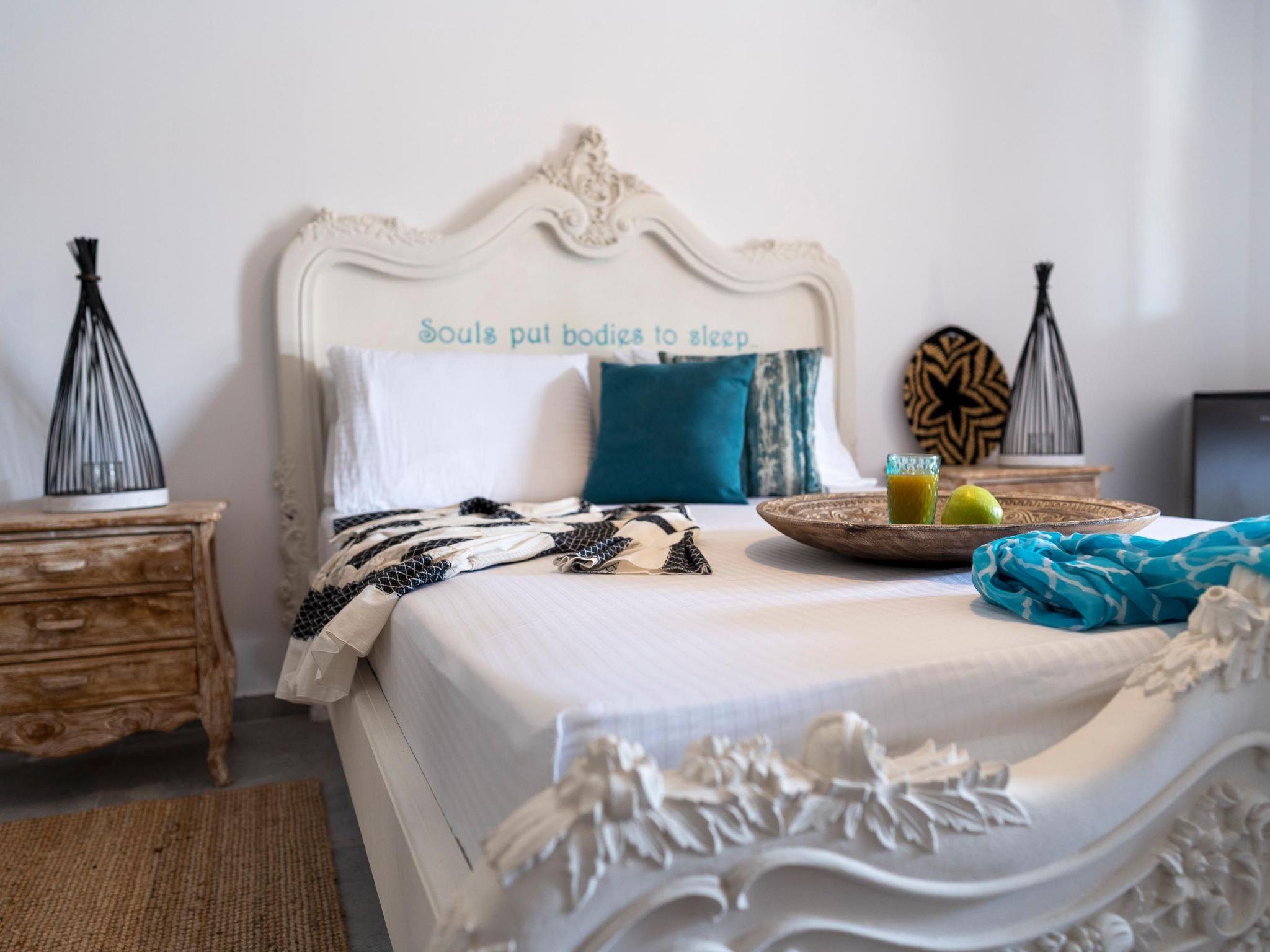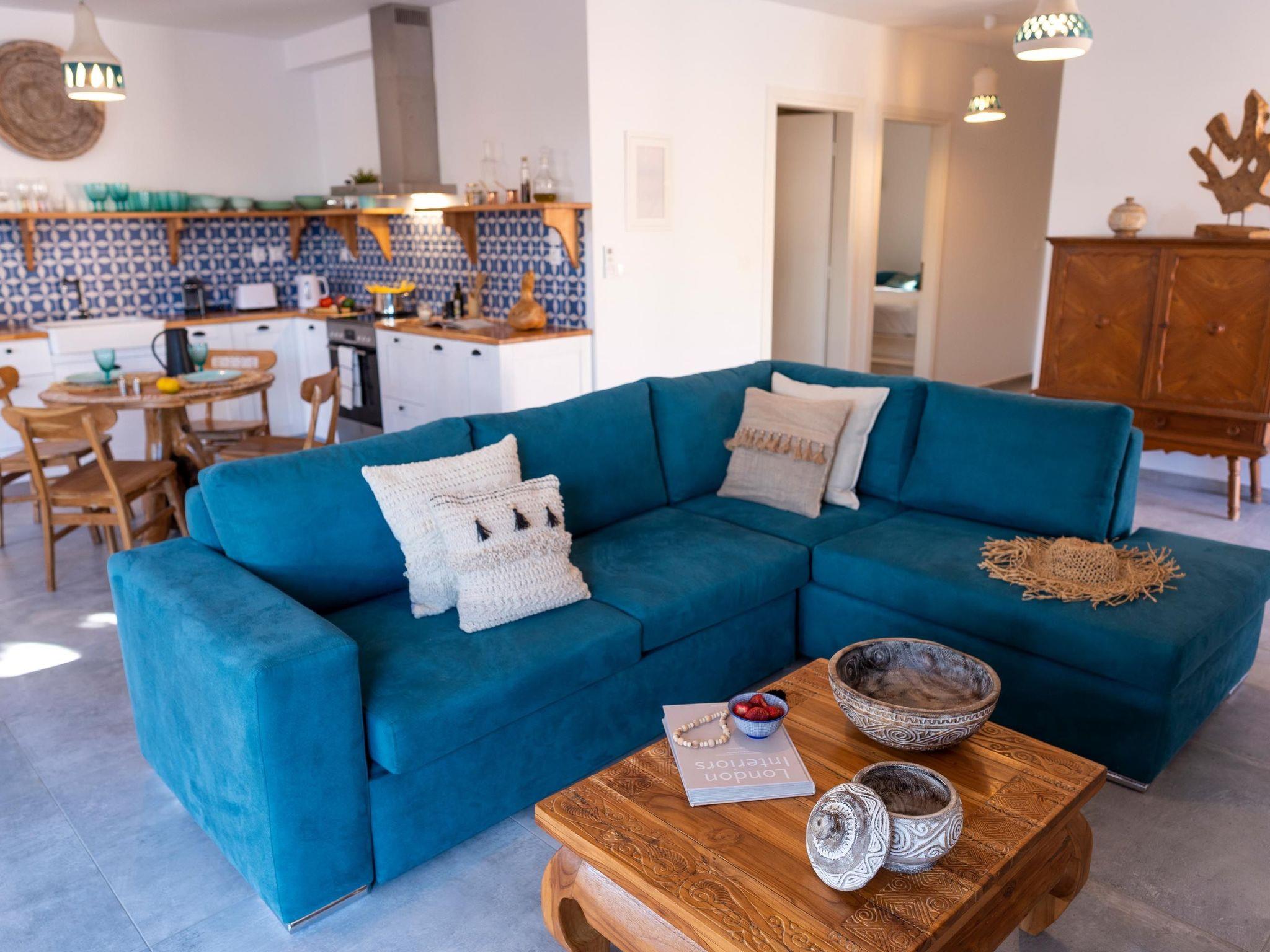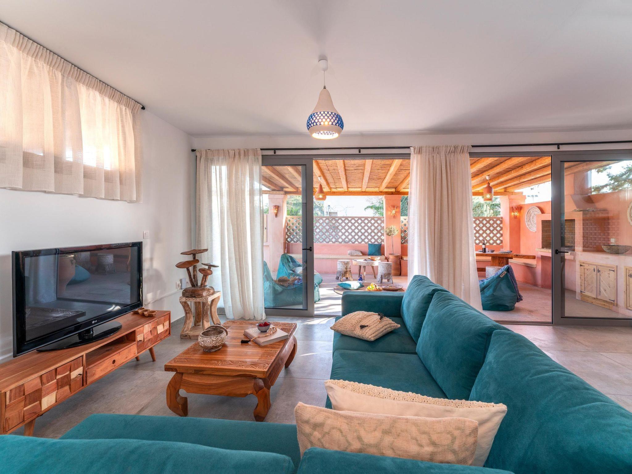 Onar Villa has 3 fully air-conditioned bedrooms with double beds in warm tones and a unique bohemian design. One of the bedrooms is outdoors and has its own door and bathroom. All bedrooms have ensuite bathrooms with showers. Also, there is a double sofa bed in the living room. The kitchen is fully equipped to accommodate your culinary habits, as well as your experiments with local products and recipes. The beautiful living room is inviting with incredible furniture and plenty and a dining area. There is a flat-screen with satellite channels in each bedroom and free Wi-Fi throughout the property. All areas are carefully decorated in vibrant colors and textures. There are smart TVs in each bedroom and free Wi-Fi throughout the property