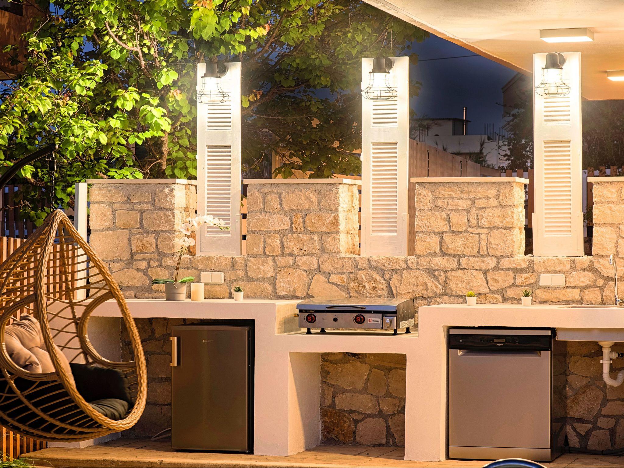 Just few meters away from the famous sandy beach of Kavros, Allas Villa creates the perfect holiday retreat for families or friends. Flooded with light, the 180-sq.m of living space has a bright contemporary feel. Outdoors, guests can dine on a charming garden, unwind in the private heated pool, having BBQ at Villas charming BBQ corner.Indoors, guests can lounge in the spacious living rooms or cook in the fully equipped kitchens. Enjoy the timeless Cretan setting and refined accommodation with each room mirroring your relaxing nest.In an ideal location, just two minutes from Kavros sandy beach and few minutes’ drive Kournas Lake. Both Chania city and Rethymnon Town are in very close proximity.In Allas Villa our aim is to offer you memorable vacations and the best possible accommodation.Allas Villa can accommodate up to 14 guests in two separate fully equipped apartments, easily accessible by disabled people .