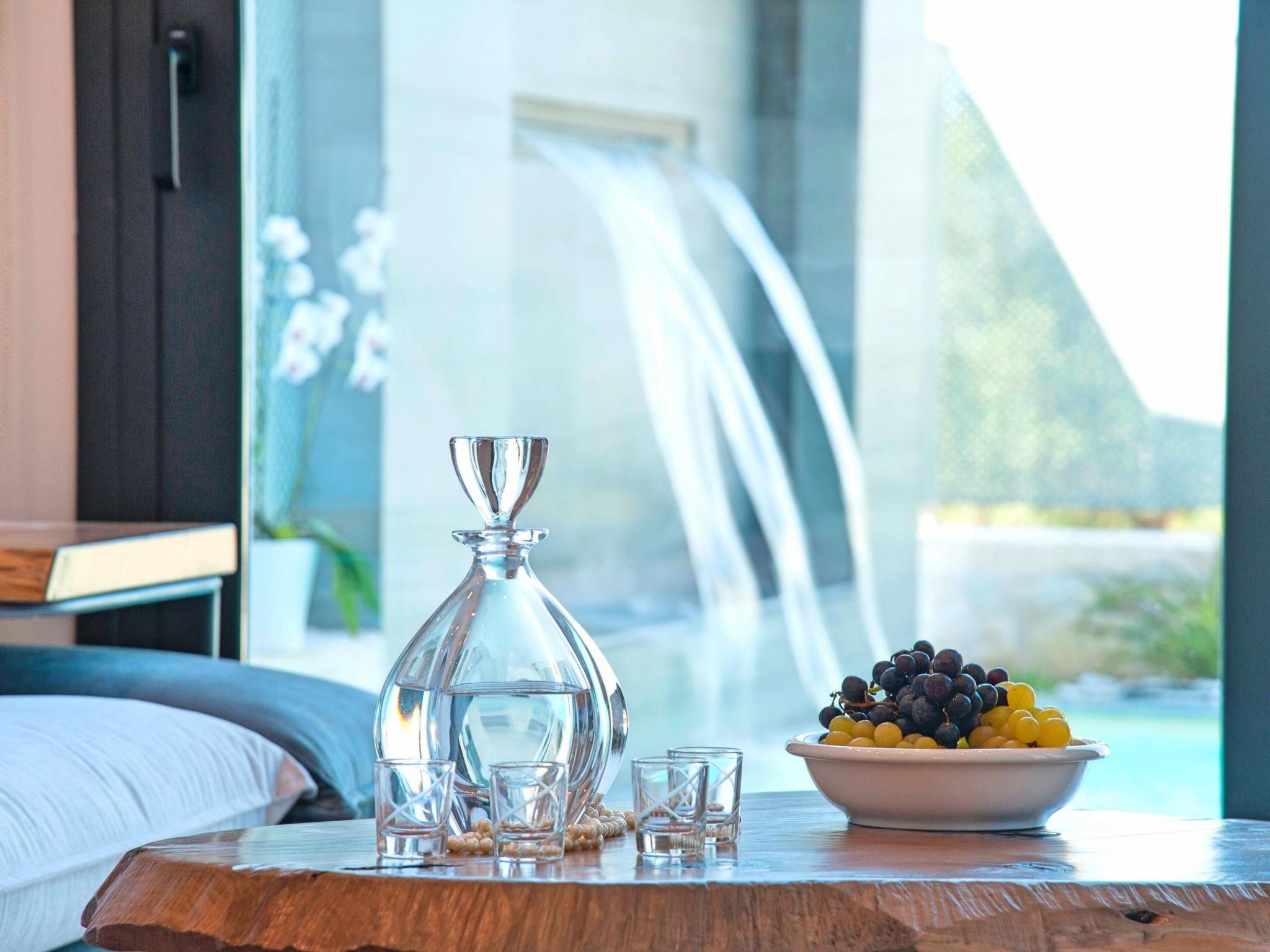 The Perla Villa, with its private pool, is distinguished by its ample space and its graceful ambience. It offers a stylishly designed master bedroom with a comfortable queen-size bed, a comfy second bedroom with twin push-together beds and an elegantly adorned bathroom with a rejuvenating shower. This chic Villa features a living room area with corner sofa, a separate cozy dining room with a fine bathroom with shower and a fully equipped kitchen. Outdoors, a spacious terrace with BBQ and dining area overlooks the Jacuzzi, the private pool and the relaxing sun beds area. Perla Bianca Villa Facilities Ground floor 50sqm * A living room with large Corner Sofa (can accommodate up to two quests) and direct access to the terrace and the pool area * A fully equipped Kitchen with an oven, microwave dishwasher, a fridge, a coffee maker, tea facilities, a toaster and a kettle. * A large bathroom with shower. Upper Floor 50sqm * A bedroom with a queen-size double bed. * A second bedroom with two twin push together beds. * A bathroom with shower. * TV at the living room. * Air-conditioning in all areas. * Free WiFi internet access. * Outdoor dining set (table with chairs). * Washing machine. * Iron and ironing board. * Safe deposit box. * Hair dryer. * Linen and towels. * Toiletries. * Swimming pool towels. * Baby cot. * High chair for children. * Towels and bed linen changed and cleaned every 3 or 4 days. * Private parking area. * Direct access to the swimming pool area. * Private Swimming pool 20sqm * Jacuzzi (for 4-5 quests) or if the jacuzzi is not working is ideal for children. * Sun lounge area with sun beds under a pergola. * BBQ with dining area next to the swimming pool. * Plot 300sqm