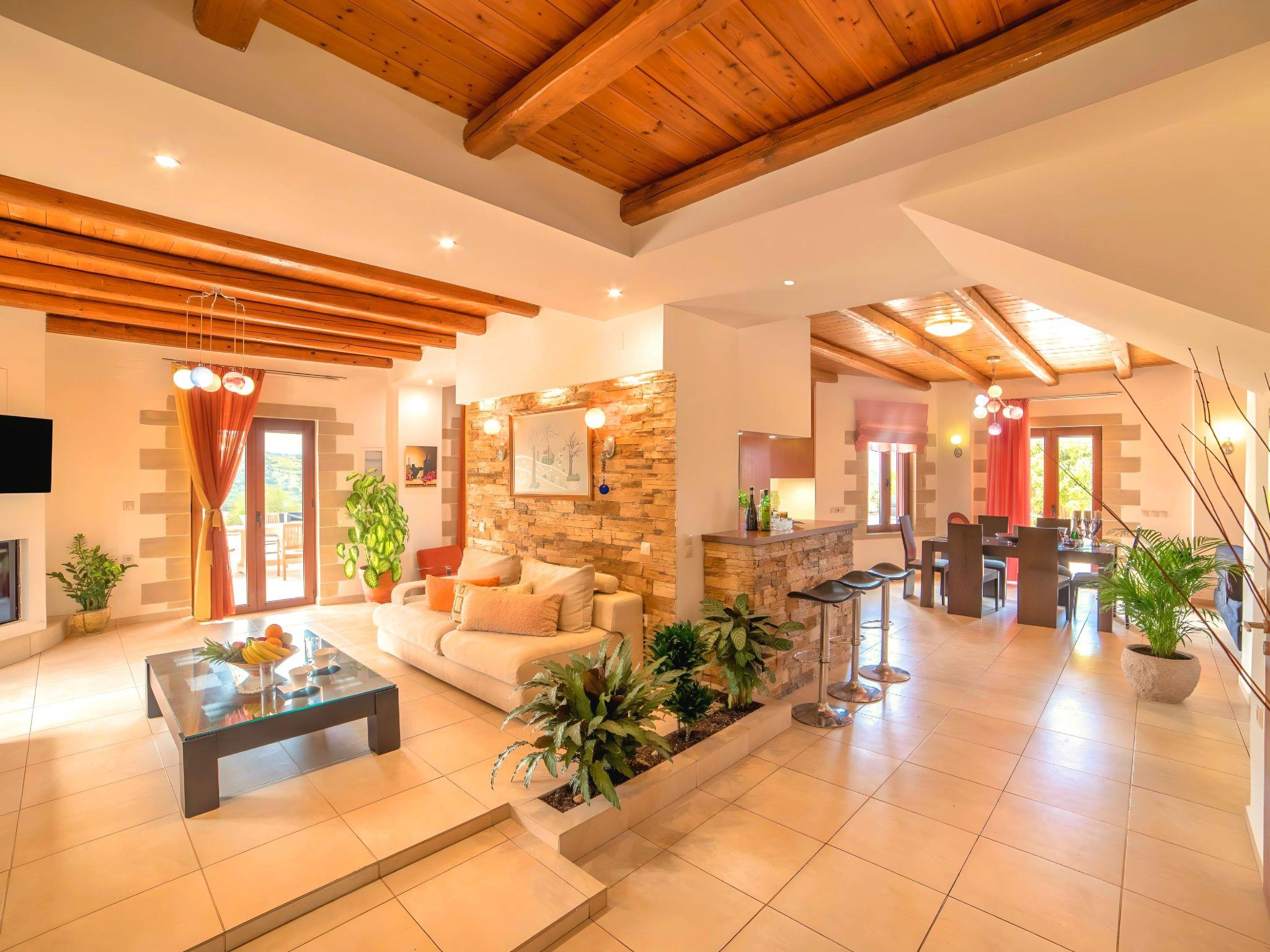 Built amphitheatrically with direct sea view, this elegant Villa evokes the island’s Mediterranean spirit and cosmopolitan charm in its elegant environs while ensuring a holiday beyond comparison. Surrender to the temptations of refinement at one of the most enchanting Cretan Villas and take in the splendid panoramic views to the emerald Cretan Sea. Find your peace and quiet and unwind in a haven of bliss and tranquility.