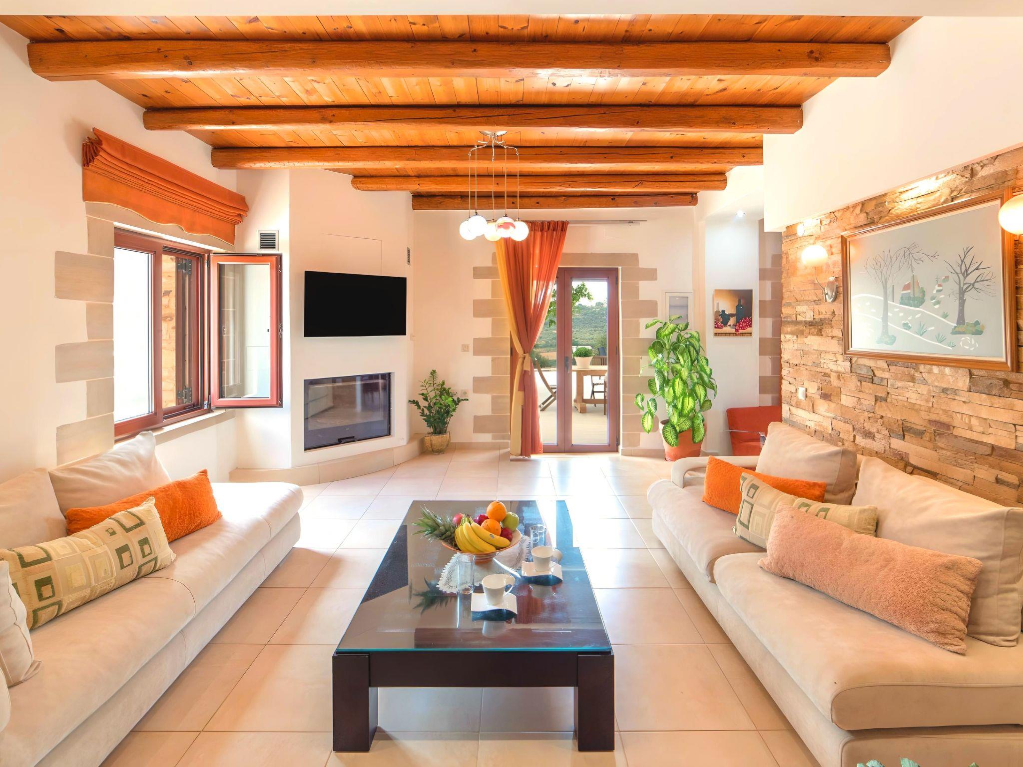 Cretan Dream Villa can accommodate up to 14 quests ( 12 at the bedrooms (two out of twelve in folding beds in two bedrooms) and two more at the sofas of the living room).