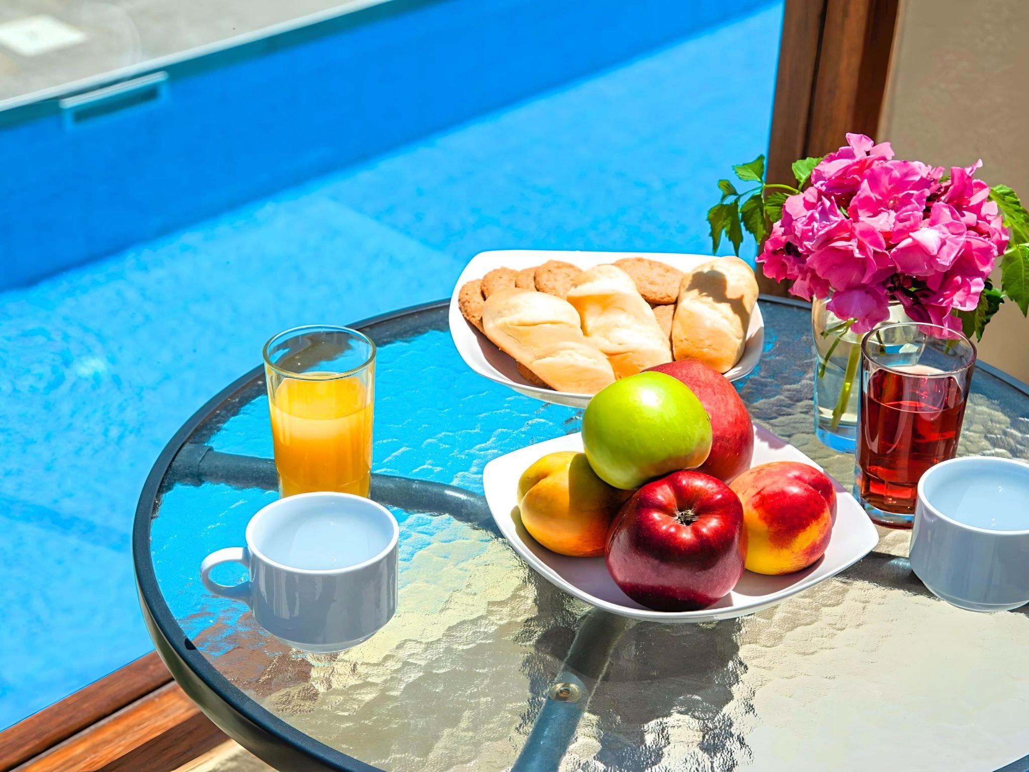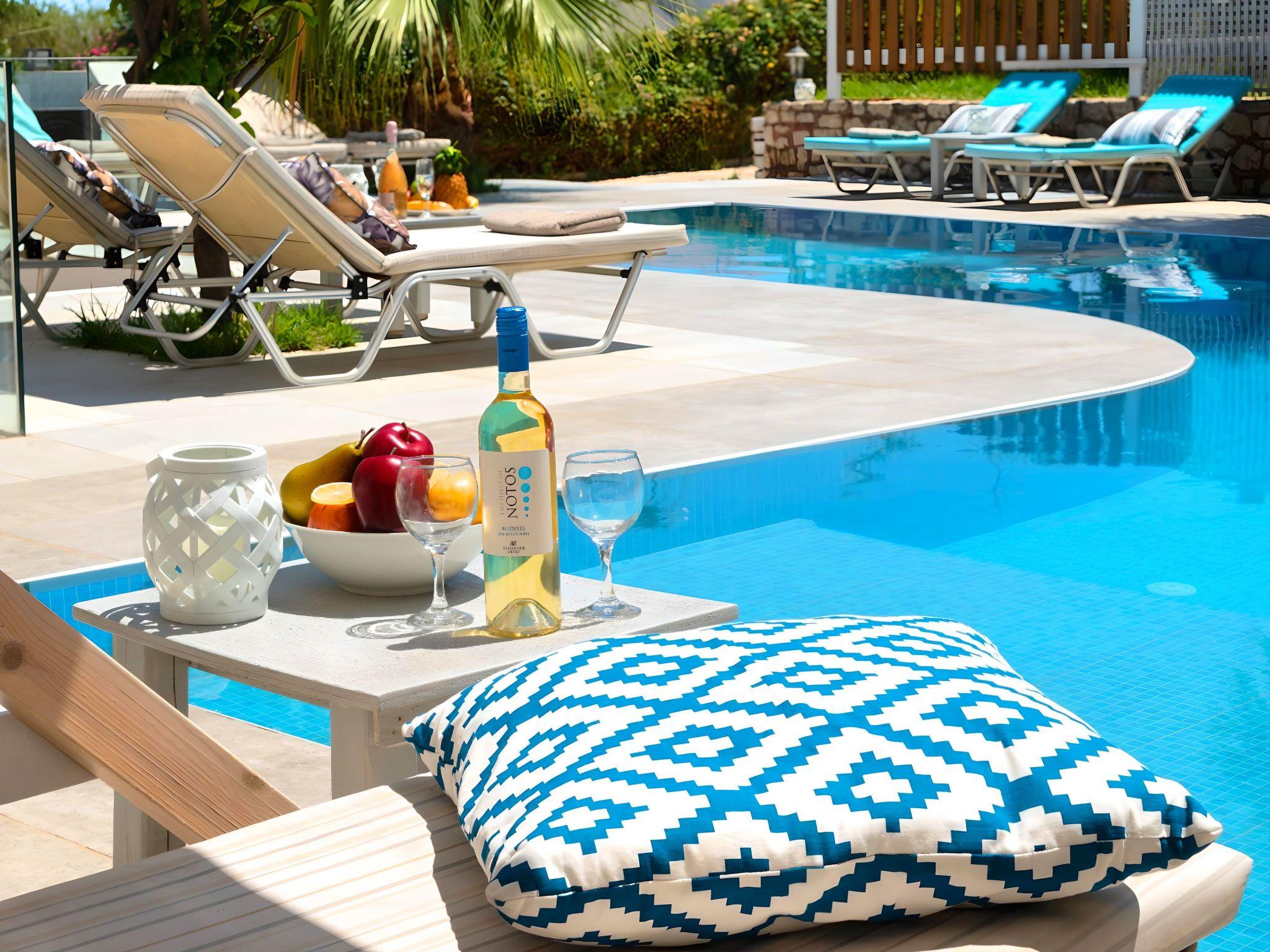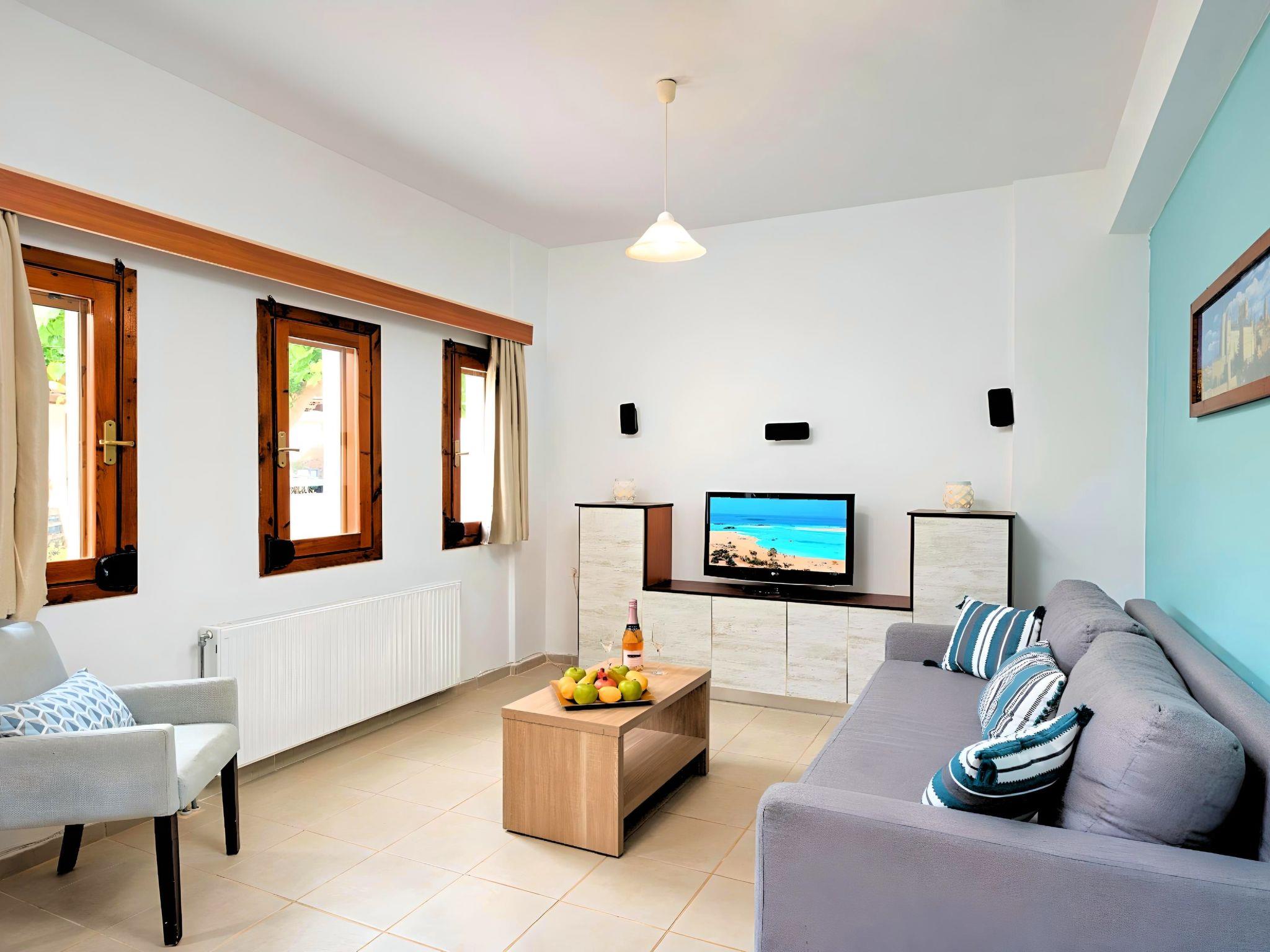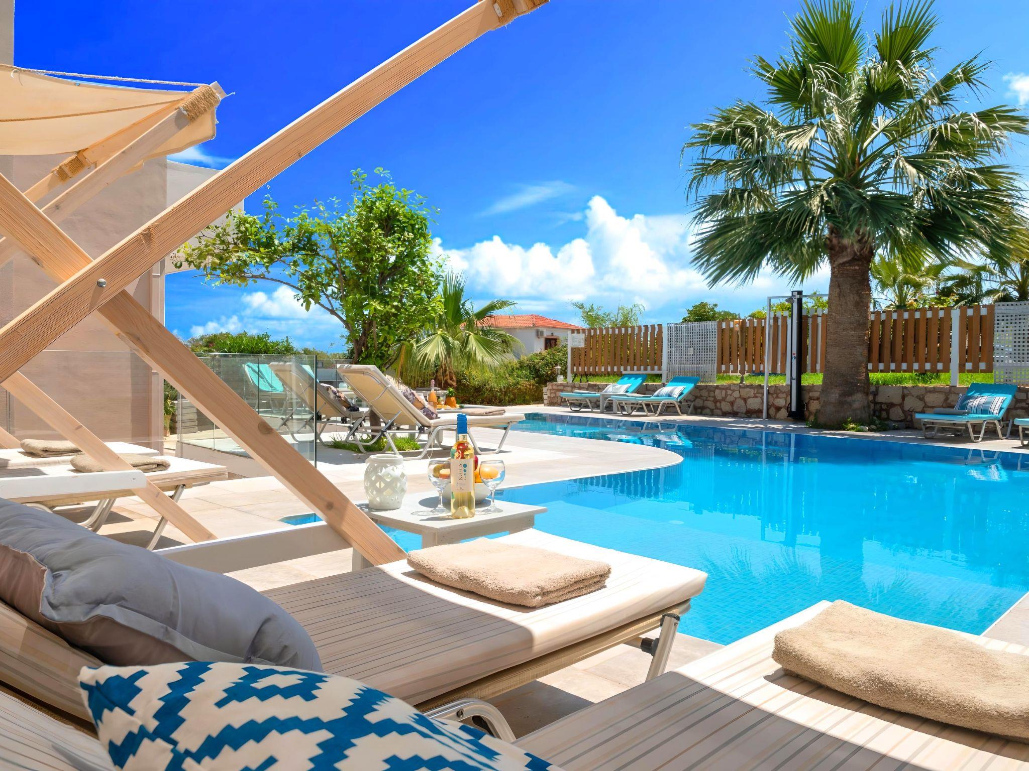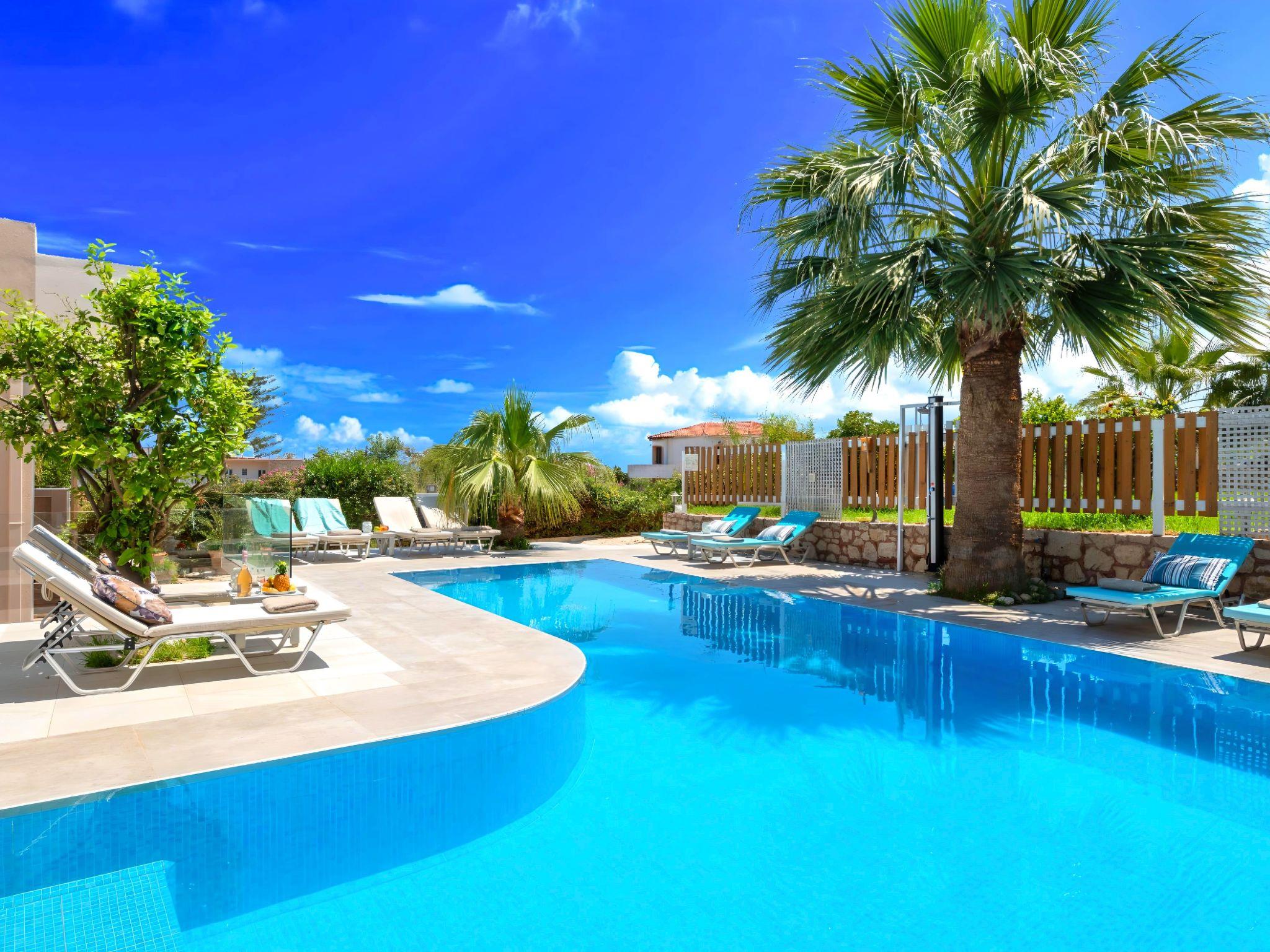 Just a 5-minute walk from the famous sandy Kavros beach, Island Suites Villa, Crete is one building complex of 7 apartments, offering a combination of beautiful architecture, all earth washed color walls, open spaces and beautiful gardens. This relaxing place exudes an aura of serenity, inviting guests to succumb to the pleasures of tranquility. Amidst the open sky and the azure sea, nature meets simplicity & refinement, enveloping visitors in an ambiance of peace, calm and exclusivity. This is the perfect place to get away from it all. With overwhelming views, lush gardens, with a refreshing pool and a great choice of island exploring, Island Suites Villa is a slice of Greek heaven. Here, hospitality comes as a standard, and “getting away from it all” takes on a whole new meaning. Large families and parties of friends will be delighted by our seven separate suites, which will stand out as the most suitable type of accommodation for them. Great views to the White Mountains or to our swimming pool are inspiring and invigorating, offering supreme hospitality and incomparable comfort. Island Suites Villa is fully furnished in a comfortable style and equipped with all the conveniences one could have hoped for. Dear customers: relax and enjoy your stay at our suites and take in the aromas of the intoxicating sea breeze, the blossoming herbs and the festivity of nature surrounding you. Island Suites Villa is ideal for big families, a group of families or a group of friends. Enjoy your vacation with your parents or with the rest of your family members while at the same time preserving your privacy just as you would at your own home. Villa is built in a two-floor building. The outdoor pool is heated and can reach 6 to 8 degrees more than the 24 h average air temperature with maximum value of 27°C