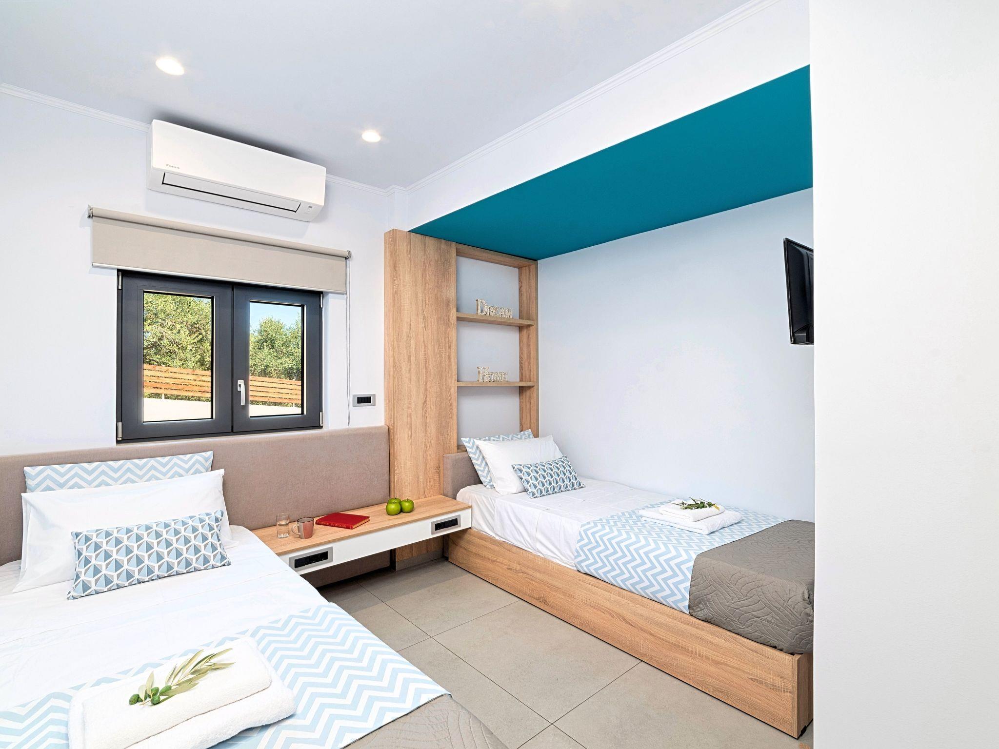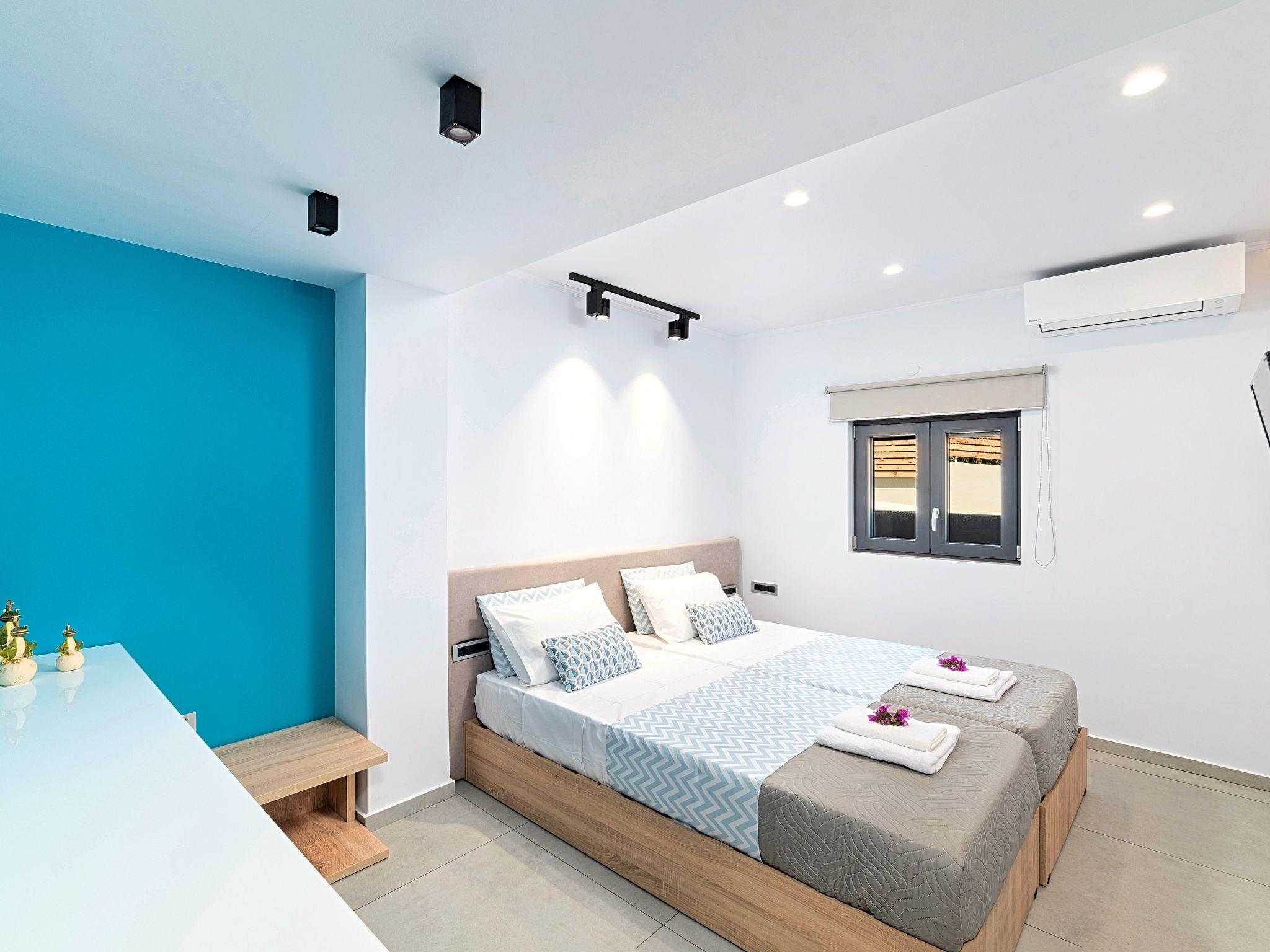 If you truly want to feel the positive healing powers of nature all around you, to sense and relish the beauty of the sea, then your path inevitably leads to Stavento Luxury Suite.Every detail of Stavento Luxury Suite is designed to offer you beautiful moments with your family or friends while enjoying all modern comforts, the timeless wonders of Cretan nature, as well as the enchanting view of the Cretan Sea from your terrace.Decorated using natural materials, the beautiful constructions inspired by nature and the sea will replenish the senses and soothe the spirit.This suite boasts a comfortable living area, fully equipped kitchen three bedrooms and two individual toilets with shower.You have direct access to the swimming pool so you can easily enjoy the sun or a refreshing swim.Furthermore, in the morning you have the opportunity to see the enchanting sunrise and feel the caress of the Meltemi wind, experiences you will cherish forever.Stavento Luxury Suite is a pleasant surprise for those in search of peace and quiet in Crete’s charming natural paradise. It’s based on the road to Kournas Traditional Village, just 2km from the largest sandy beach of Crete, minutes’ drive from Kournas lake.