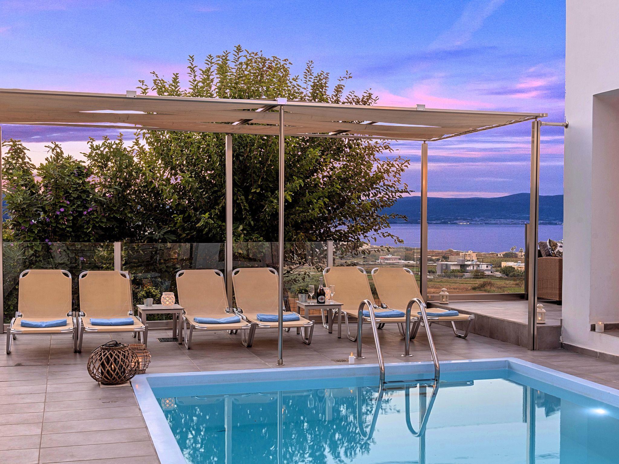 Welcome If the beauty was a location, it would be the island of Crete. If the relaxation and rejuvenation were accommodation, it would be the Cretan Sunset Villa. Built on one of the most green and quiet spots of Crete island, about 40km from Chania and 18km from Rethymnon. Cretan Sunset Villa is the ideal base for discovering all the elements that make Crete a top destination. With scenic views to the Cretan Sea and the White Mountains. It is just a few minutes' walk from the most famous long sandy beach of Georgioupolis-Episkopi with the crystal-clear waters and Kournas lake. The experience of staying at Cretan Sunset Villa consists of a special game that captures the senses. Here you are not to enjoy TV or browsing your laptop but the breathless sea view over the scenic landscape. The luxury here is not in technology and the fancy materials, but the reactivation of the senses that have been diminished by the modern rhythms of life. Here, the meaning lies in the singing of the birds and the heady aromas of the herbs that grow in every corner of the island. Facilities & Services Cretan Sunset Villa is the ideal choice for those who seek moments of absolute relaxation and tranquility. Start your day enjoying a rich breakfast made with the finest Cretan ingredients before heading out to some of the beaches of the island. In the afternoons, relax next to the swimming pool, enjoying your drink or a snack and gazing at the endless blue of the Aegean. We firmly believe that the greatest satisfaction lies in the simplest things. We invite you to live the experience of staying at Cretan Sunset Villa and we are sure that when it is completed, you will agree with us.