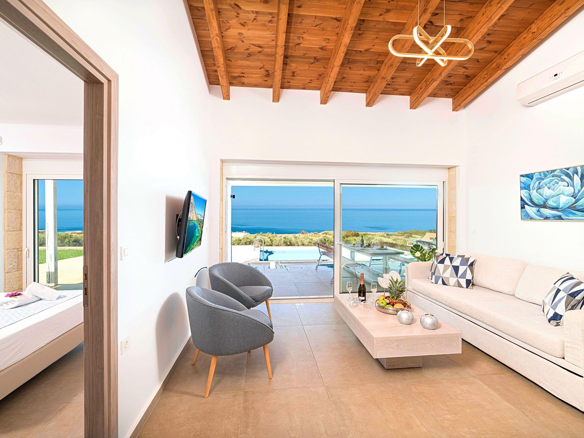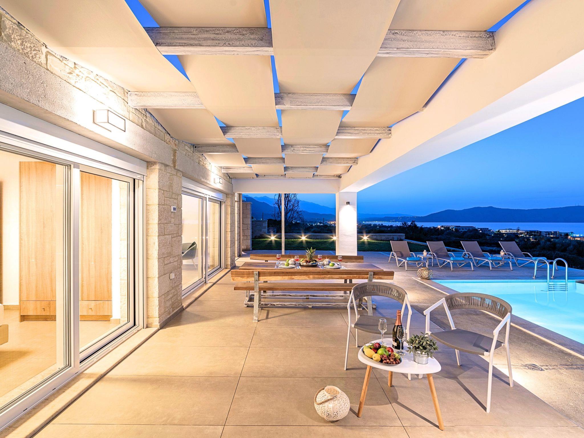 Vista Mare Stylish Elegant Villas.Built at the slopes of a hill, Vista Mare Villas offer the perfect summer getaway, all with infinity pools and breathtaking sea views.A delightful landscape of natural beauty, tranquil atmosphere, away from the crowds.Expect the impossible, a dreamy holiday in a secluded faraway location on Crete island, a pure summer bliss!Our Villas offers supreme comfort combined with style and unique Cretan hospitality.Complete with comfortable furniture, modern kitchen facilities, fully air-conditioned, with sea view oriented towards the Aegean Sea and Cretan renowned sunset. The brand-new Vista Mare Villas complex, consists of 4 elegant designed stone buildings, with private pool each (The outdoor pool is heated and can reach 6 to 8 degrees more that the 24 h average air temperature with maximum value of 29°C), extended in a typical area of Crete’s mild landscape.Providing a unique Seaside location for our guests, surrounded by olive groves, combines the perfect blend of the natural environment, the traditional architecture with modern construction.Vista Mare Villas are ideal for families, a group of families or a group of friends.Enjoy your vacations with your parents or with the rest of your family members while at the same time preserving your privacy just like at your own home.Short descriptionOther : Non-smoking houseShort description 1Number of kitchens : 1SurroundingNearby sports facilities : Climbing, Diving, Mountain climbing, Tennis, Water skiingGarden and outdoorGarden facilities : GrillOn-site leisure facilities : Outdoor swimming pool exclusive use, Swimming pool
