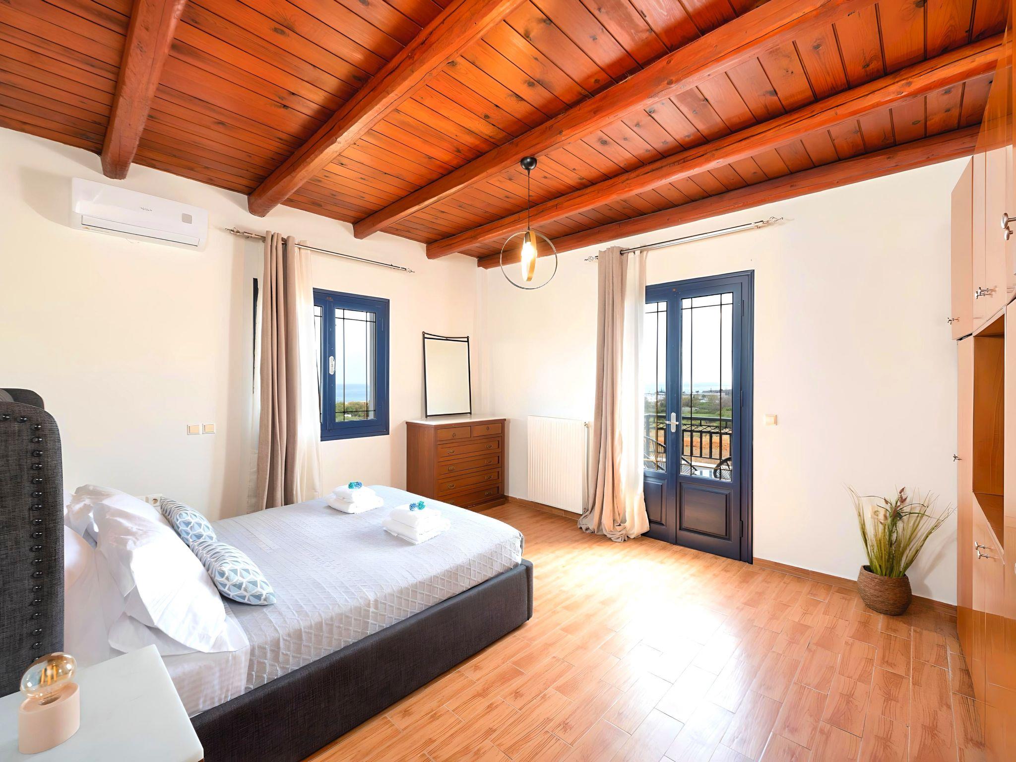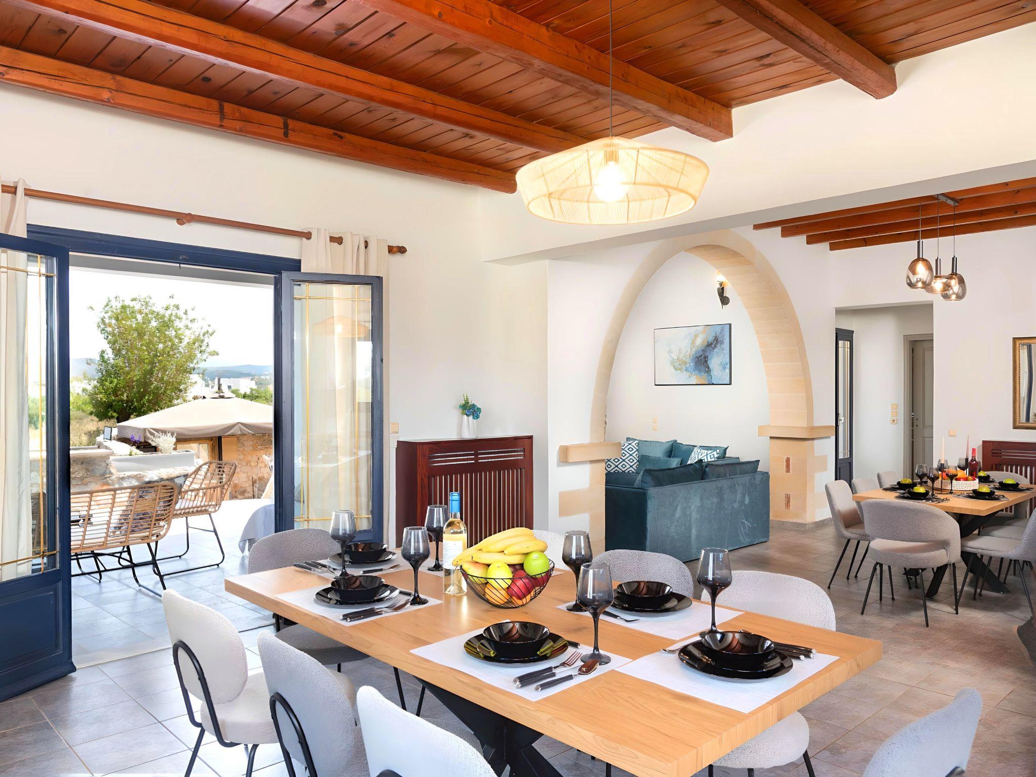 The villa's exterior is just as impressive as its interior, boasting a private pool that invites you to take soothing swims under the clear blue sky. The surrounding terrace and balcony areas provide the perfect spots for lounging, offering an unparalleled opportunity to relax in the serene ambiance of the Mediterranean. The villa also features a private garden, where you can immerse yourself in the natural beauty of Crete and enjoy leisurely moments in a peaceful setting.