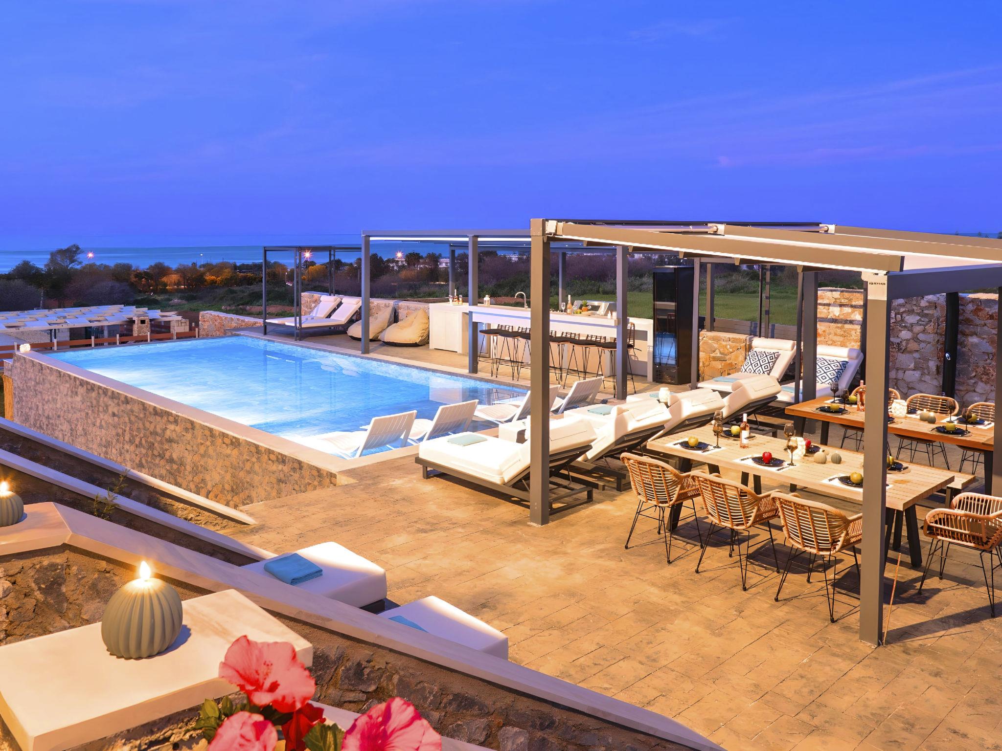 Welcome to the enchanting Grey Grand Villa, perfectly nestled above the captivating Georgioupolis beach in Crete, where breathtaking sea views await to mesmerize you. This exquisite retreat is tailor-made for those seeking a blend of luxury, comfort, and the splendid Mediterranean lifestyle. With accommodations for up to 12 guests across five elegant bedrooms, this villa is the ideal choice for family holidays or memorable getaways with friends, offering a unique escape into tranquility and elegance.