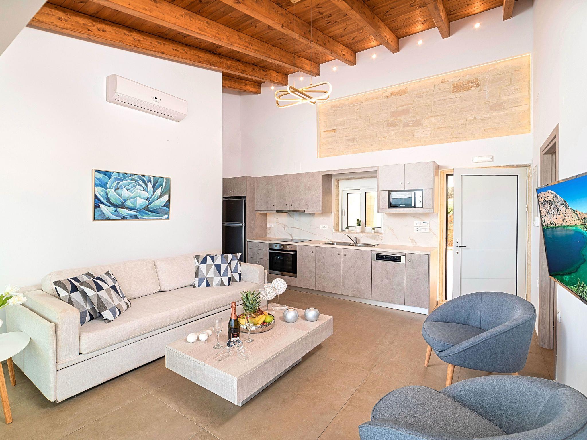 Built at the slopes of a hill, Vista Mare Villas offer the perfect summer getaway, all with infinity pools and breathtaking sea views. A delightful landscape of natural beauty, tranquil atmosphere, away from the crowds. Expect the impossible, a dreamy holiday in a secluded faraway location on Crete island, a pure summer bliss!Our Villas offers supreme comfort combined with style and unique Cretan hospitality. Complete with comfortable furniture, modern kitchen facilities, fully air-conditioned, with sea view oriented towards the Aegean Sea and Cretan renowned sunset. The brand-new Vista Mare Villas complex, consists of 2 elegant designed stone buildings, with private pool each, extended in a typical area of Crete’s mild landscape. Providing a unique Seaside location for our guests, surrounded by olive groves, combines the perfect blend of the natural environment, the traditional architecture with modern construction.Vista Mare Villas are ideal for families, a group of families or a group of friends. Enjoy your vacations with your parents or with the rest of your family members while at the same time preserving your privacy just like at your own home.Short descriptionOther : Non-smoking houseShort description 1Number of kitchens : 2SurroundingNearby sports facilities : Climbing, Diving, Golf course, Mountain climbing, TennisRental Facilities : car rentalGarden and outdoorGarden facilities : Garden furniture provided, Grill, Summer houseOn-site leisure facilities : Outdoor swimming pool exclusive use, Swimming pool