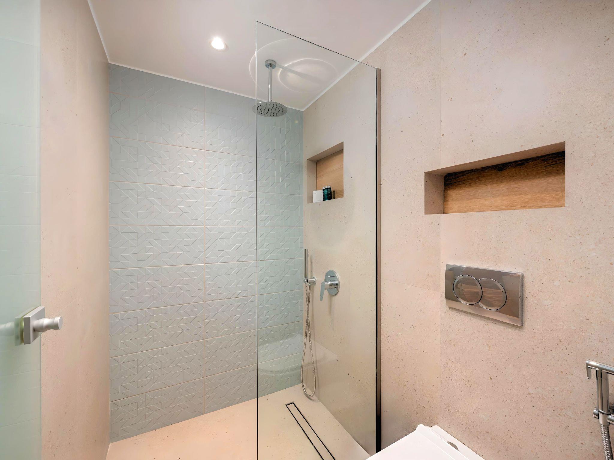 The villa features two bedrooms, each with a comfortable queen-size bed and an en suite bathroom with a rejuvenating shower.