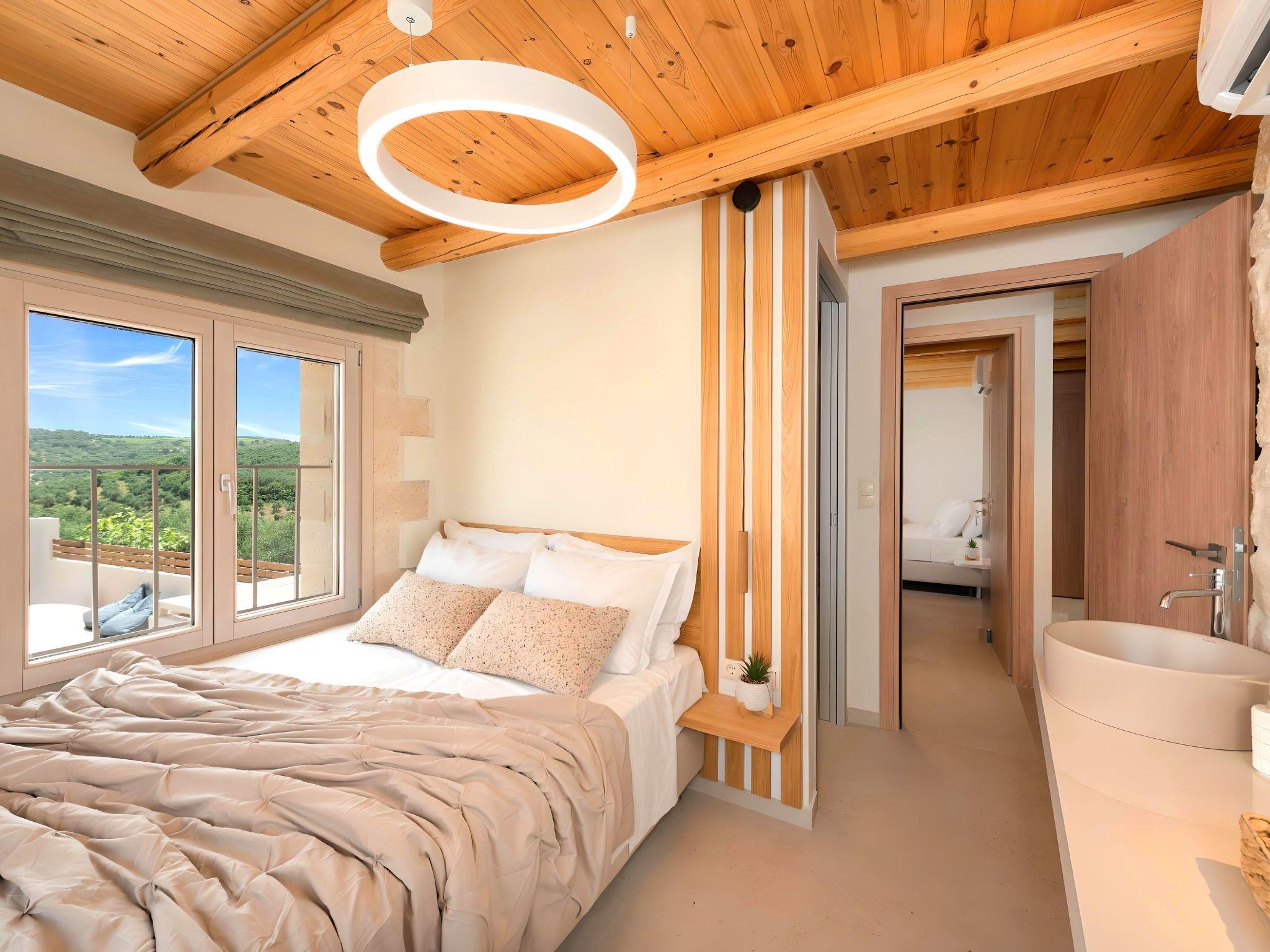 This autonomous two-storey stone house is designed to be your private retreat on Crete Island. The villa spans two floors, connected by an interior staircase.