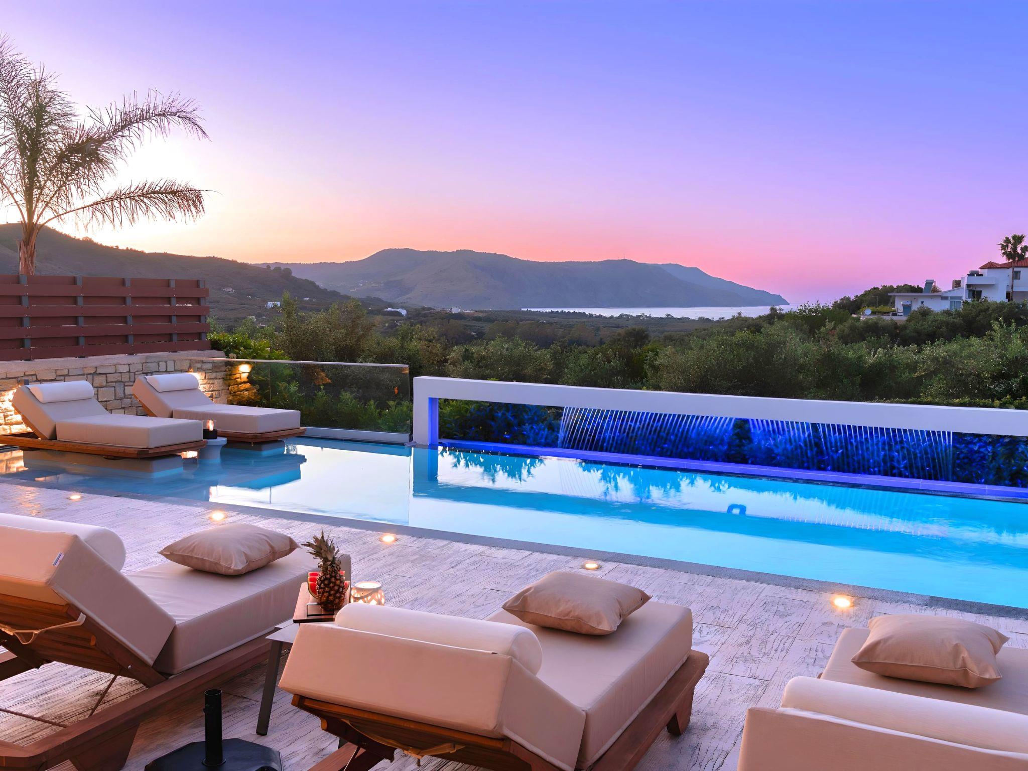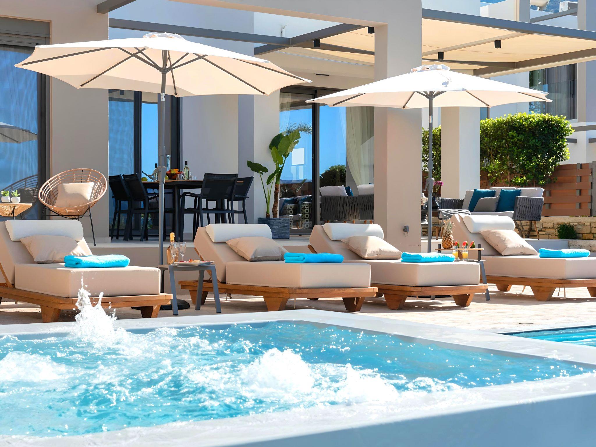 Nuzzled in a gorgeous setting, above the sun kissed beach of Georgioupolis in Crete, Minoas Villas captures the essence of chic and luxurious living only few minutes away from the shimmering sea.Built amphitheatrically with direct sea views, this exceptional built Villas, member of the HotelPraxis Group evokes the island’s Cretan spirit and cosmopolitan charm in its elegant environs while ensuring a holiday beyond comparison.Minoas Villas offers guests the opportunity to truly immerse themselves in the Cretan experience.Within easy reach from the island’s famous Kournas Lake and the popular town of Georgioupolis our villas combine a contemporary, modern style with supreme comfort.Built in 2019 our villas offer guests an exclusive, relaxing experience all within the idyllic setting of Greece’s most hospitable island.Our philosophy is simple: to offer first-rate hospitality coupled with unrivalled privacy.All Villas are fully equipped, offering our quests the required convenience in order to enjoy unforgettable relaxing vacations throughout spring, summer and autumn.Minoas Villas is a complex of three villas, ideal for big families, a group of families or a group of friends.Enjoy your vacations with your parents or with the rest of your family members while at the same time preserving your privacy just like at your own home.Our Villas are built one next to the other.The outdoor pool is heated and can reach 6 to 8 degrees more that the 24 h average air temperature with maximum value of 29°CShort descriptionOther : Non-smoking houseShort description 1Number of kitchens : 2SurroundingNearby sports facilities : Basketball, Bike tours, Canoeing, Climbing, Diving, Fishing, Mountain climbing, Mountainbiking, Paragliding, Riding possibilities, Sailing, Surfing, Tennis, Water skiingRental Facilities : Bicycle rental service, Boat rental service, car rental