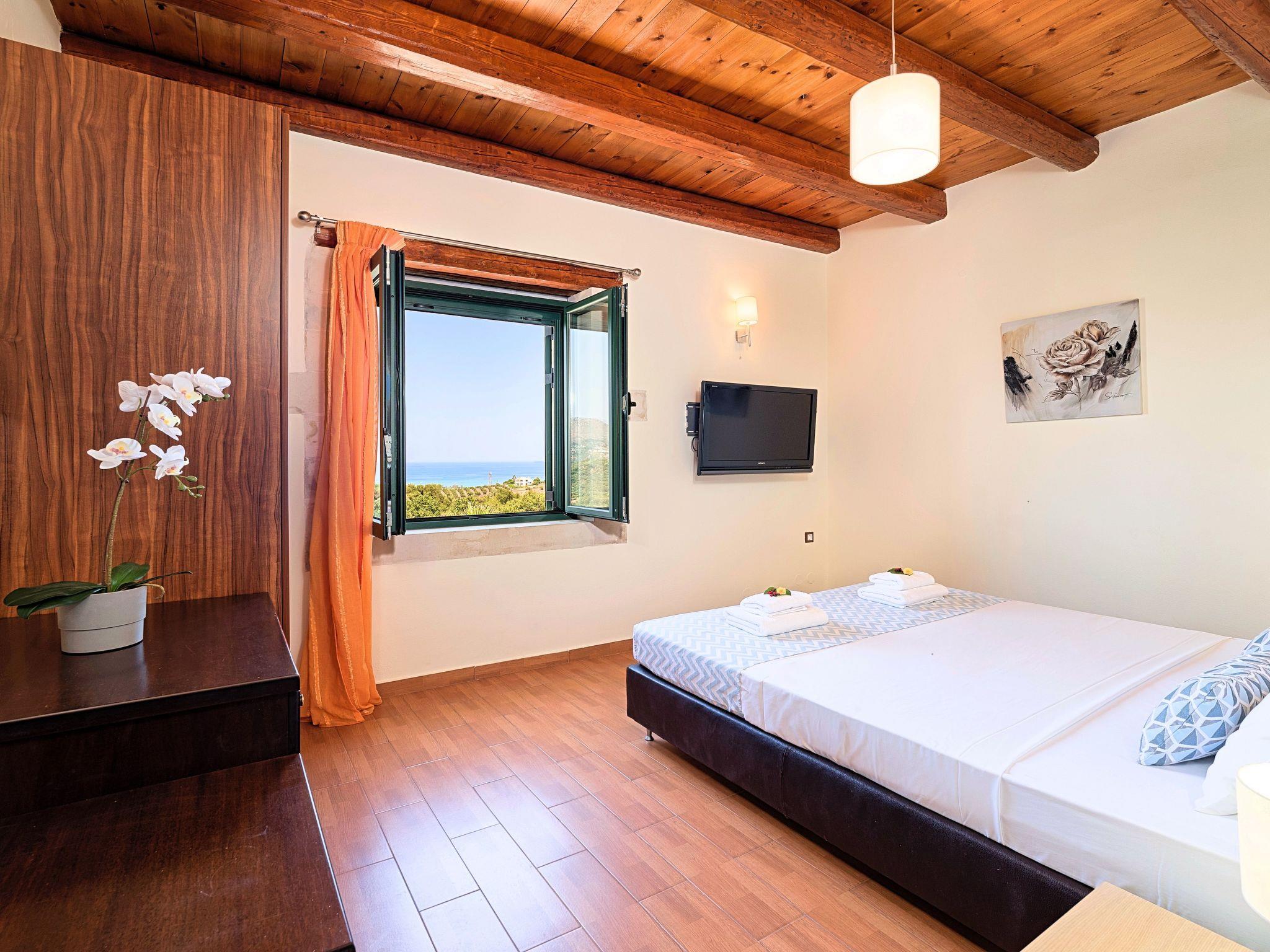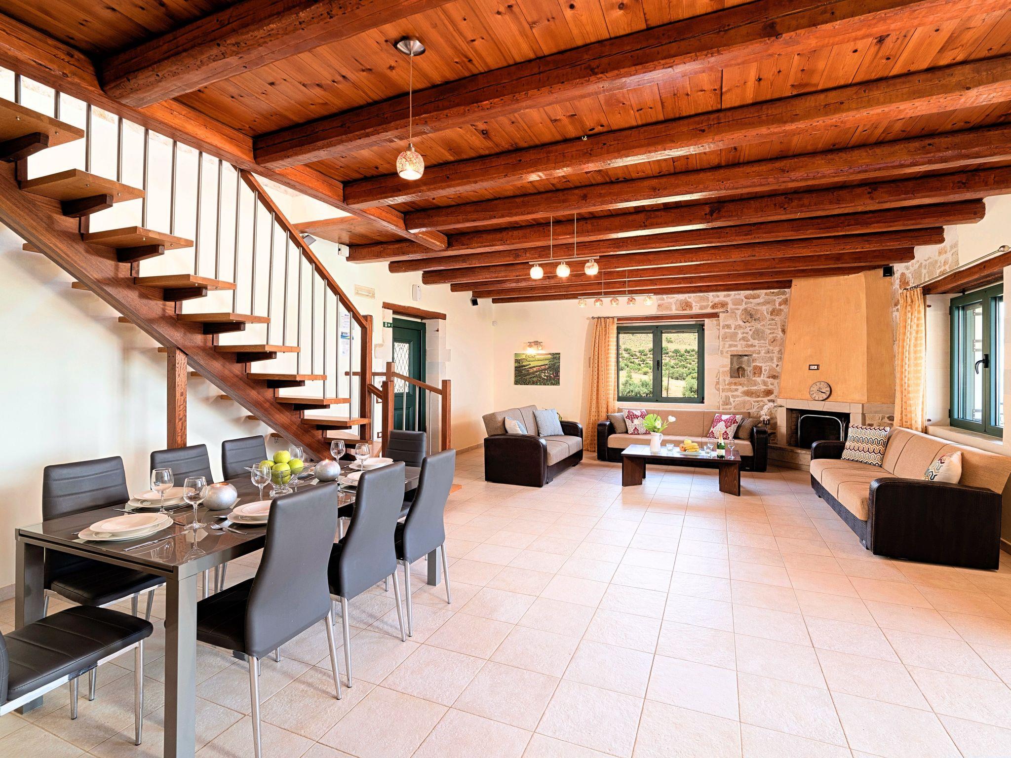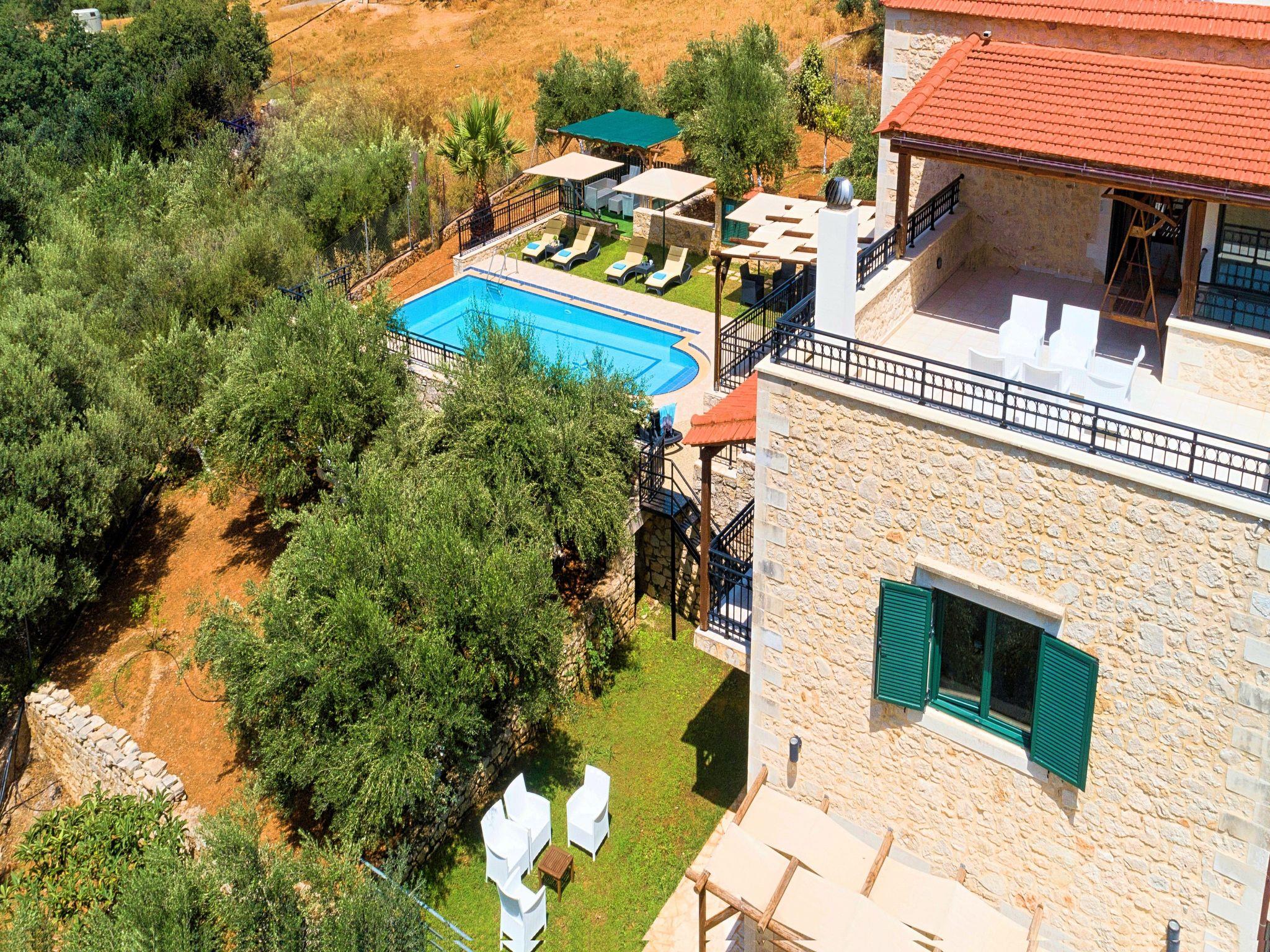 Villa Stelios is an exquisite and exceptionally well-built custom-made house able to accommodate every stage of life, all year round. The property is nestled over a hill before the village of Mathes overlooking Georgioupolis and the famous sandy beach (just 2km away).It forms a spectacular entertaining venue both inside and outside, with extended grounds featuring the Cretan landscaping with blooming bushes, olive groves and creeping plants. The interior is spacious and very bright while maintaining a cozy feel.Enjoy a magnificent pool area with splendid views of the Aegean Sea and the skyline of Crete.The villa affords privacy blended with sumptuous comfort set amidst a rural setting.Villa Stelios can accommodate up to 12 guests (10 in the bedrooms) and 2 more at the sofas in living room.The villa offers 5 Bedrooms, 3 Bathrooms, 220sqm Living Area, 6.000sqm plot surface, private pool 60sqm