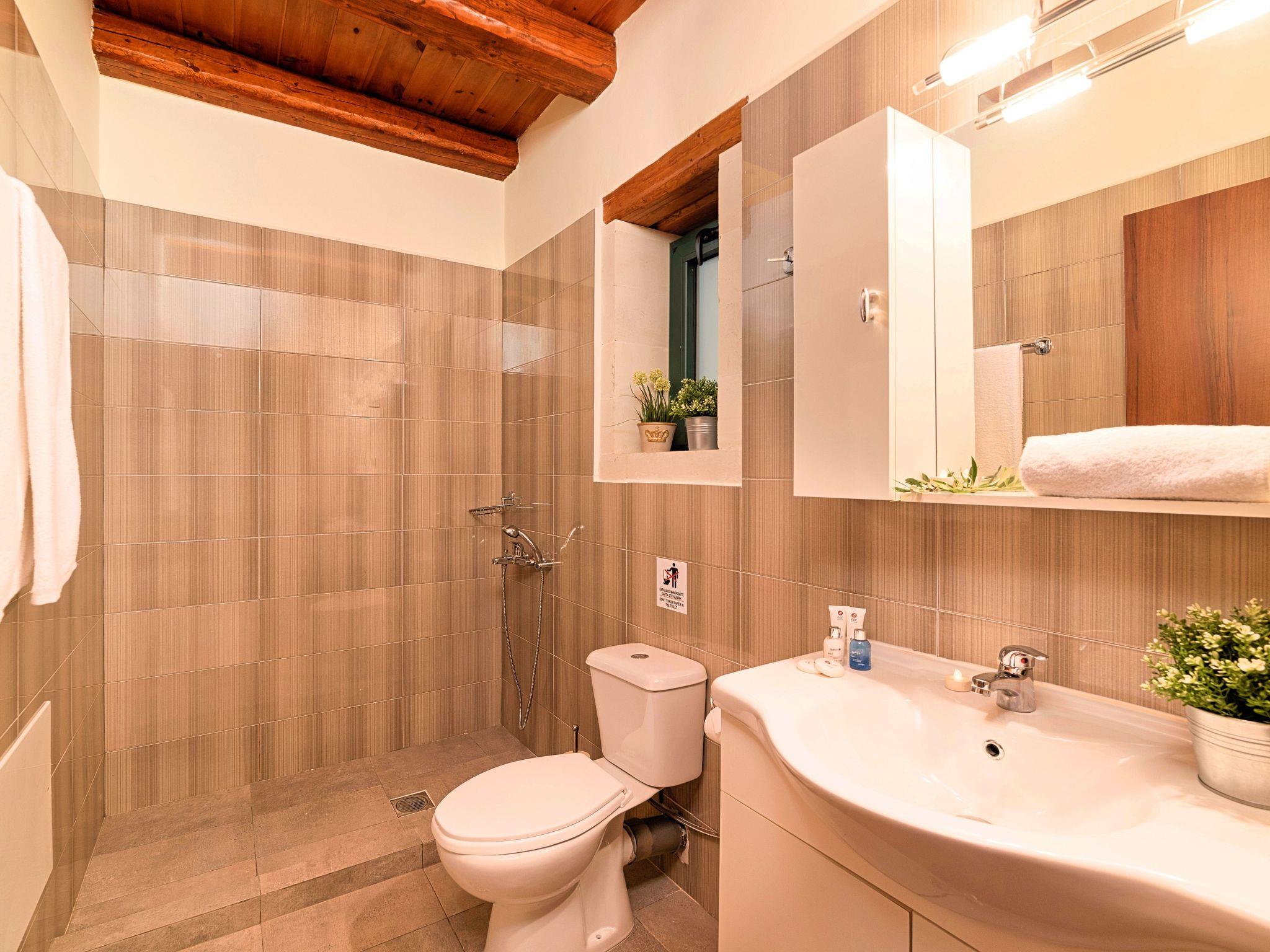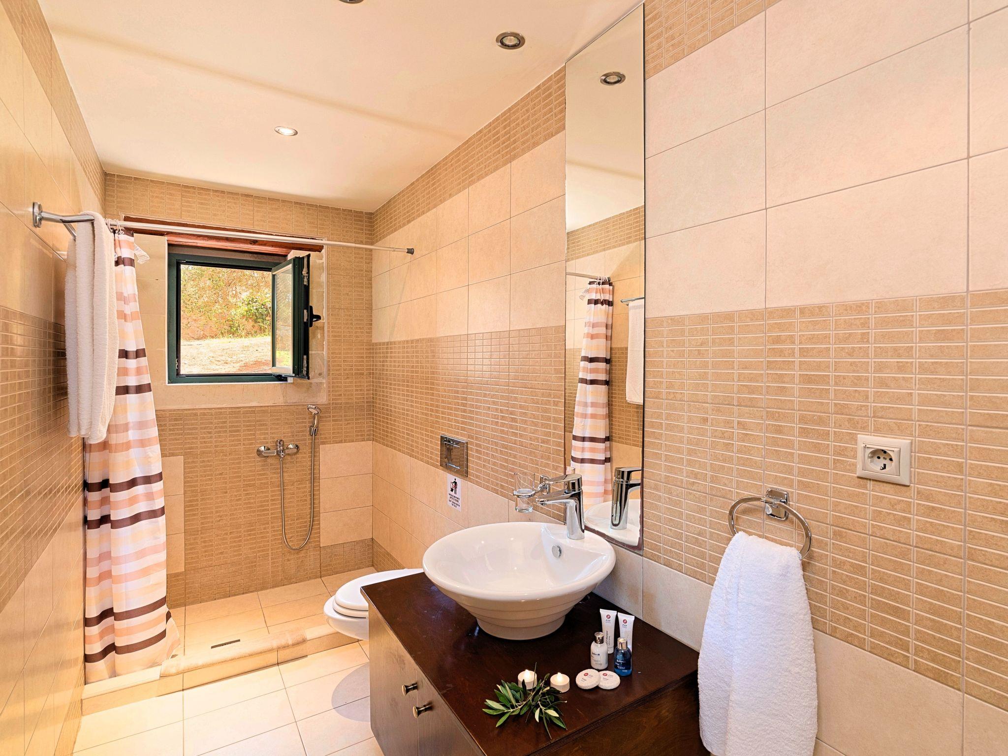 Facilities:Ground floor* A spacious living room with direct access to the terraces and the pool area.* Kitchen with an oven, a dishwasher, a fridge, a coffee maker, tea facilities, a juicer, a toaster, a dish set and a deep freezer* Dining area for 8-10 persons* A bedroom with two single beds ( can easily be pushed together) and air-condition.* Bathroom with shower* Terrace with outdoor seating / dining area and unlimited views* TV at the Living Room* Spacious Garden with outdoor furnitures and sunbeds* Large swimming poolA staircase leads to theUpper floor* A Large bedroom with a Queen size double bed, air-condition.* A Large bedroom with two single beds (pushed together), air-condition.* A large bathroom with bathtub and washing machine.* A Large terrace with sitting areaLower floor* A kitchenette area with TV set* A bedroom with two large single beds, air-condition * A second bedroom with a Queen size double bed, air-condition.* A bathroom with shower and a hairdryer.* Free Wi-Fi internet access* Outdoor Dinning Set (table with chairs)* Washing machine* An iron and an ironing board* Safe deposit box* Hair dryers* Fine linens and towels* Toiletries* Pool towels* Baby cot (two)* High chair (two)* Towels / bed linen, Cleaning- Every 3 or 4 days* Solar system for hot water* Fire extinguisher* First Aid Box* Parking area * BBQ with dining area
