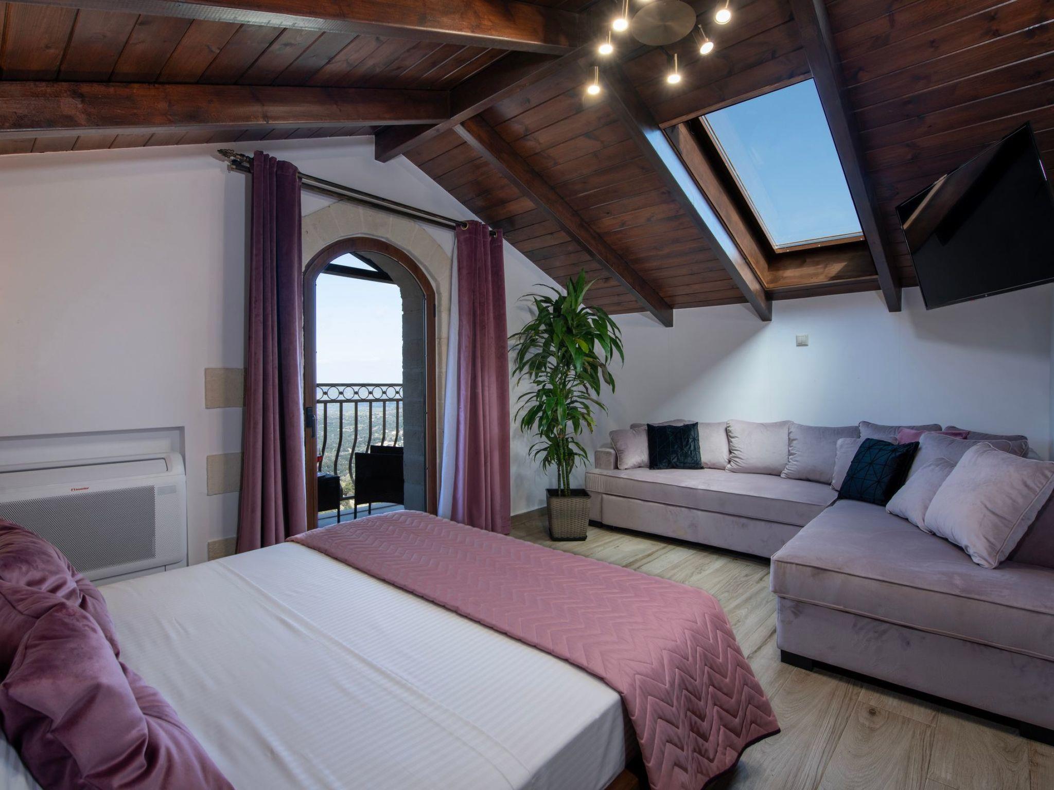 Geroulios Kastro Villas is a complex of a group of two villas, one next to the other, owned and managed by the same host. The villas are connected by an outdoor bridge. Feel free to choose any villa based on the size and needs of your group to ensure a perfect and comfortable stay. Geroulios Kastro Villa I can comfortably accommodate up to 12 guests in the existing beds and 5 more in sofa beds. Geroulios Kastro Villa II can comfortably accommodate up to 10 guests.