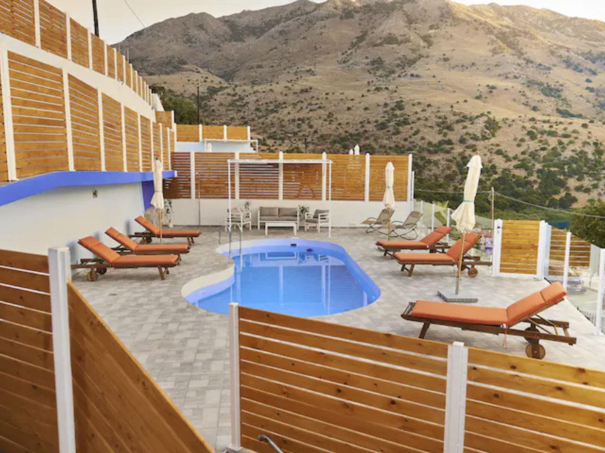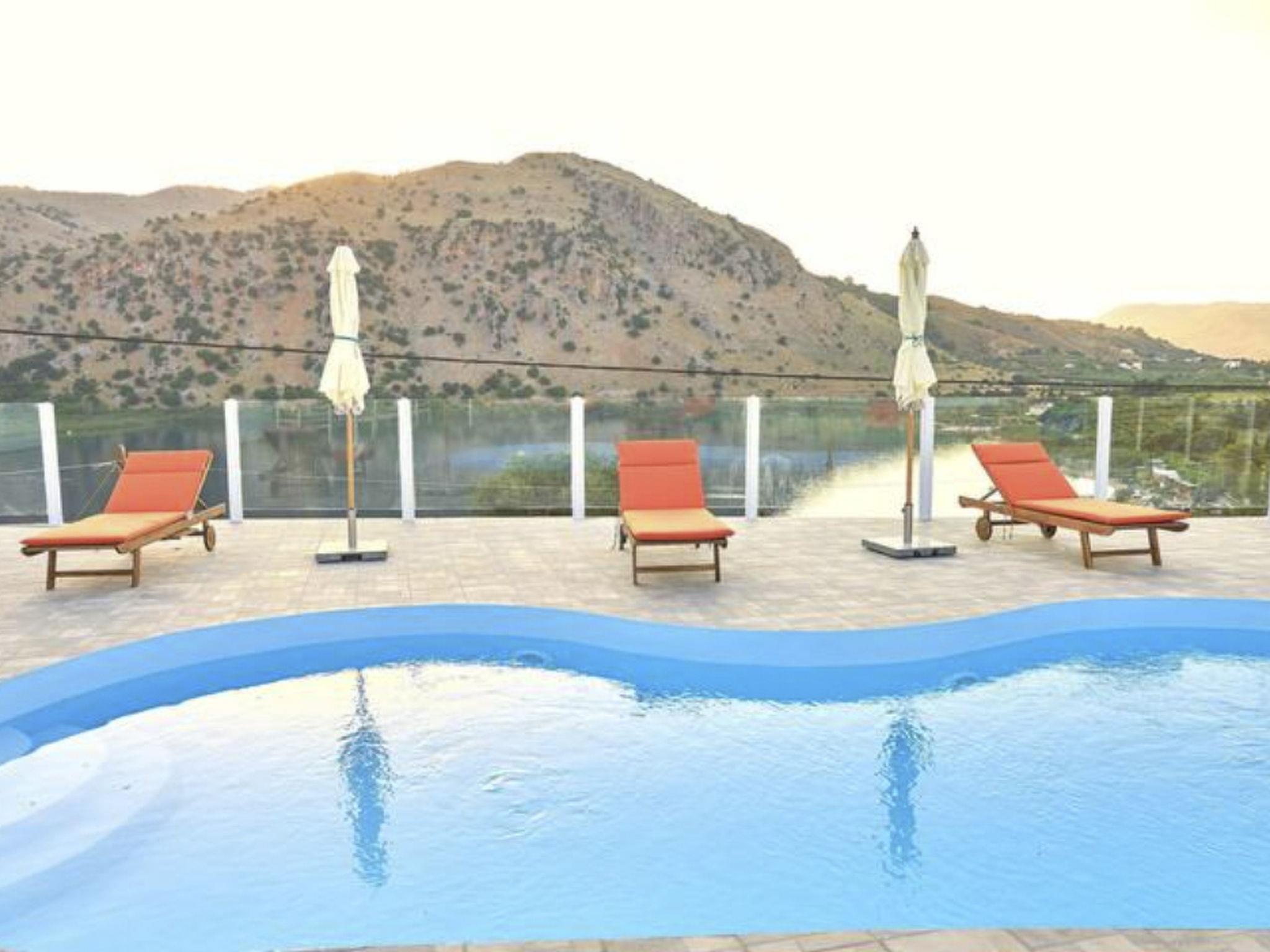 Just 5 minutes walk from the lake. This exquisite villa offers guests a unique holiday with breathtaking unobstructed views of the pristine Lake Kournas. After spending the day sunning on the beach, pedaling across the lake, and exploring the nearby village of Kournas. Guests are invited to relax on the private pool with a glass of wine as they watch the sunset over the lake.