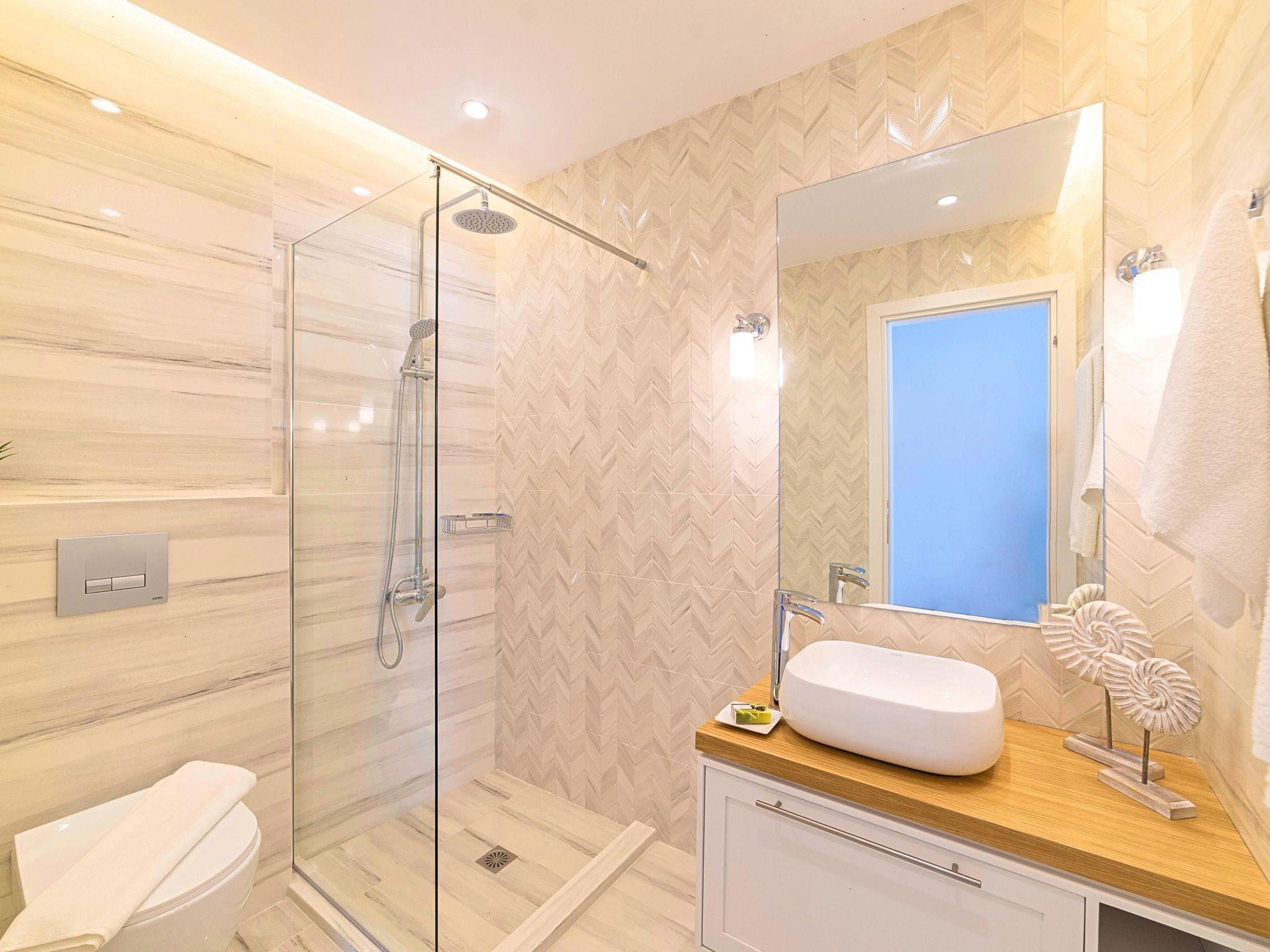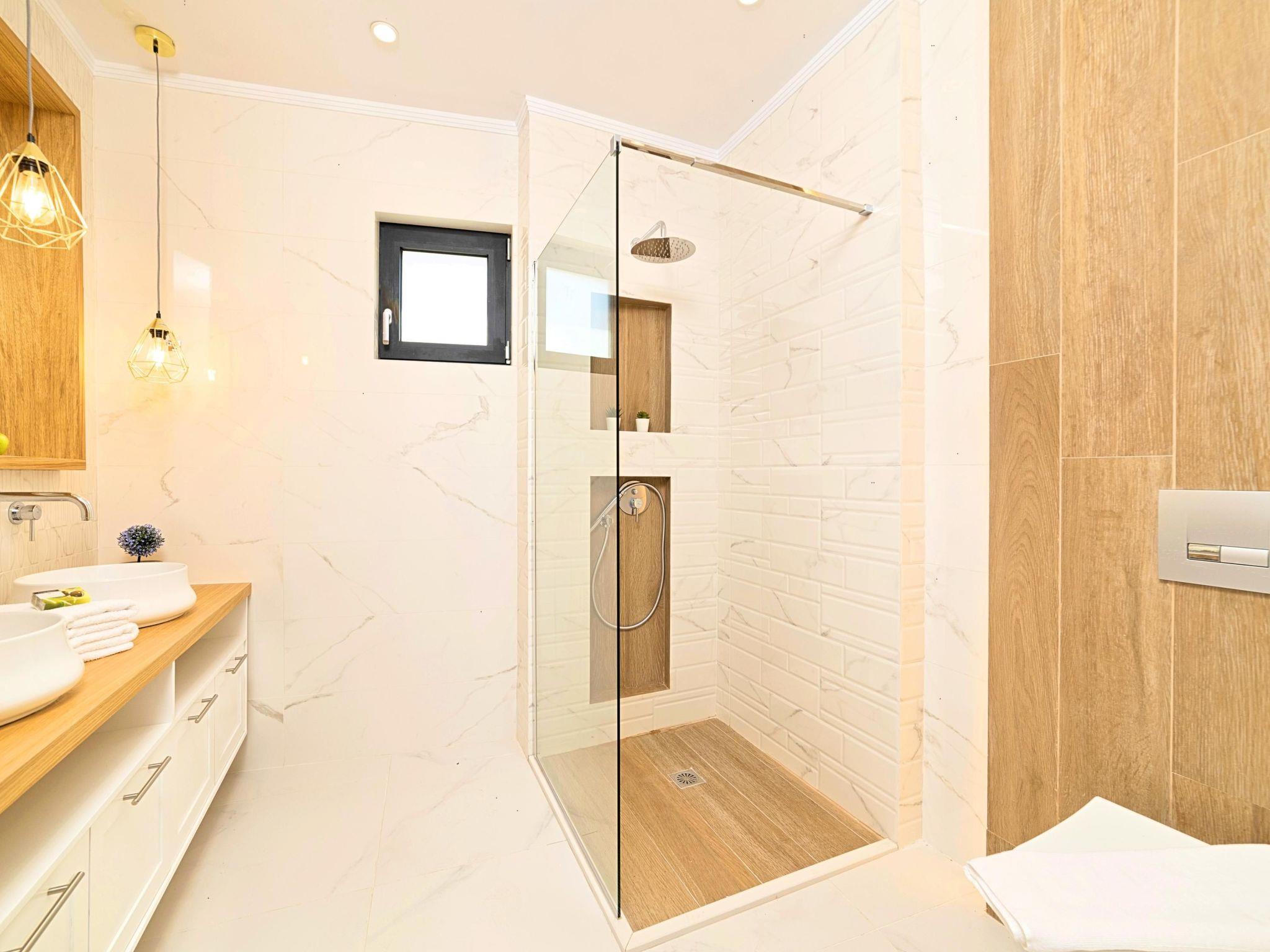 Facilities * A living room with a large Corner Sofa (can accommodate up to two quests) with direct access to the terrace and the pool area * A fully equipped Kitchen with an oven, microwave dishwasher, a fridge, a coffee maker, tea facilities, a toaster, a kettle and dining facilities. * A large bathroom with walking separate shower area. * A bedroom with two twin push together single beds offering amazing views to the white mountains. * A large bathroom with walking separate shower area. * A second bedroom with a queen-size double bed and direct access to the garden and the outdoor sitting area. * A third bedroom with a queen-size double bed and direct access to the garden and the outdoor sitting area. General Facilities * Smart TV at the living room. * Air-conditioning in all areas. * Washing machine / Dryer. * Iron and ironing board. * Safe deposit box. * Hair dryer in both bathrooms. * Linen and towels. * Toiletries. * Swimming pool towels. * Baby cot. * High chair for children. * Towels and bed linen changed and cleaned every 3 or 4 days.