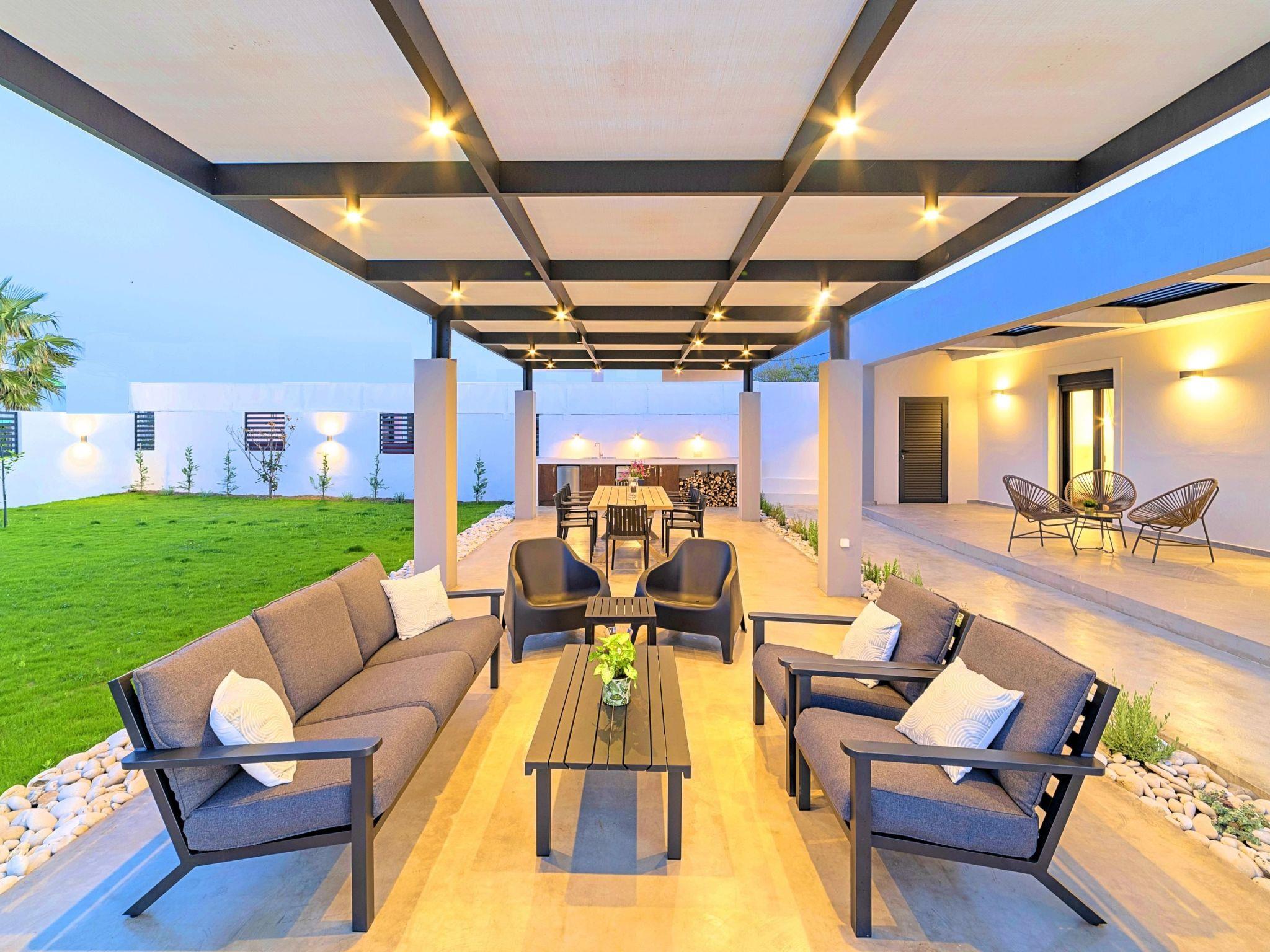 * Free Wi-Fi internet access. * Outdoor dining set (table with chairs). * Outdoor sitting area sofa and armchairs. * BBQ area with outdoor kitchen facilities (fridge-dishwasher) * Private Swimming waterfall large pool with whirlpool and children section. * Sun lounge area