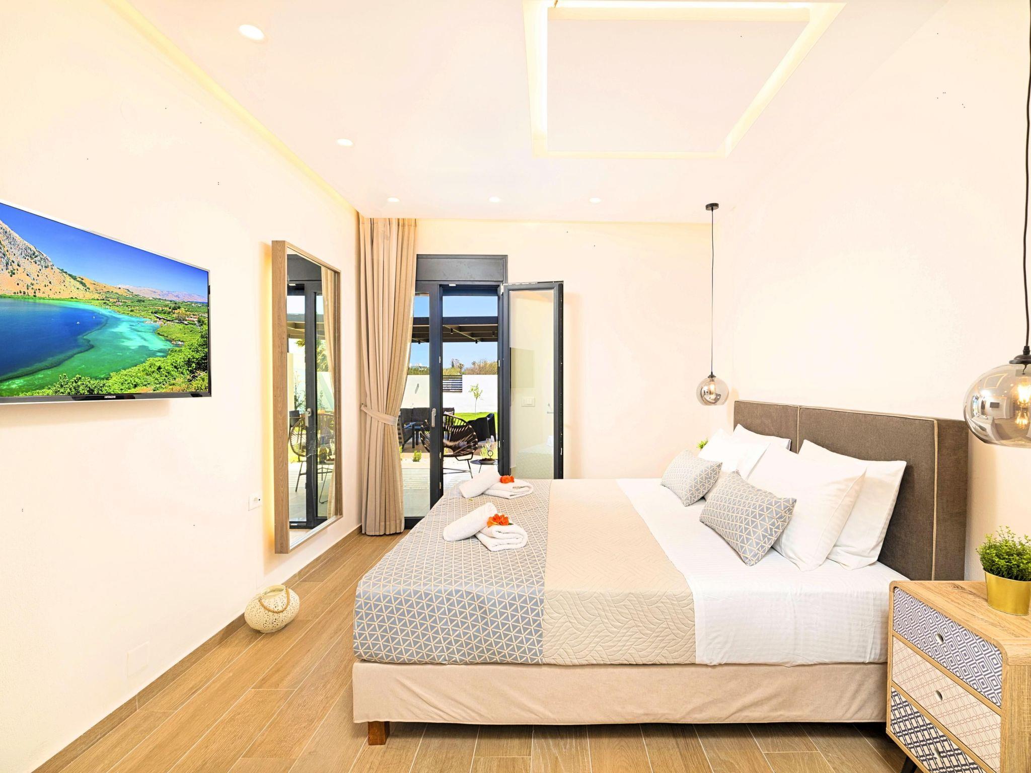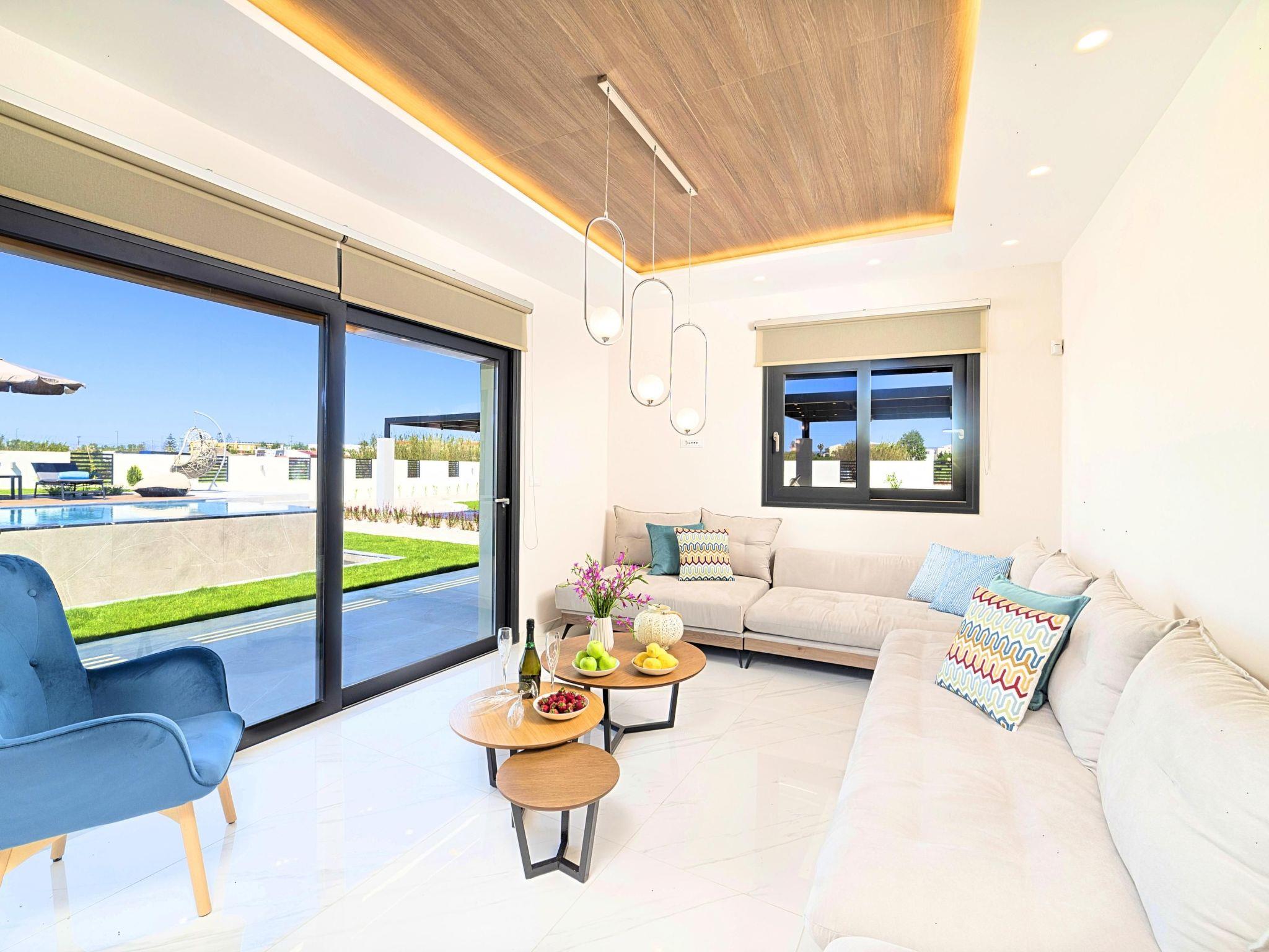 Located in Kavros village at the beautiful area of Apokoronas amongst a sandy beach, an oasis of Olive Groves, vineyards, is an extraordinary Boutique three-bedroom Villa offering a unique luxury holiday experience for visitors. Inspired by the postcard-Sunny pretty Cretan villages. Villa Solaris transports guests on a journey during their stay, providing an experience that fuses Cretan island charm with all the comforts of a luxury boutique villa. Blending seamlessly with its luscious verdant surroundings, Vila Solaris has been designed and built as an environmentally friendly home. Spanning an area of 2000 square meters, the villa offers a totally authentic experience of Crete, all in a single gorgeous location a few hundred meters from the largest sandy beach. Relax and unwind in the open air waterfall pool surrounded by the large sunbath area, or take a dip in the Villa’s pool. Enjoy a drink at the outdoors villa’s BBQ area. Slipping into your room will be like stepping into a stylish hotel room, with all the necessary amenities, combining with modern luxury, all complemented by refined style furniture. An oasis of glorious island serenity awaits you at Villa Solaris, so start planning your escape today. Perfect for families or group of friends. Villa Solaris based in Kavros Village, just few meters from the largest sandy beach of Crete, 1.5 of Kournas lake and surrounded by graphical villages.