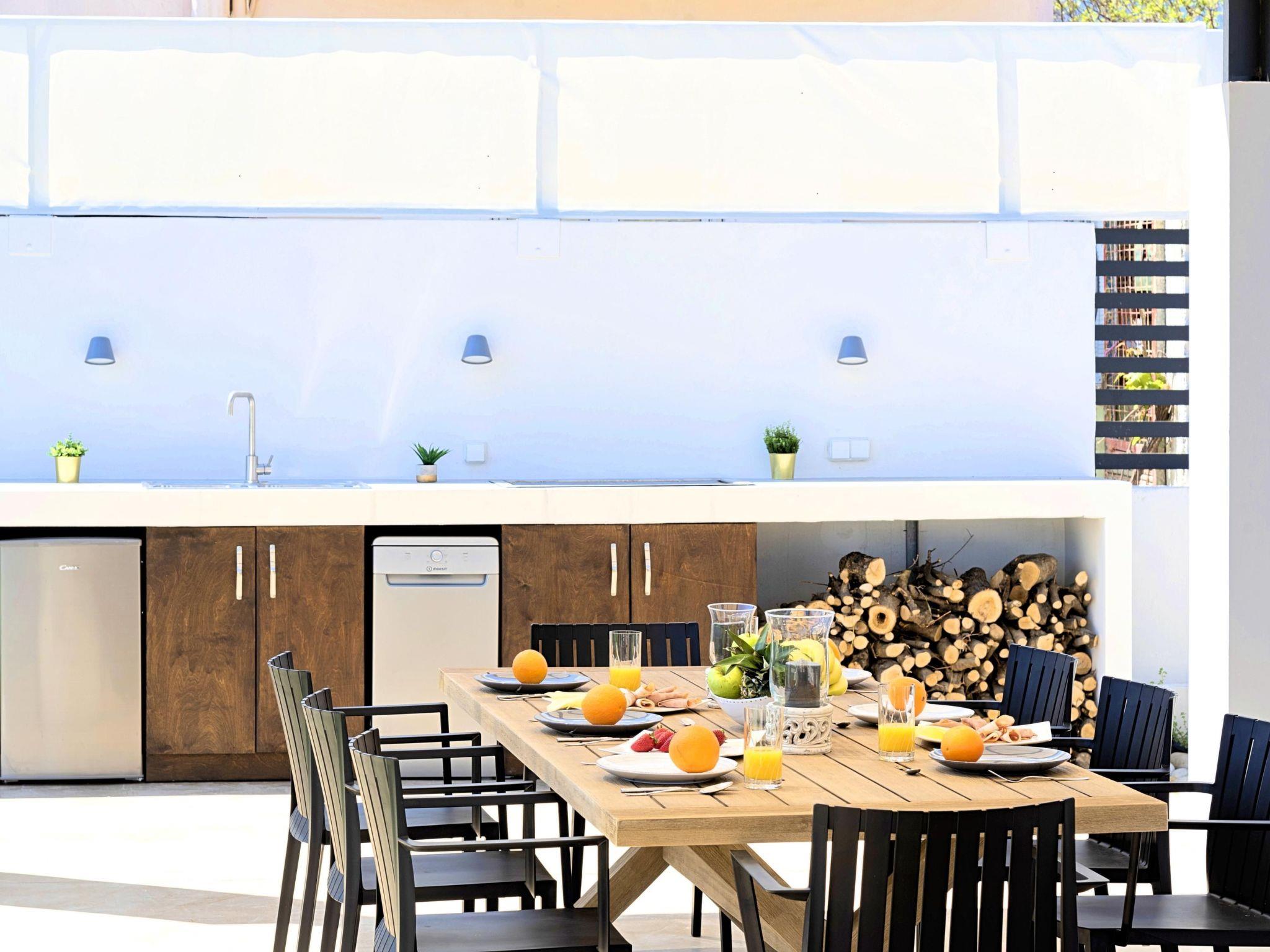 * Private parking area. * Direct access to the swimming pool area. The outdoor pool is heated and can reach 6 to 8 degrees more that the 24 h average air temperature with maximum value of 29°C * Gardens. * Seating Area * Dining Table * BBQ Place